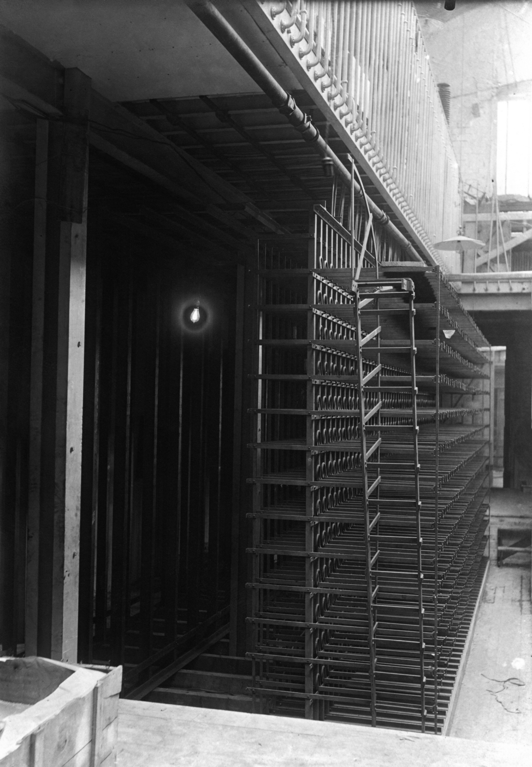 - Sur cliché 6, nous voyons le côté Réglettes Horizontales du Répartiteur d’Abonnés (qui sont reliées au Commutateur Téléphonique).