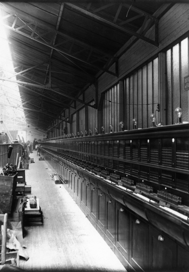Ci-dessus : visite du Centre Téléphonique Tuilerie une fois sa construction terminée et en phase finale d’installation du premier Commutateur Téléphonique l’en équipant.