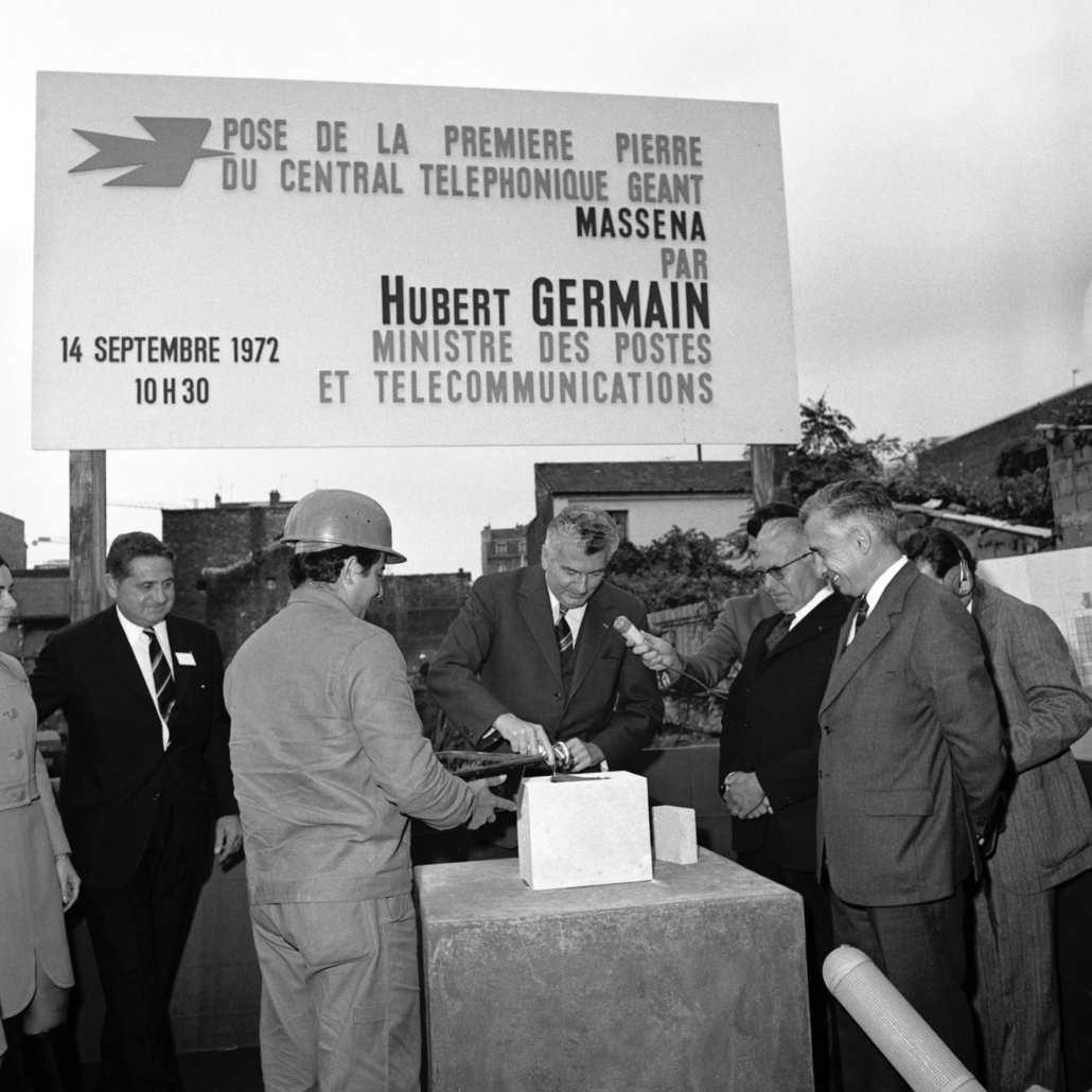 Ci-dessus : inauguration du Centre de Transit Téléphonique Interurbain de Paris Saint-Lambert par M. le Ministre des P et T – Hubert Germain.