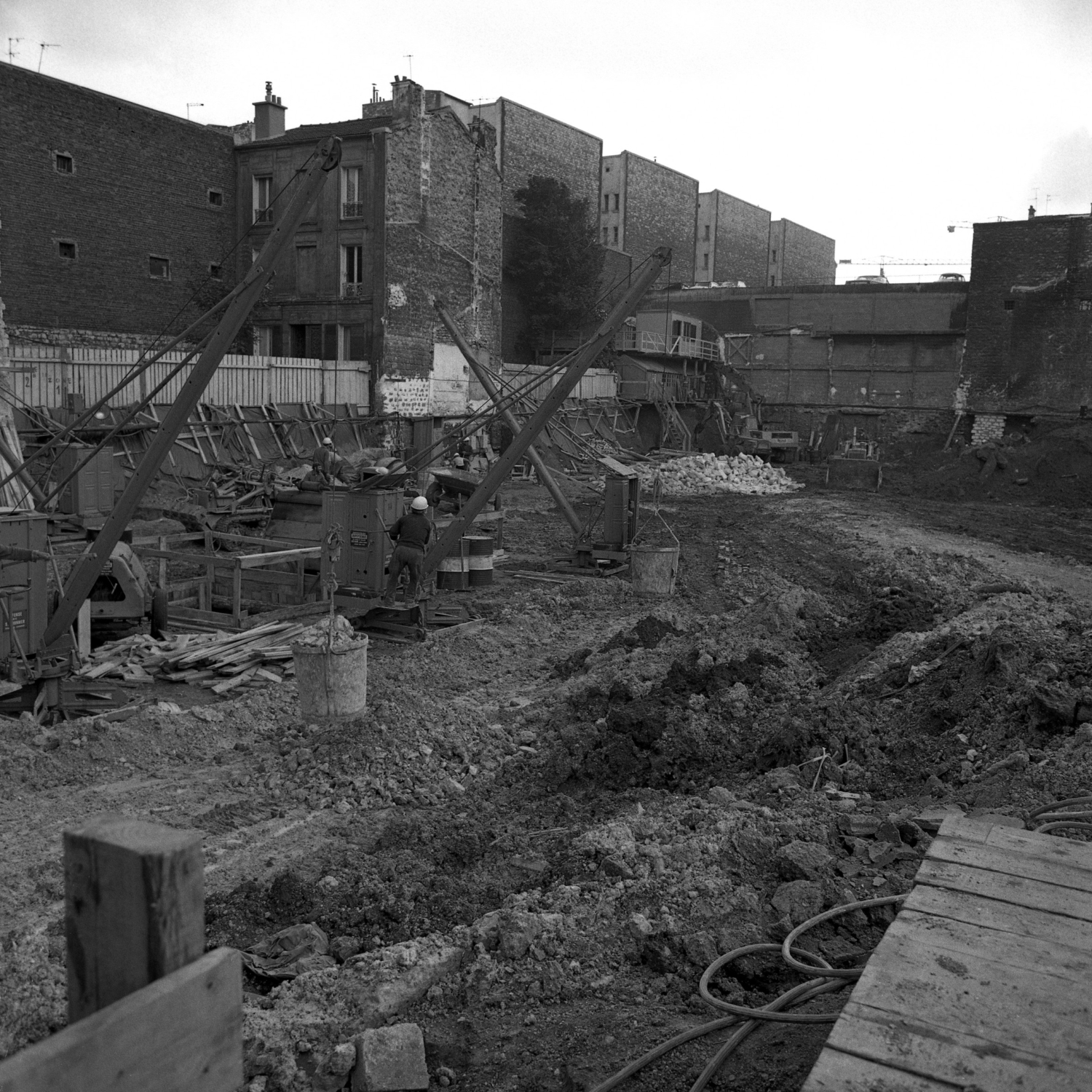 Ci-dessus : la Direction Générale de France-Télécom en construction, étape gros œuvre, en béton banché.
