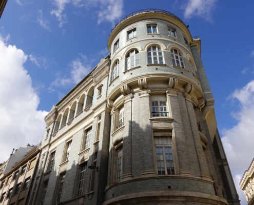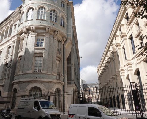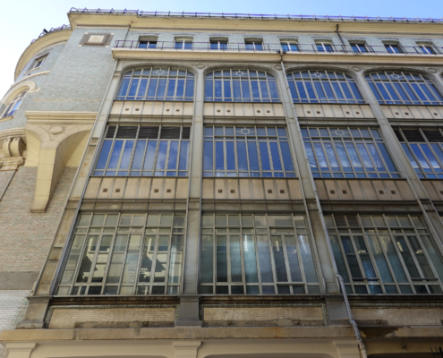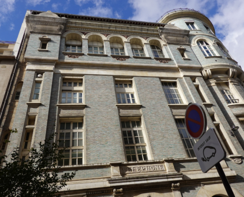 Ci-dessus : Centre Téléphonique de Paris-Bassano, dont la façade a été restructurée vers 2010.