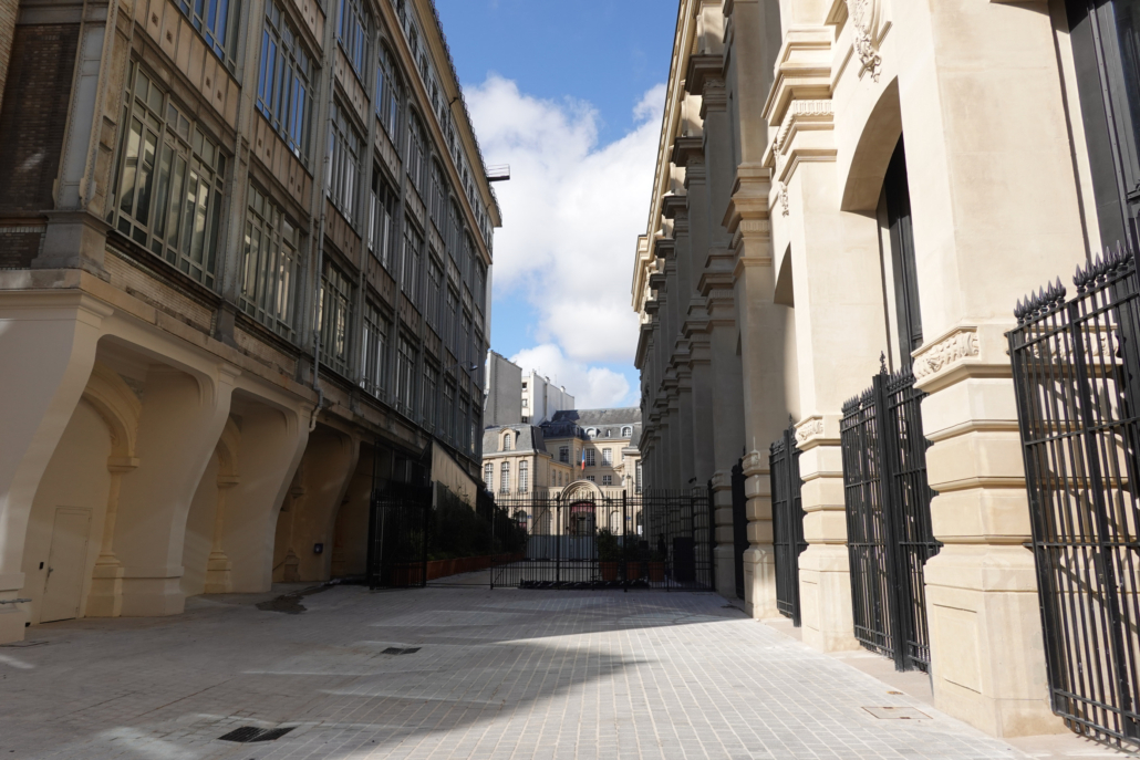 Ci-dessus : vue de la cour intérieure de la Direction Générale. La cour est en cours de pavage.