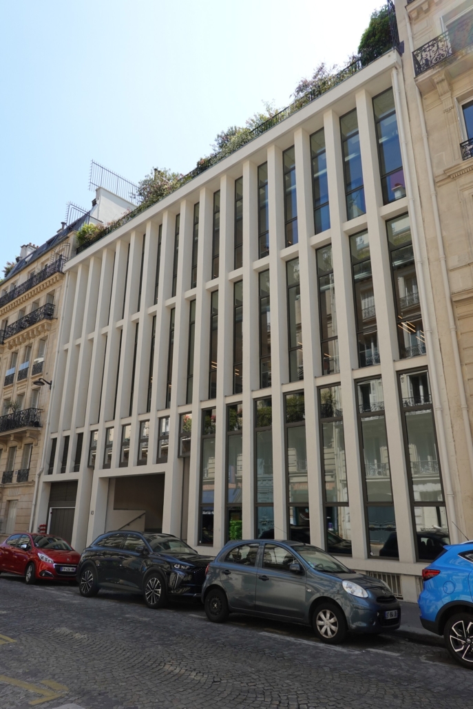 - Structure en béton banché, coulé sur place. Construction de 5 étages en surface + 2 sous-sols.