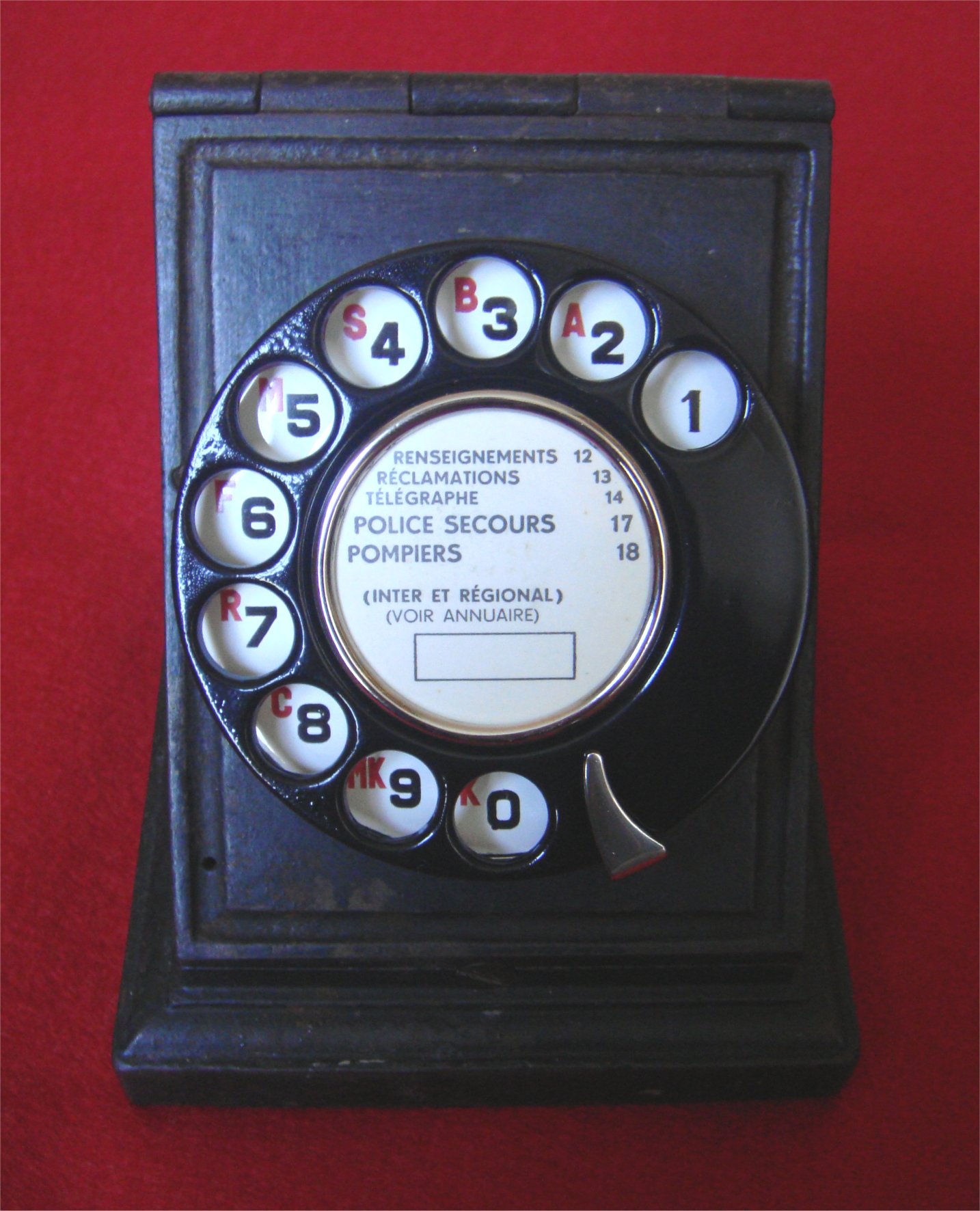 - – En revanche, nous remarquons qu’il comporte des lettres en émail rouge associées aux chiffres 2 à 0, mais de nature totalement différentes de celles utilisées habituellement sur les cadrans téléphoniques d’abonnés ordinaires.