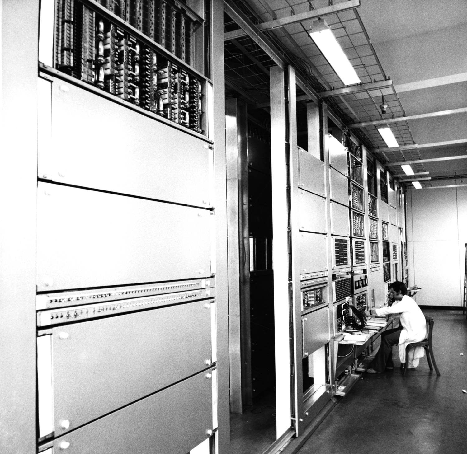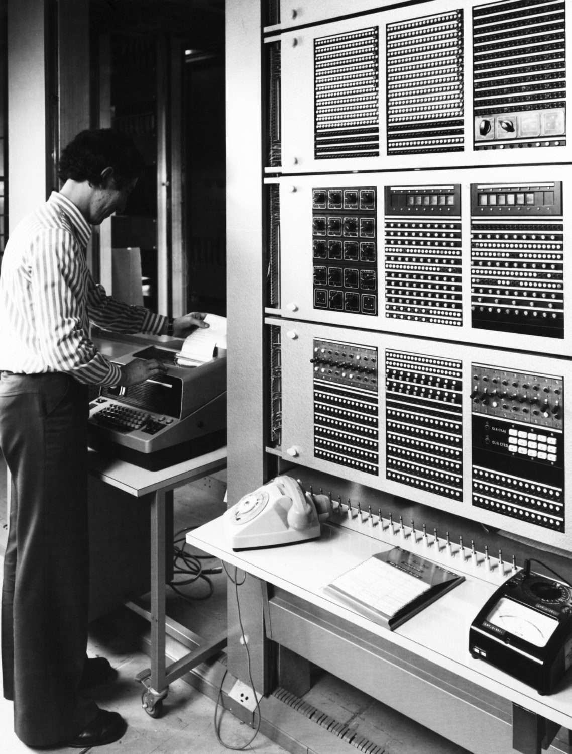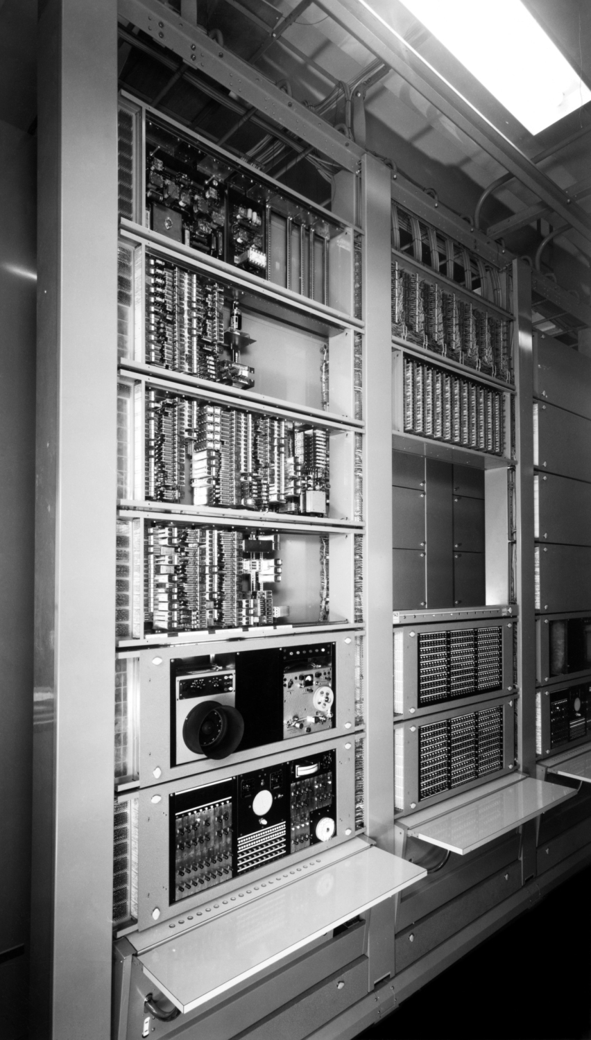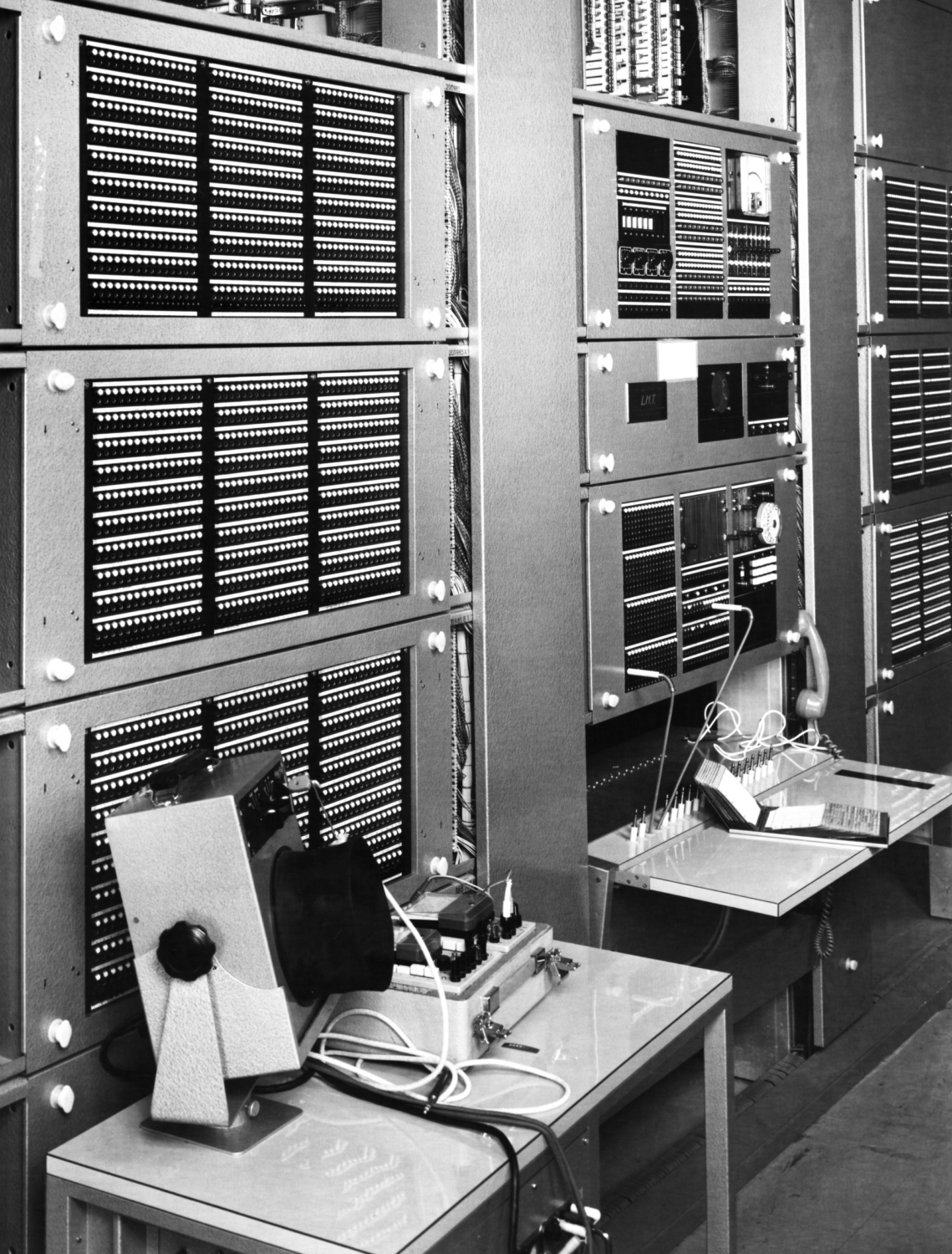 - Visible à gauche, la perforatrice FACIT-4070 comme périphérique de sortie sur bande papier (à 8 canaux) des observations de trafic.