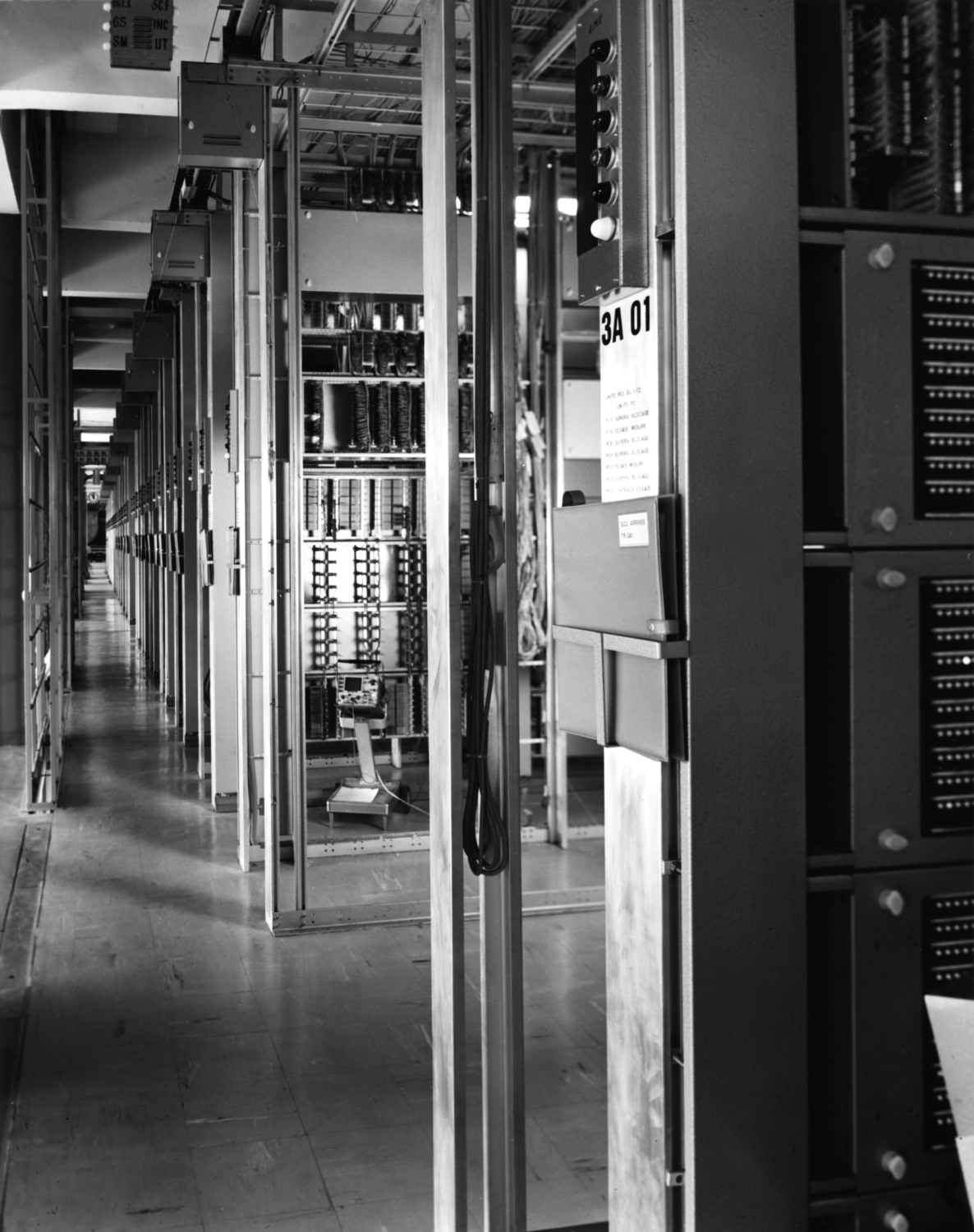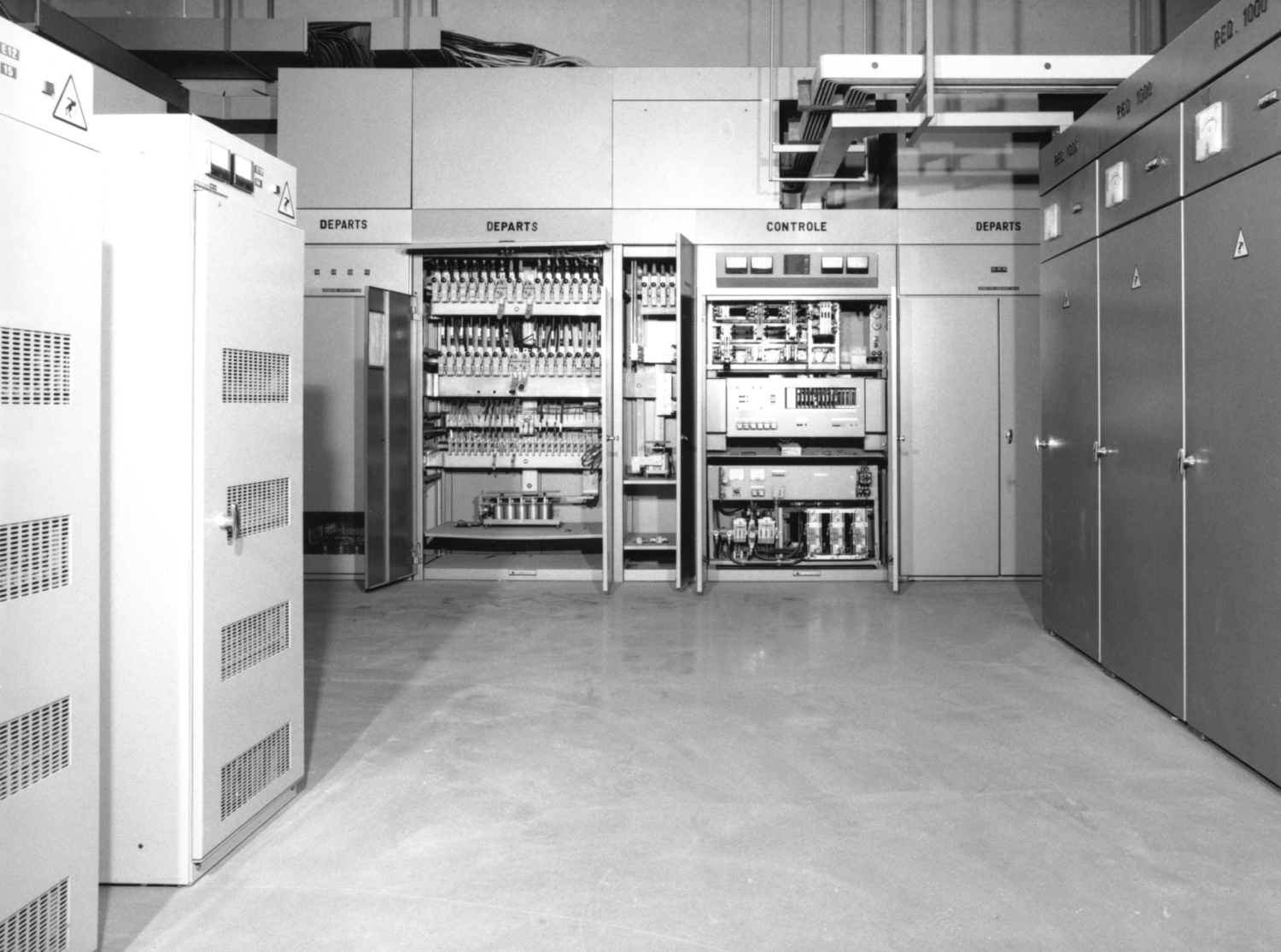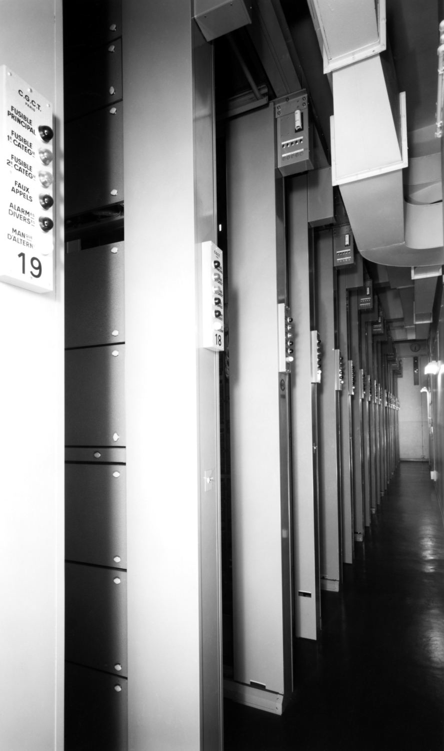 Ci-dessus : vue en enfilade du Commutateur PENTACONTA 2080 TIT Saint-Denis 1 PC1 (BC61).