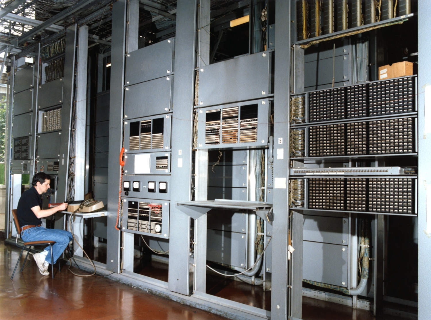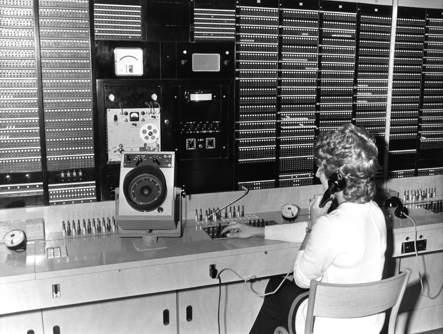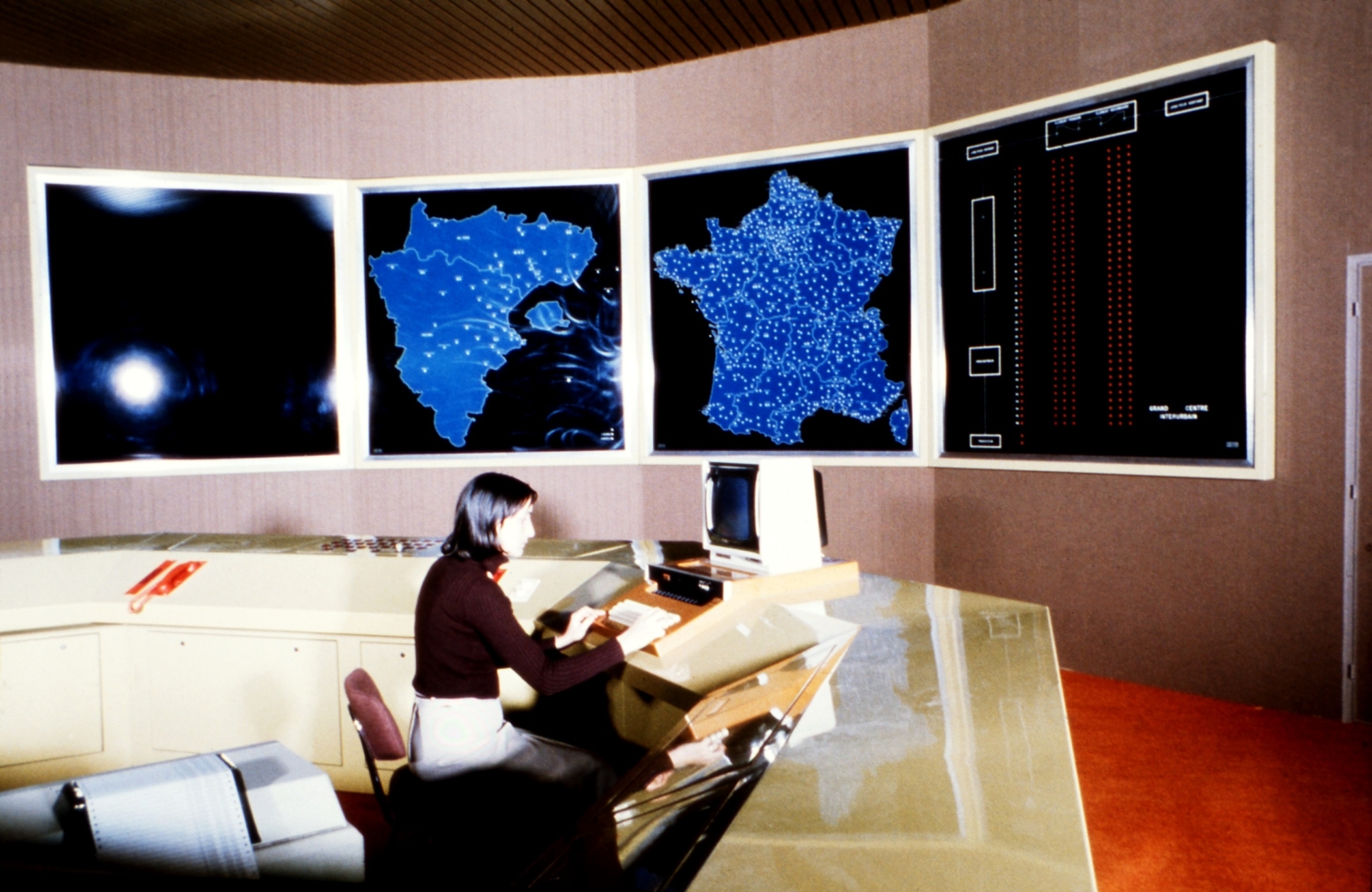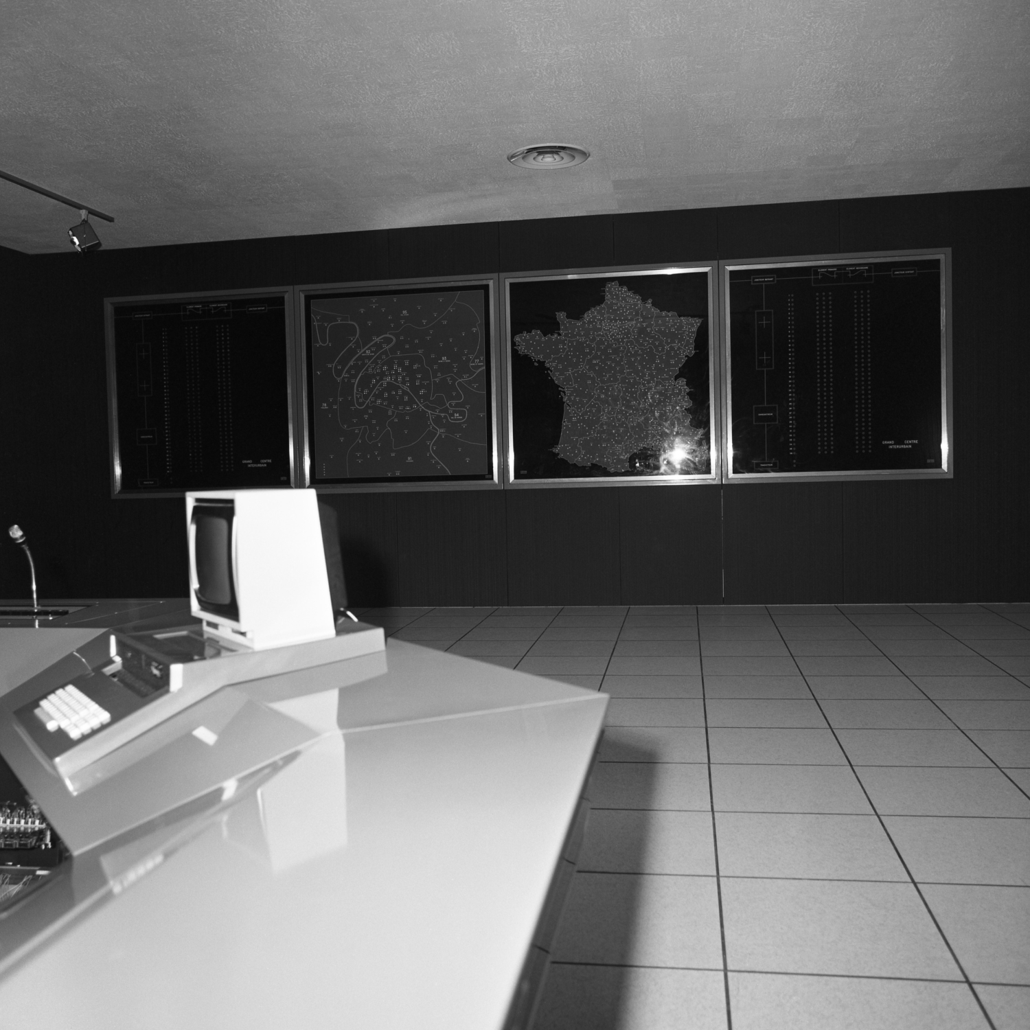 Ci-dessus : vue de la salle du Centre National Superviseur du Réseau Interurbain en 1975.