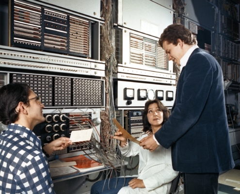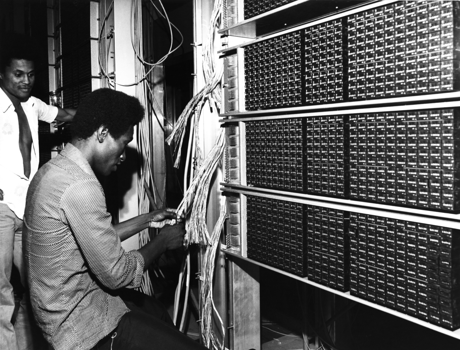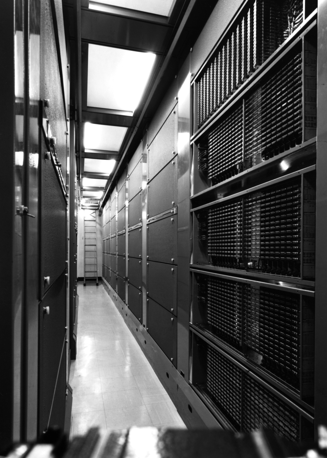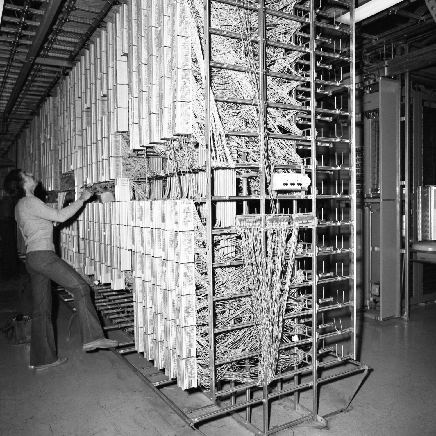 Ci-dessus : vue de la salle du Centre National Superviseur du Réseau Interurbain en 1975.