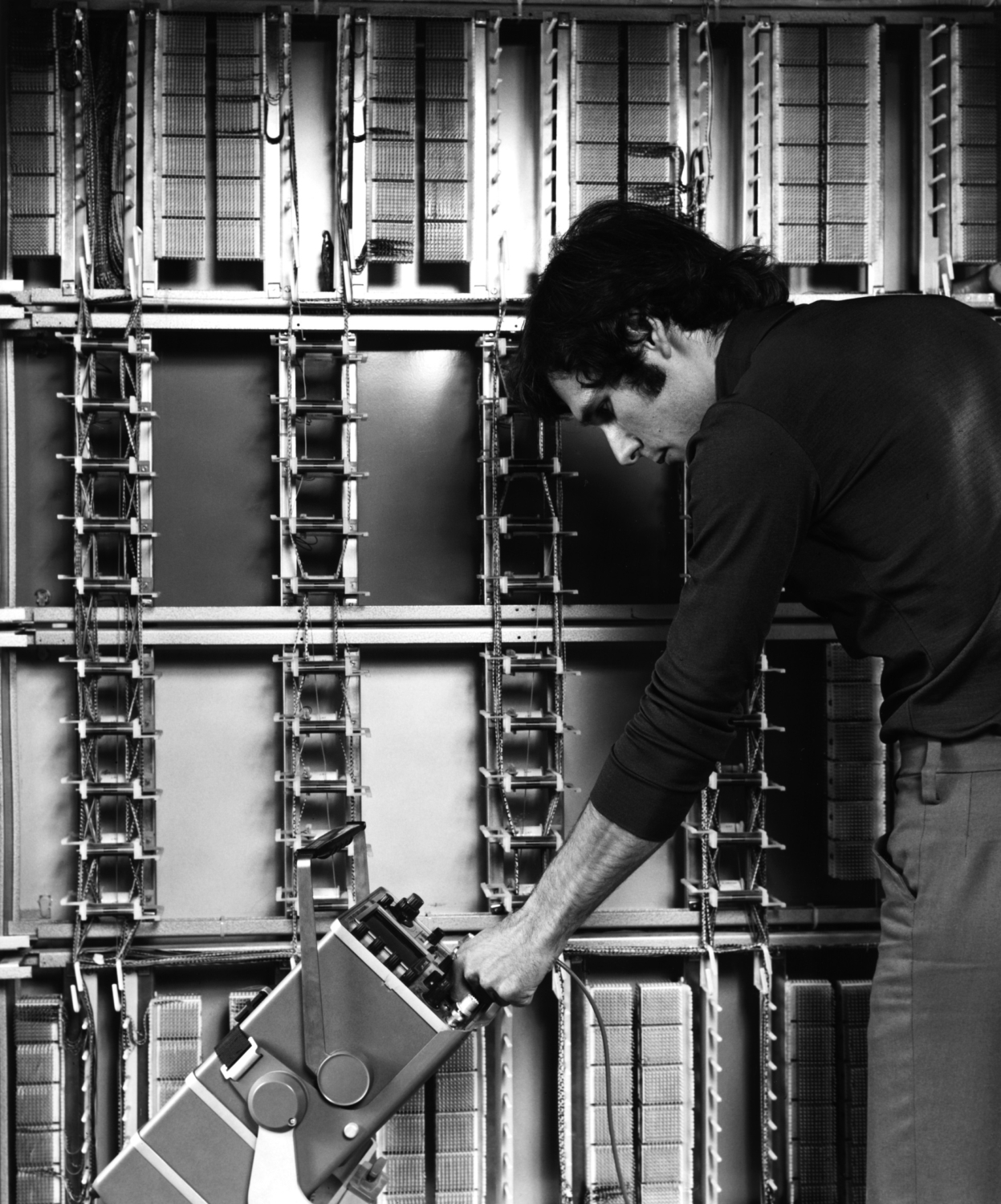 Ci-dessus : M. le Directeur de la Production – Yves Fargette, dans le Répartiteur téléphonique de Versailles, au moment de la mise en service du Commutateur PENTACONTA 2080 TIT Versailles A2 PC2 (WE02).