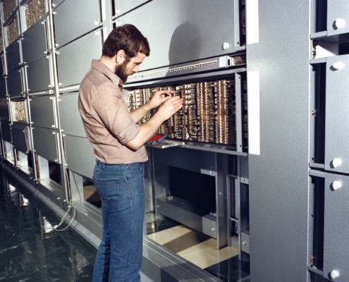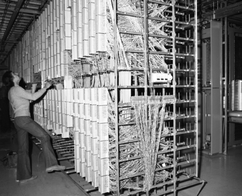 - Contrôleur des Installations Électro-Mécaniques en train de basculer les routes des Traducteurs Impulsionnels à Tores magnétiques (TIT) du Commutateur à 23H00, le soir du passage à la Nouvelle Numérotation à 8 chiffres, en coupant les « Y » des Traducteurs ; les nouveaux parcours ayant été pré-câblés à l’avance.