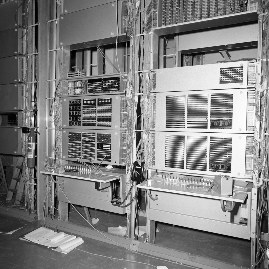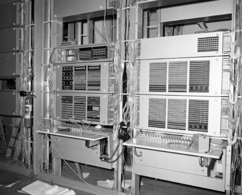 – À partir de ce moment-là, deux Commutateurs téléphoniques à barres croisées sont commandés en Avril 1954 par l’Administration pour expérimentation en grandeur nature.