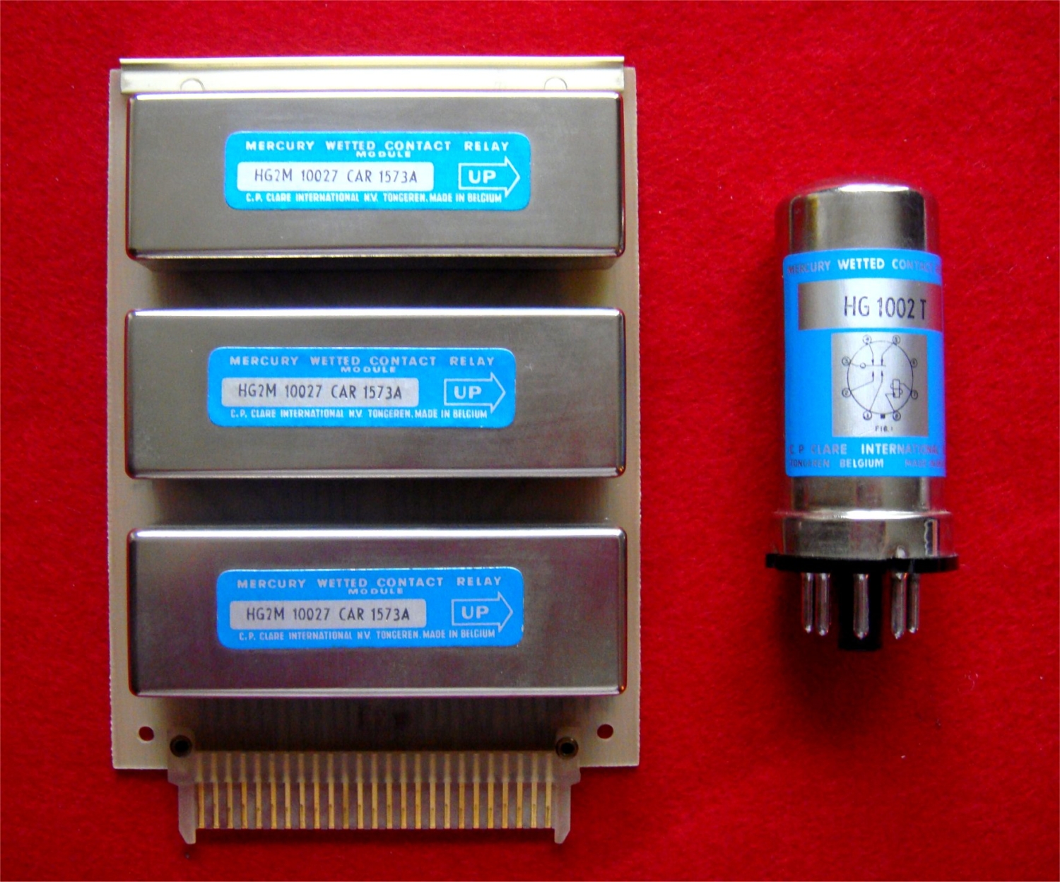 Ci-dessus : exemple de relais au mercure (de longue durée de vie) utilisés dans les Commutateurs PENTACONTA.