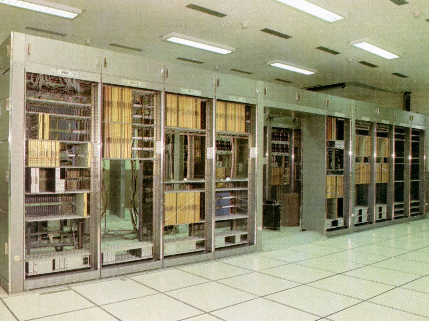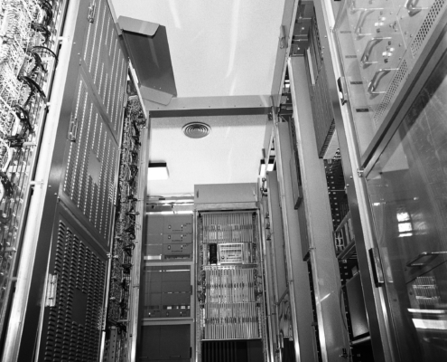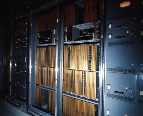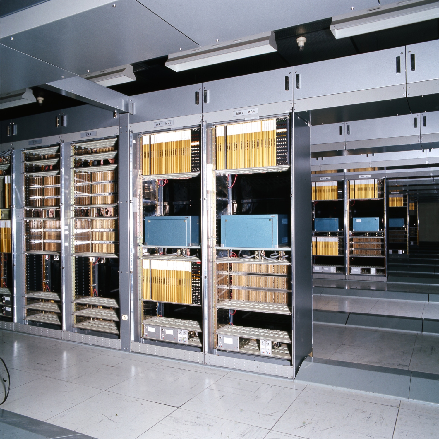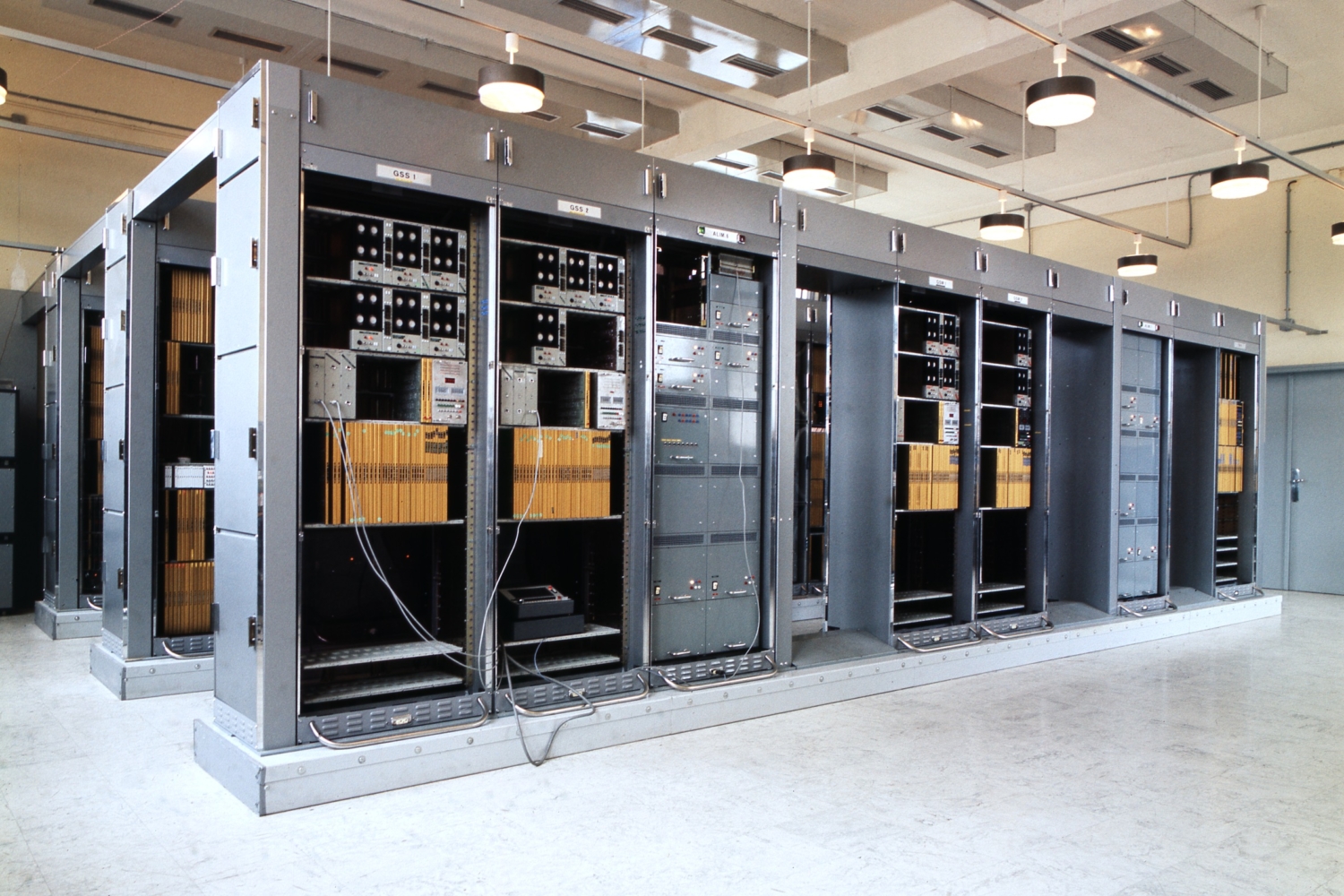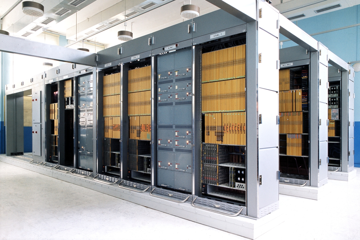 Ci-dessus : Vue d’ensemble du Commutateur de transit E12 Captif de Paris-Cévennes, avec ses multiples dérouleurs de bandes magnétiques.