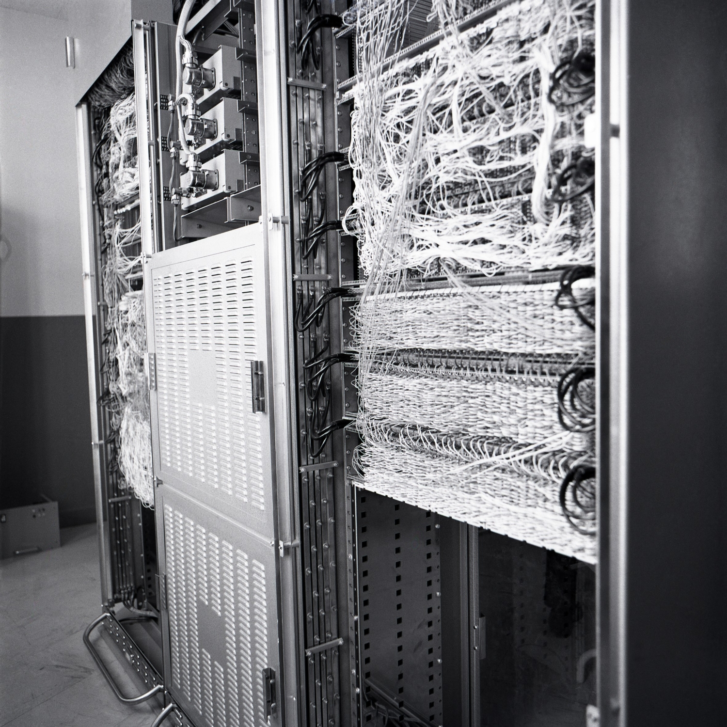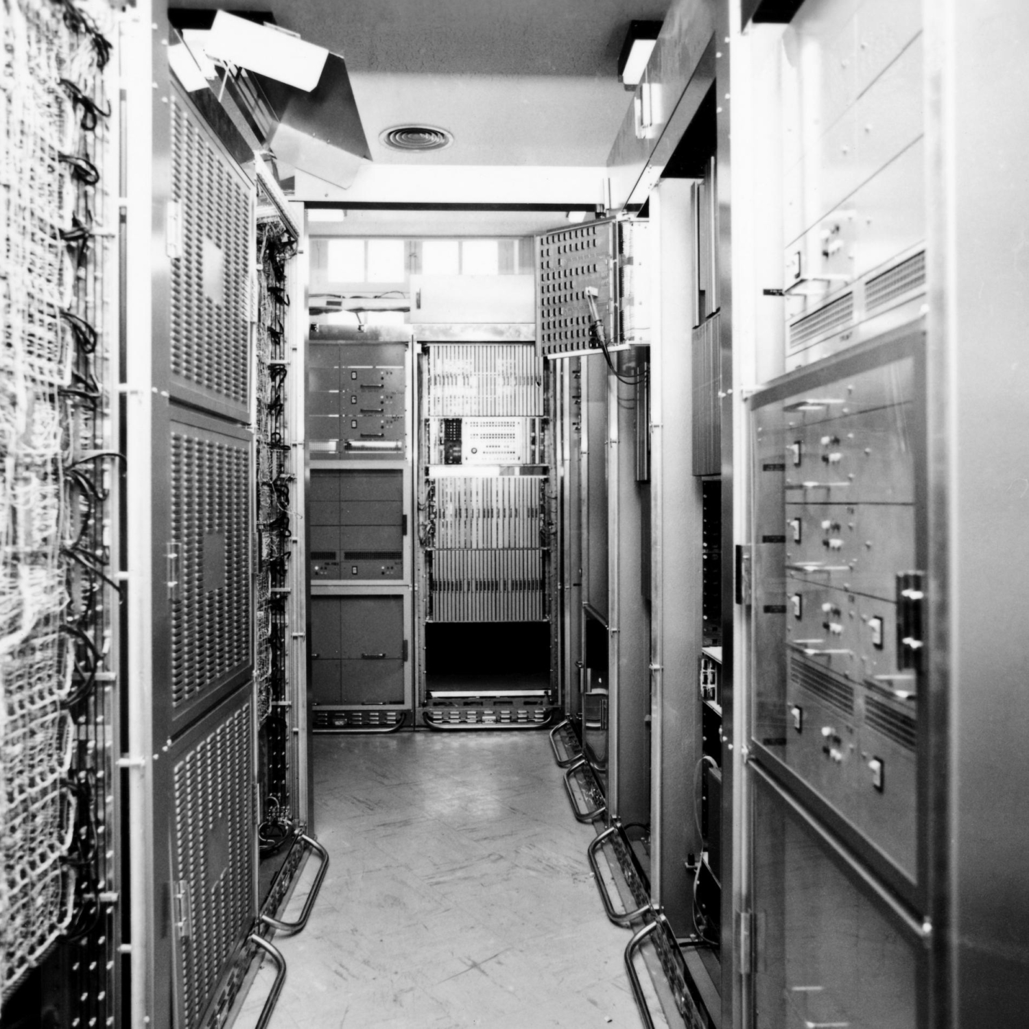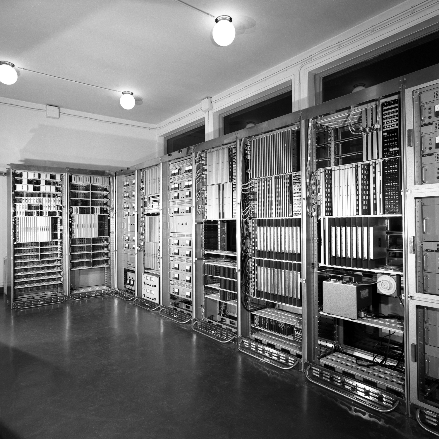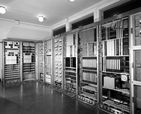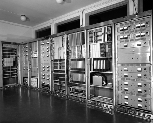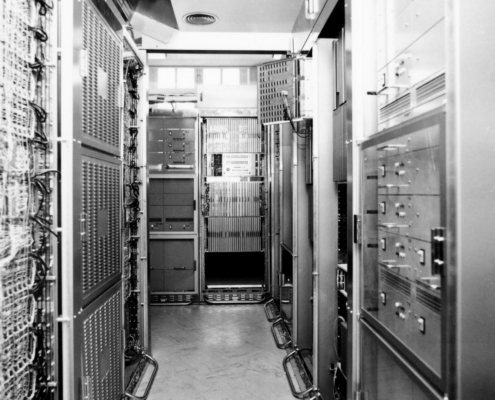 Ci-dessus : Vue d’ensemble du Commutateur de transit E12 Captif de Paris-Cévennes, avec ses multiples dérouleurs de bandes magnétiques.
