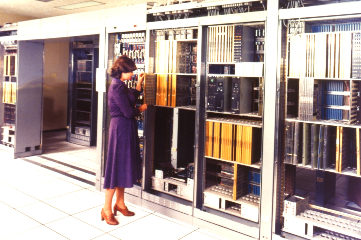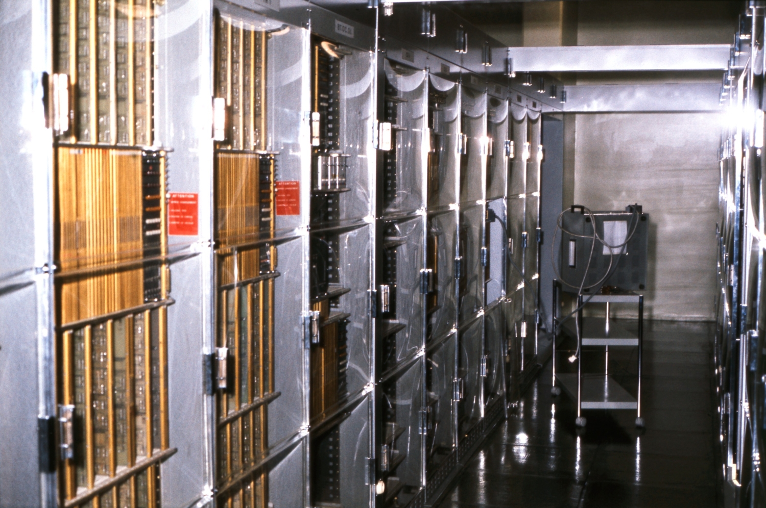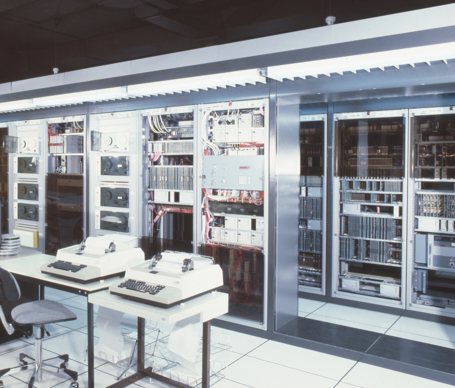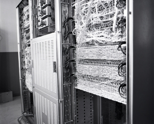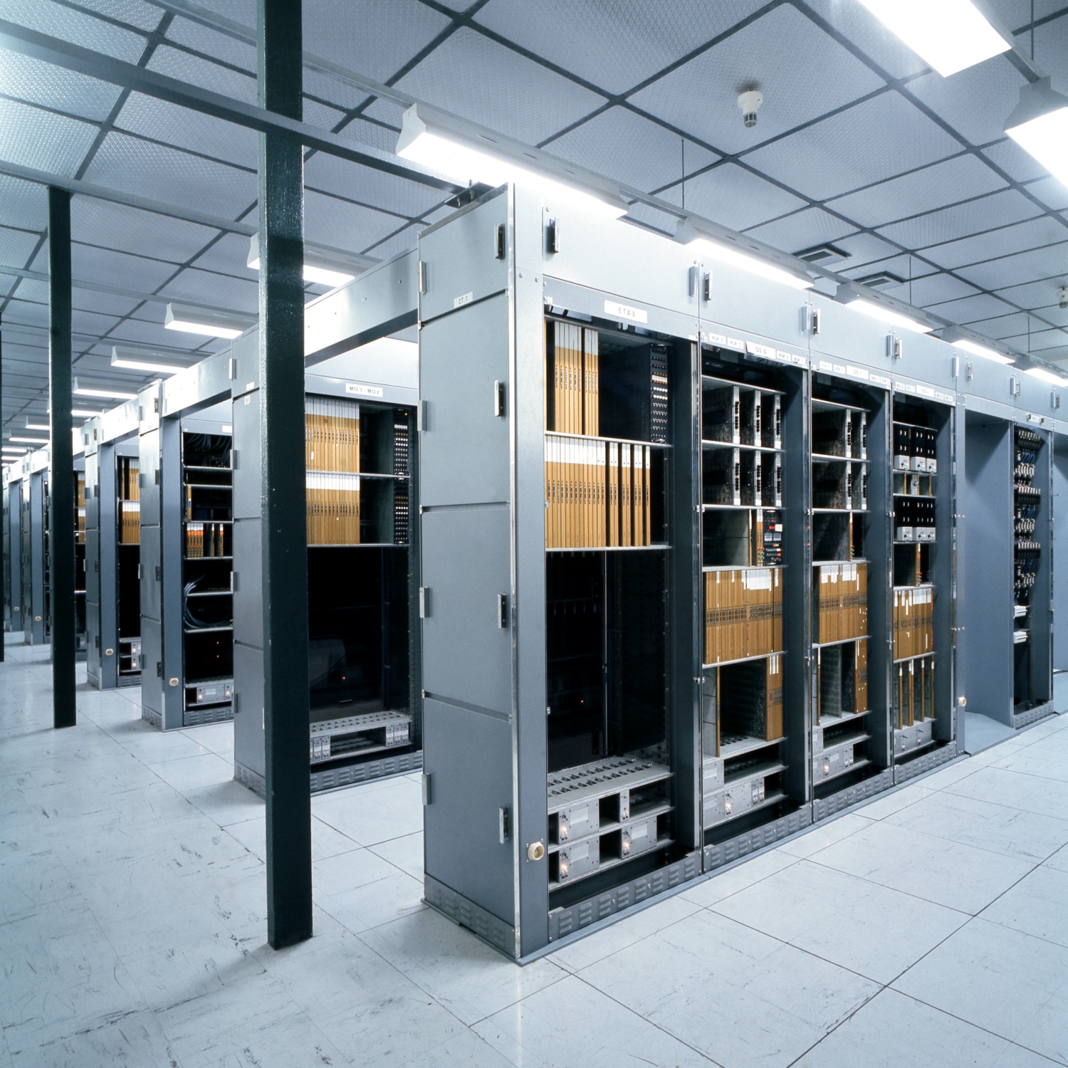 Ci-dessus : Vue d’ensemble du Commutateur de transit E12 Captif de Paris-Cévennes, avec ses multiples dérouleurs de bandes magnétiques.
