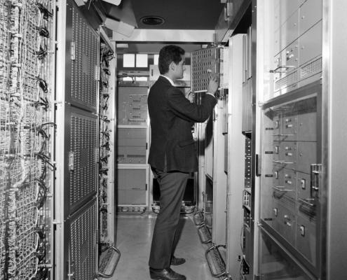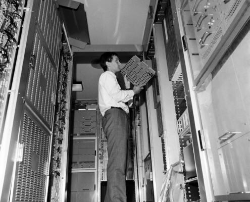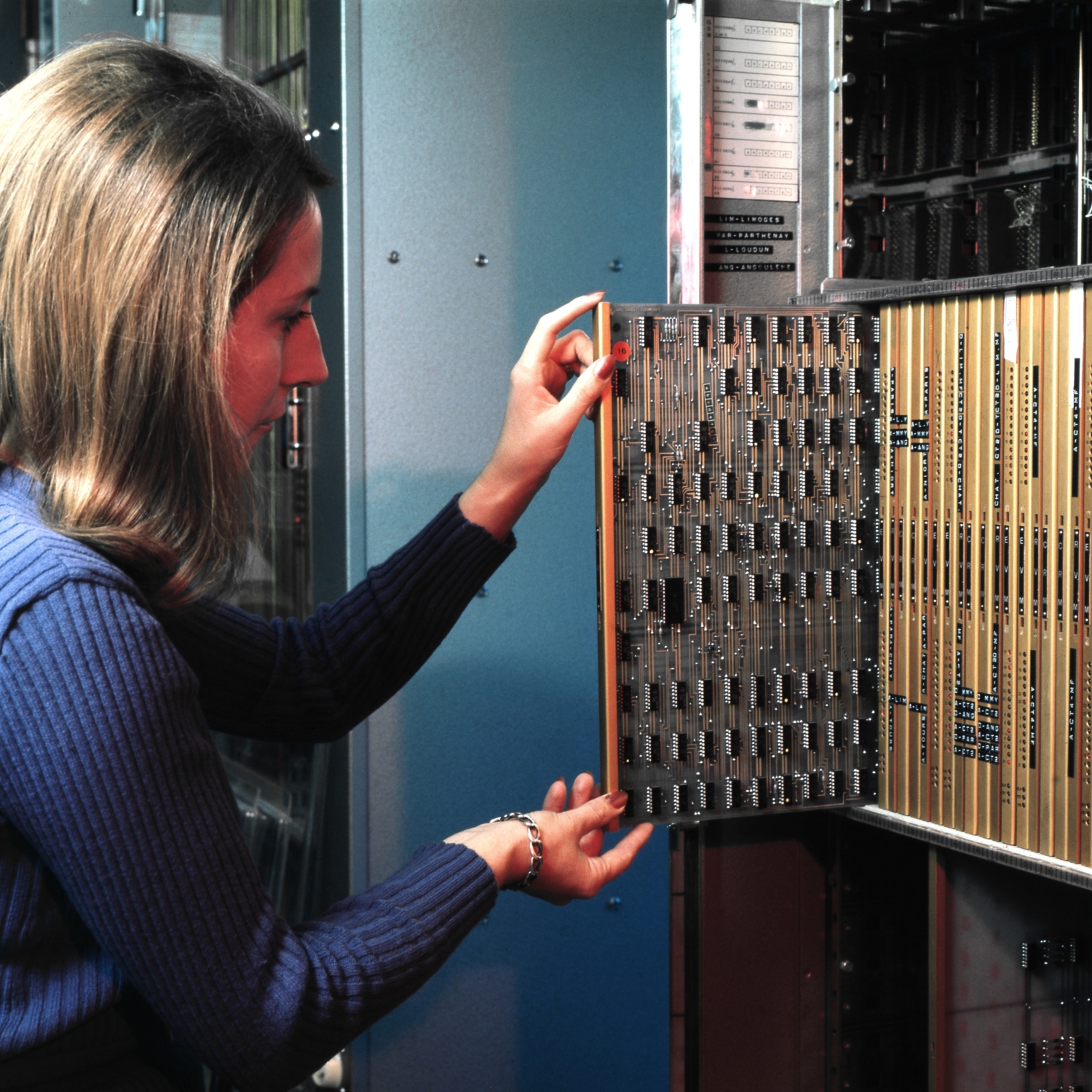 C’est d’ailleurs la diffusion à grande échelle de cette technologie à partir de la fin des années 1960, suite à l’évolution technologique et à la miniaturisation des composants électroniques, qui permet progressivement la numérisation et l’informatisation de tout notre monde.