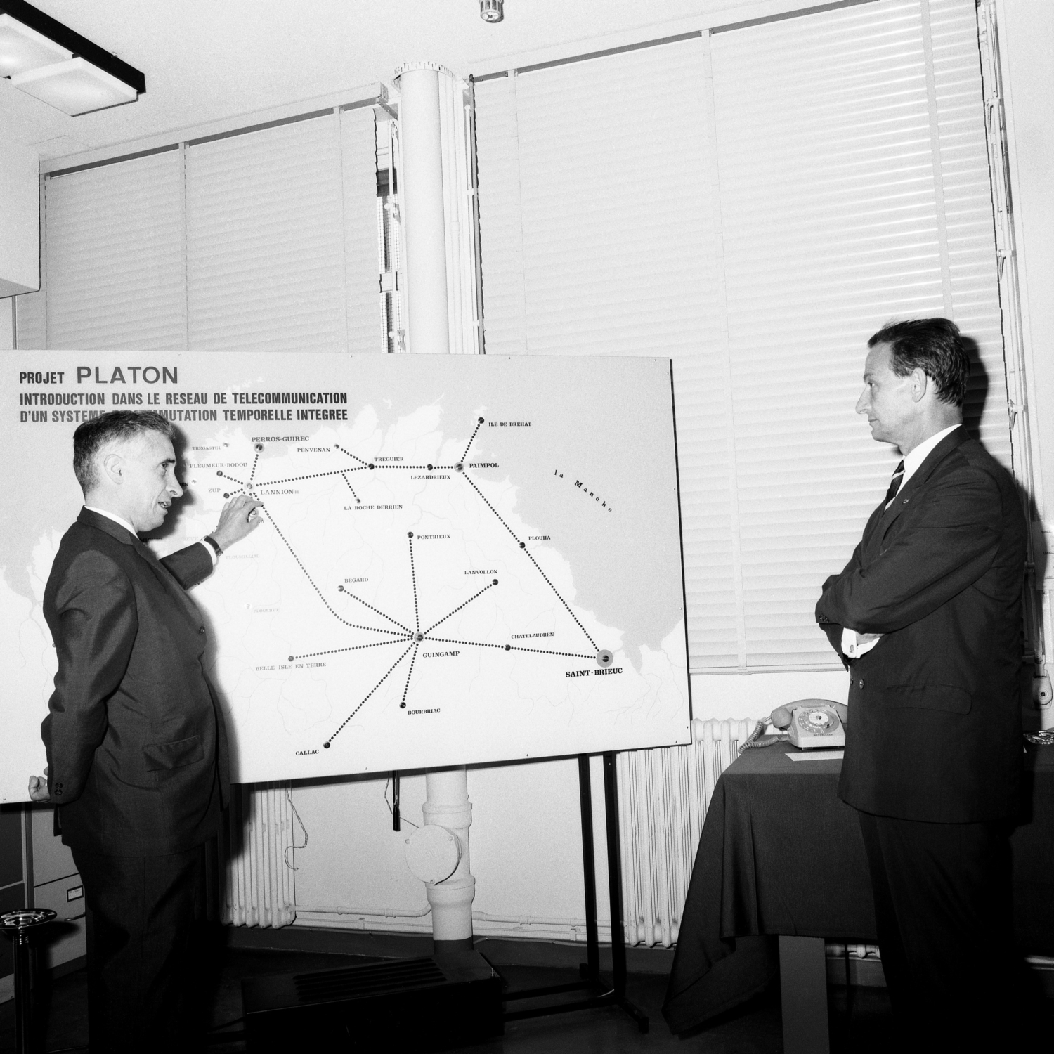 Les Commutateurs électroniques de type temporel de 1ère génération, mis en conception à partir de 1964 dans les laboratoires du CNET de Lannion qui est en activité depuis le 15 juin 1963, sont inaugurés pour la première fois en France (et dans le monde) le 6 janvier 1970 avec PLATON I implanté à Perros-Guirec.