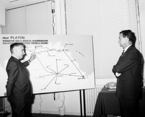 Le responsable des études menées sur la Commutation Électronique Temporelle PLATON est M. l’Ingénieur en Chef – André Pinet (1920 – 2017).
