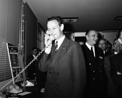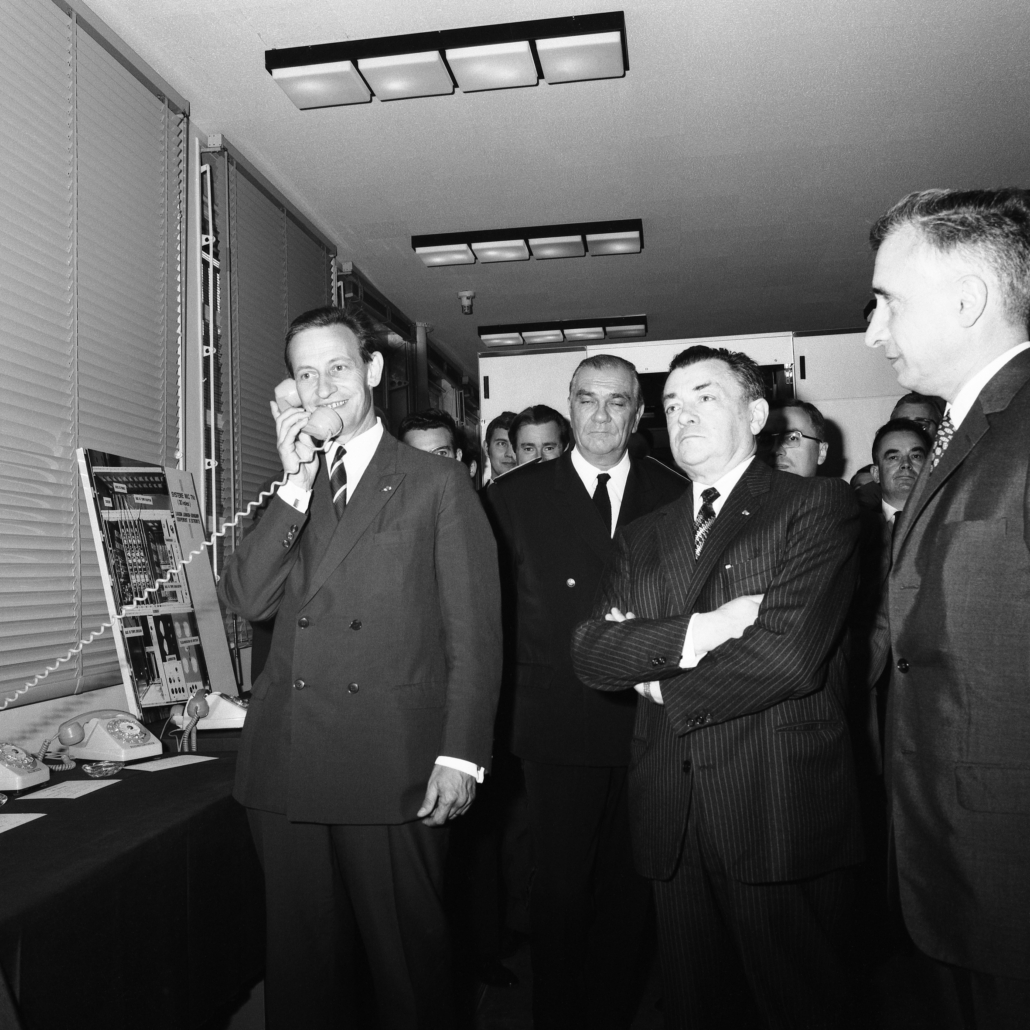 • – Le premier appel téléphonique expérimental entre deux « abonnés tests » de ce même Commutateur prototype est établi le 30 juillet 1969.