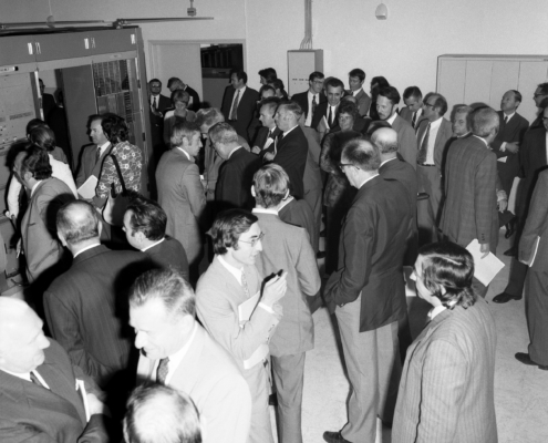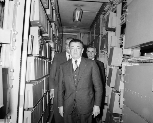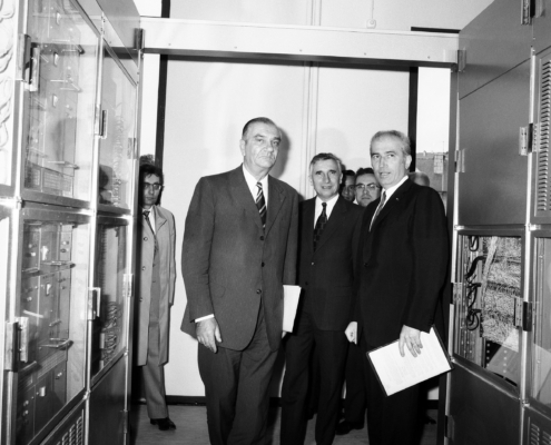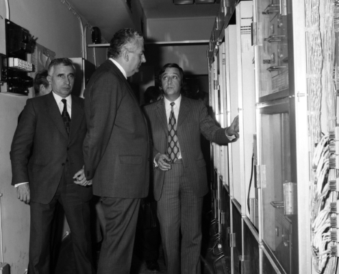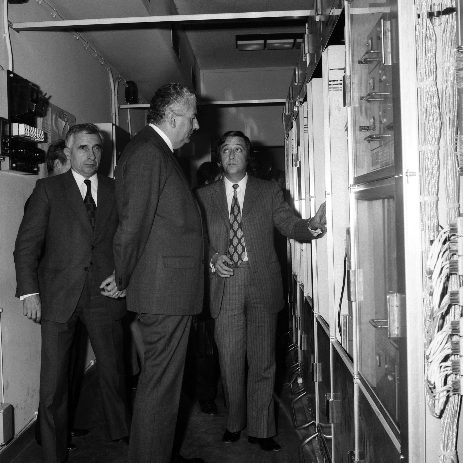• – Le premier Commutateur E12 de province est mis en service en Septembre 1981. Il est officiellement inauguré le 16 octobre 1981 par M. le Ministre des PTT – Louis Mexandeau.