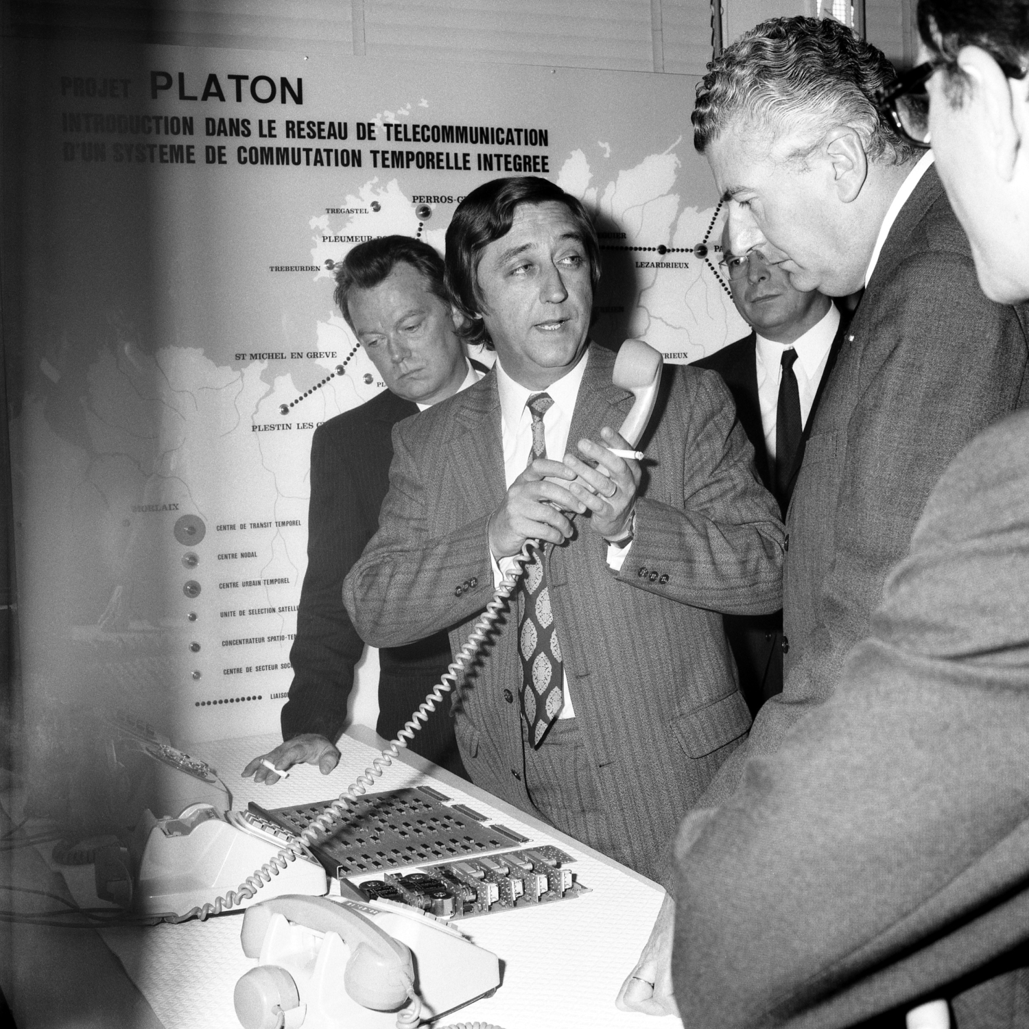 • – Un troisième prototype PLATON d’une capacité de 1.000 abonnés extensible à 8.000 est mis en exploitation en tant que Commutateur d’abonnés à Lannion le 2 juin 1971. (Commutateur d’abonnés Lannion IV) ; Inauguration officielle le 18 juin 1971 en présence de M. le Directeur Général des Télécommunications – Pierre Marzin, .