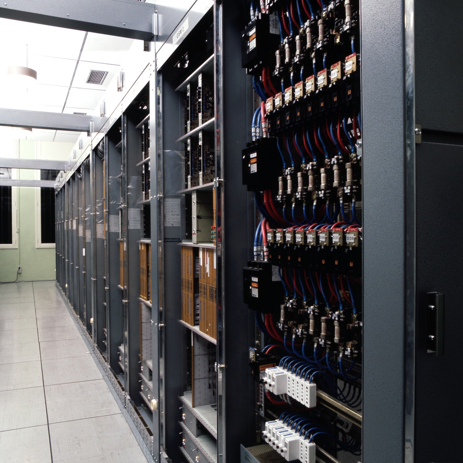 • au premier plan, à droite : 1 baie de Distribution d’Énergie (BDE) chargée d’alimenter une section de Commutateur.