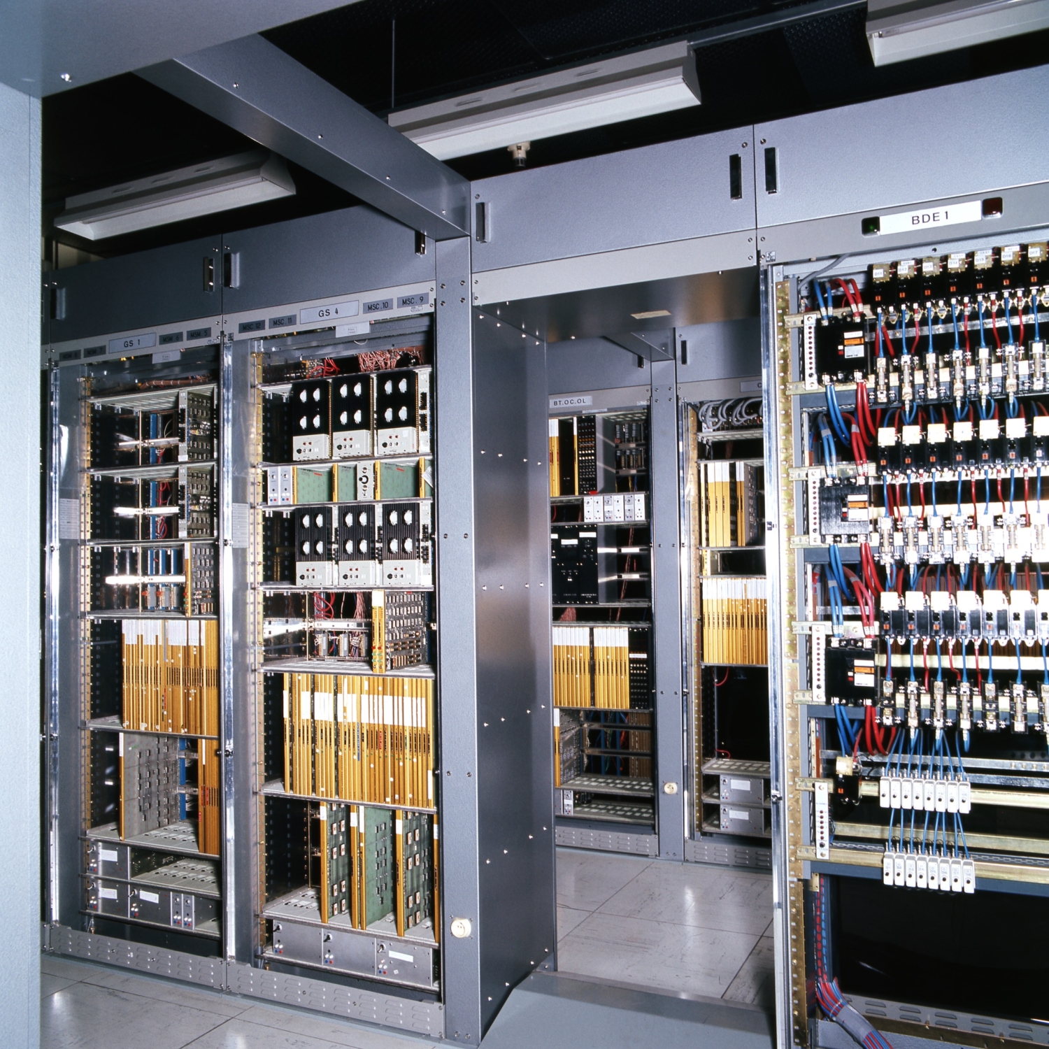 Ci-dessus : vue d’une travée du Commutateur E10CTI de Saint-Brieuc (RN520).