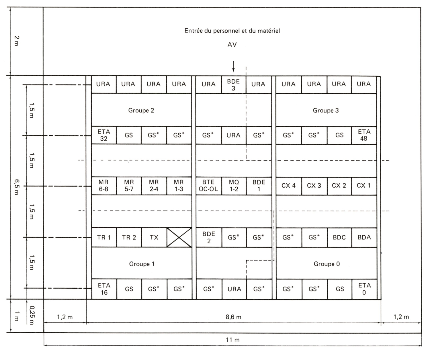 • En bleu : les enceintes blindées des Mémoires-programme des Multienregistreurs.