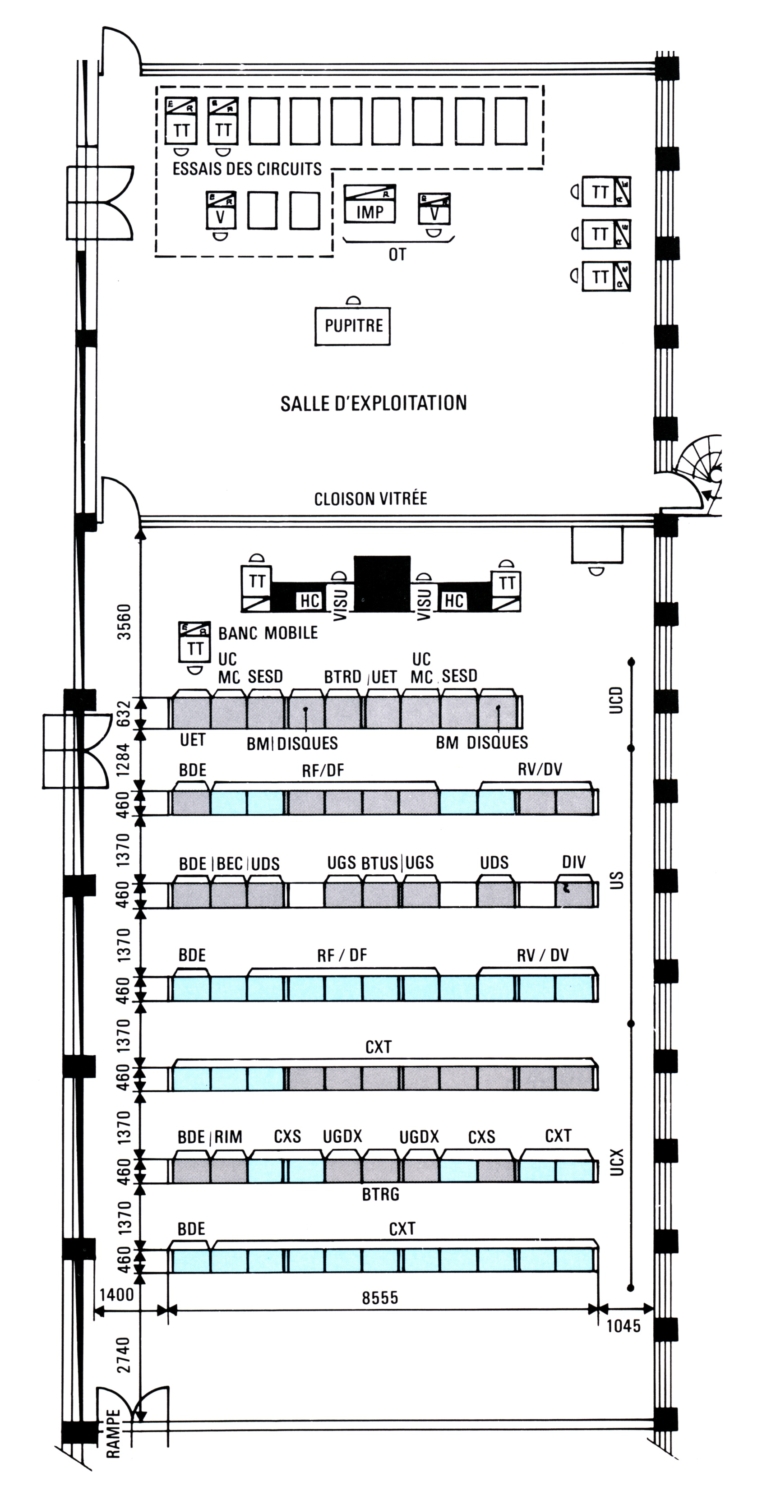 Ci-dessus : vue transversale du Commutateur de Transit E12 – Massy CTZP1 (RP11).