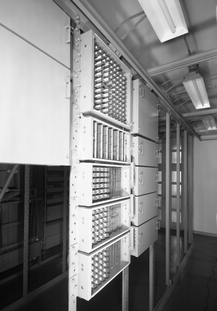 - cliché 4 : le Répartiteur Général, vu du côté Réglettes Horizontales. Le Répartiteur Général permet la liaison entre le Commutateur (côté Réglettes Horizontales) et l’ensemble des abonnés locaux (côté Têtes Verticales).