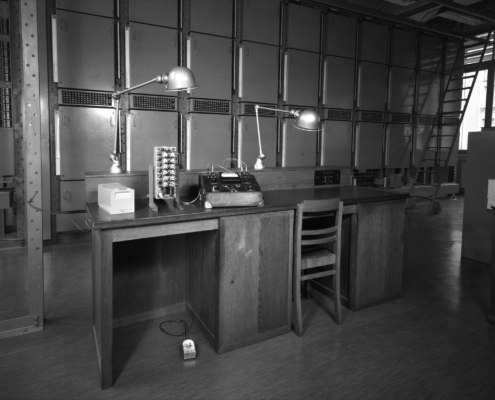 - clichés 1 et 2 : vue d’ensemble du Commutateur R6N2, avec vue sur les établis des techniciens.