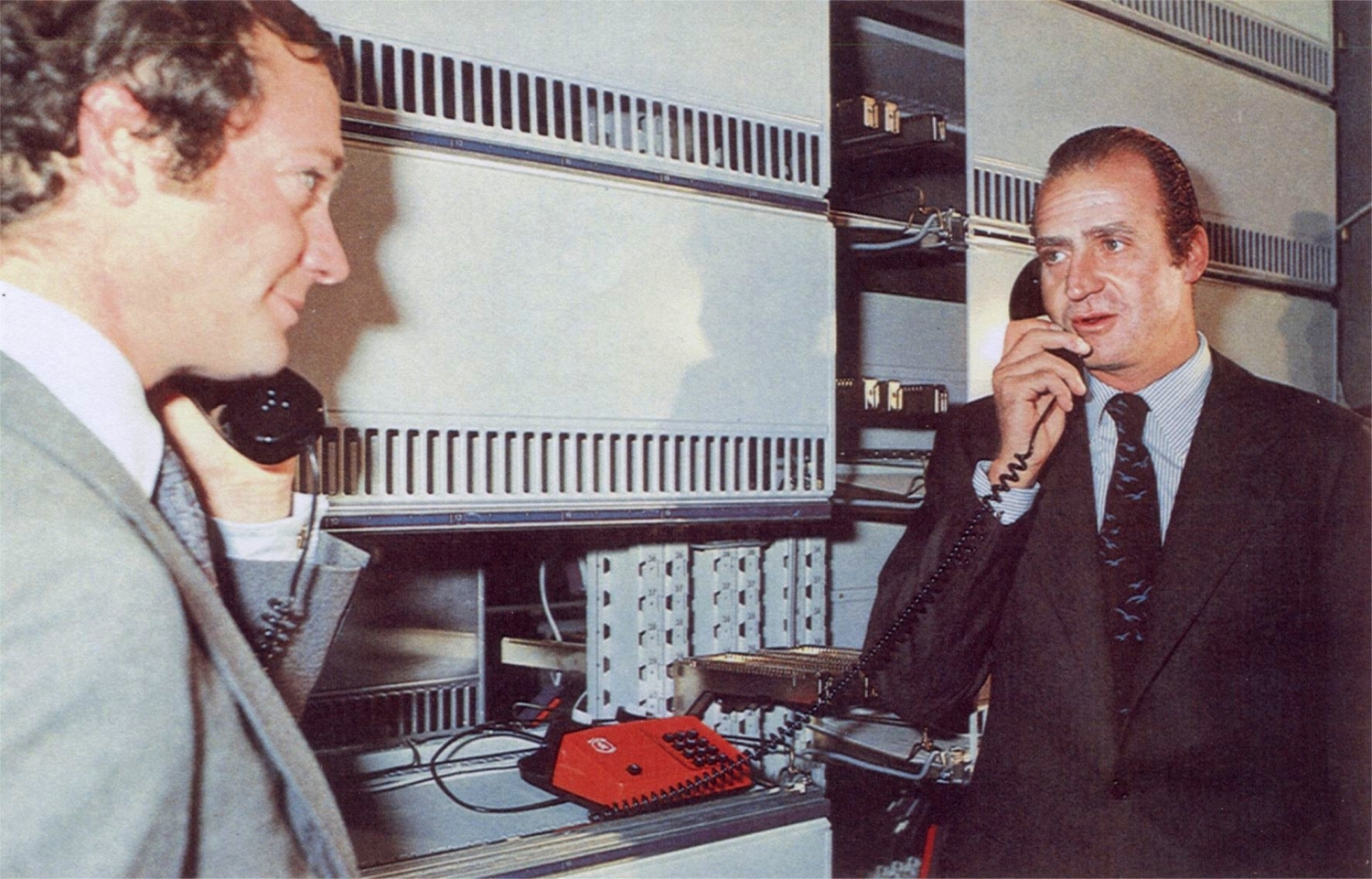 Ci-dessus : SM le Roi de Suède Charles XVI Gustave Bernadotte faisant une démonstration du système AXE Spatial à son invité du moment, SM le Roi Jean-Charles Ier d’Espagne, en Octobre 1979.