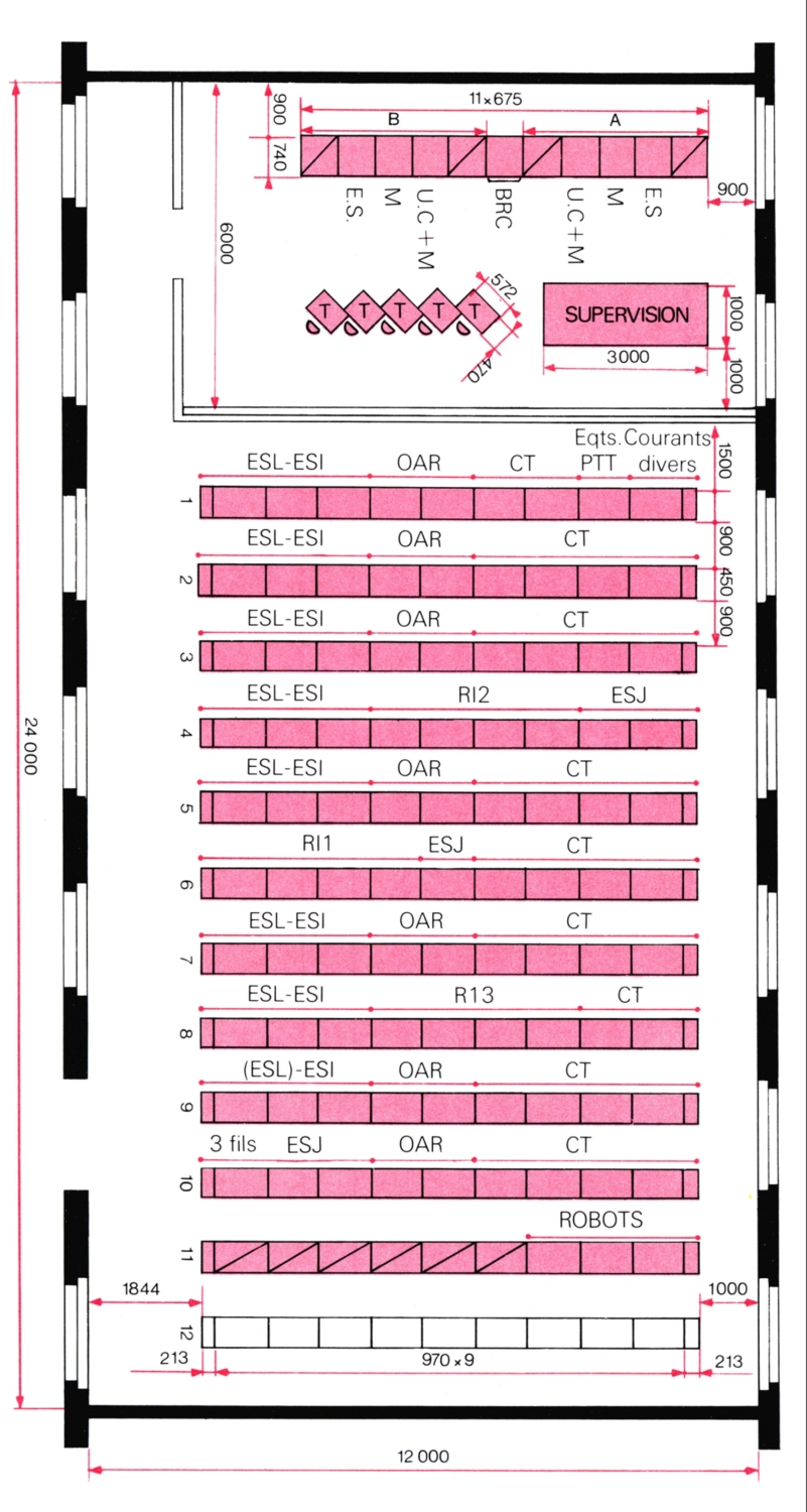 Ci-dessus : croquis d’implantation type d’un Commutateur AXE Spatial.