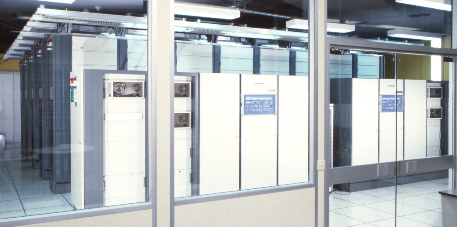 Ci-dessus : travée des Calculateurs du Commutateur AXE Spatial Orléans Grenier-à-Sel (OR10), alors en cours de tests.
