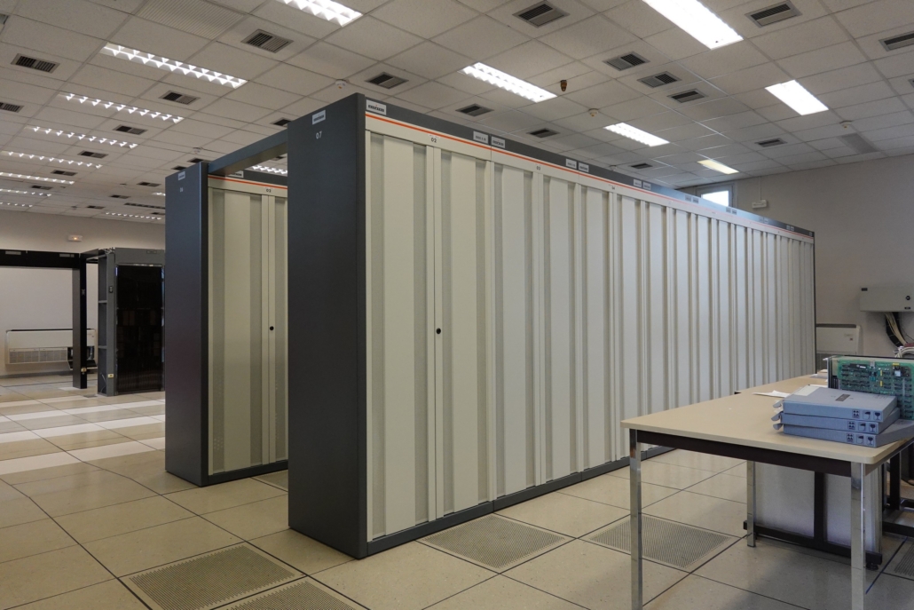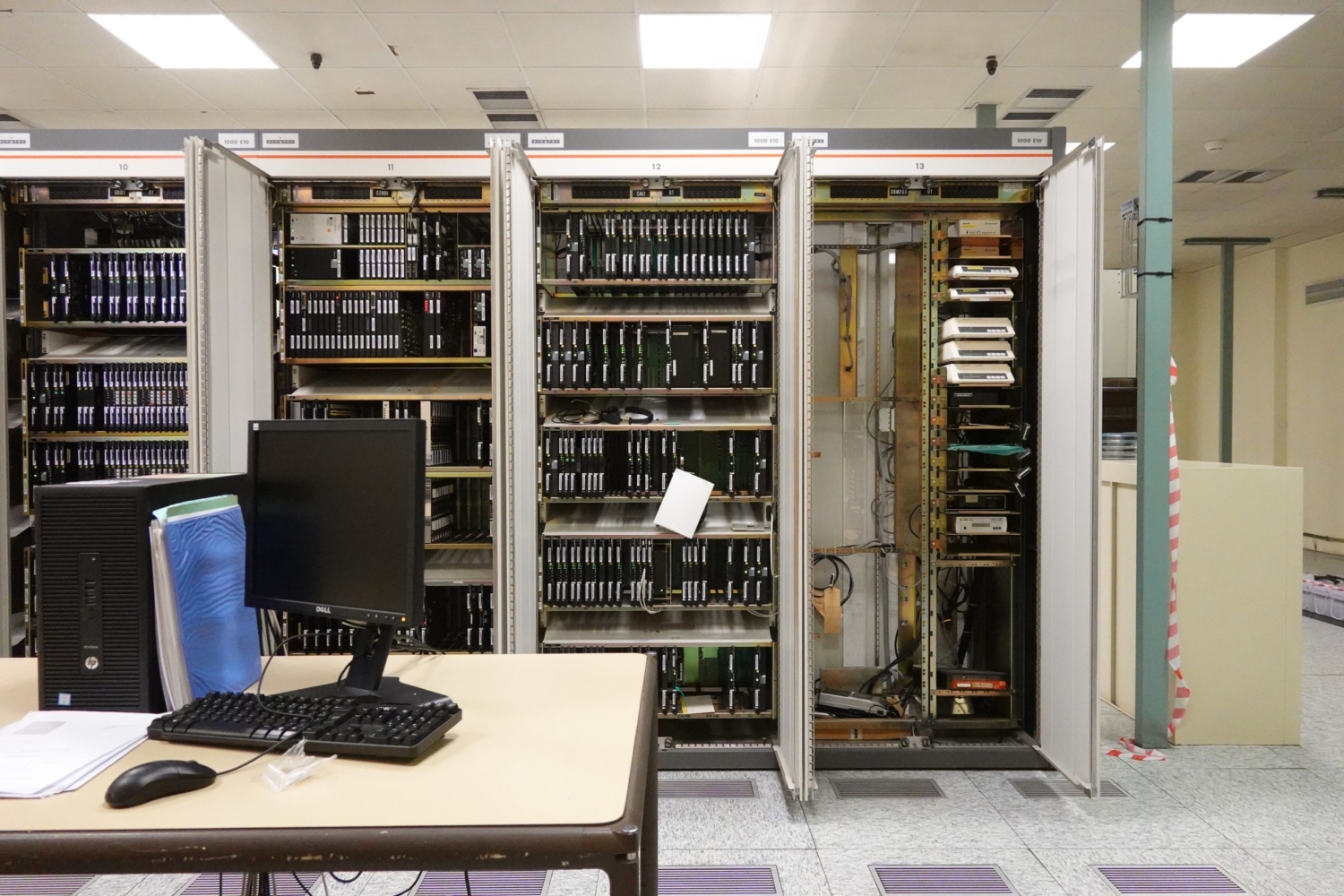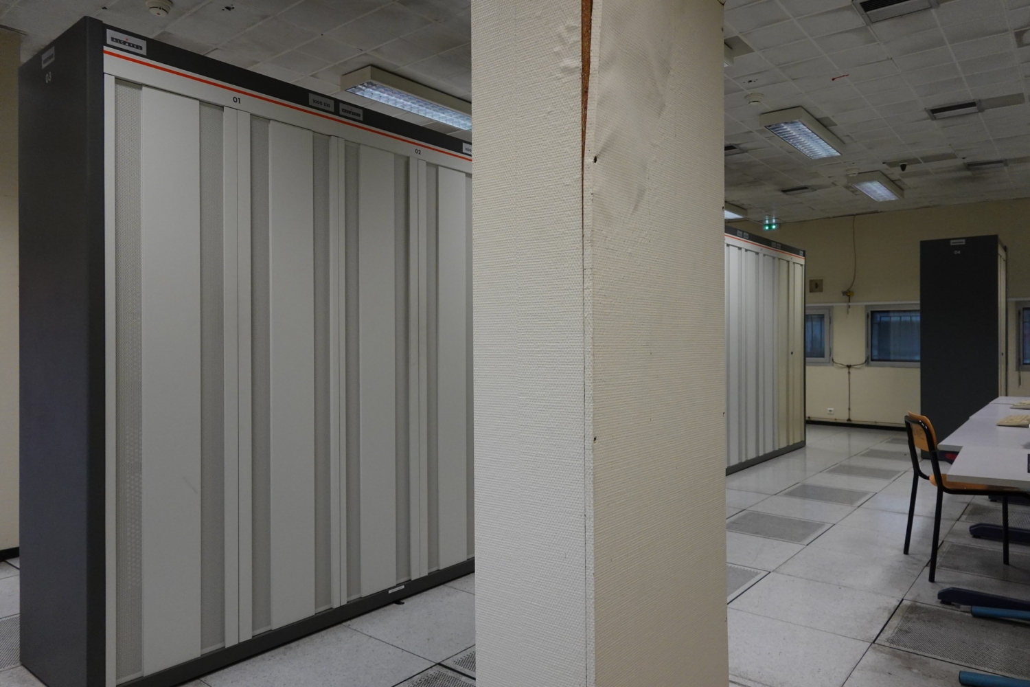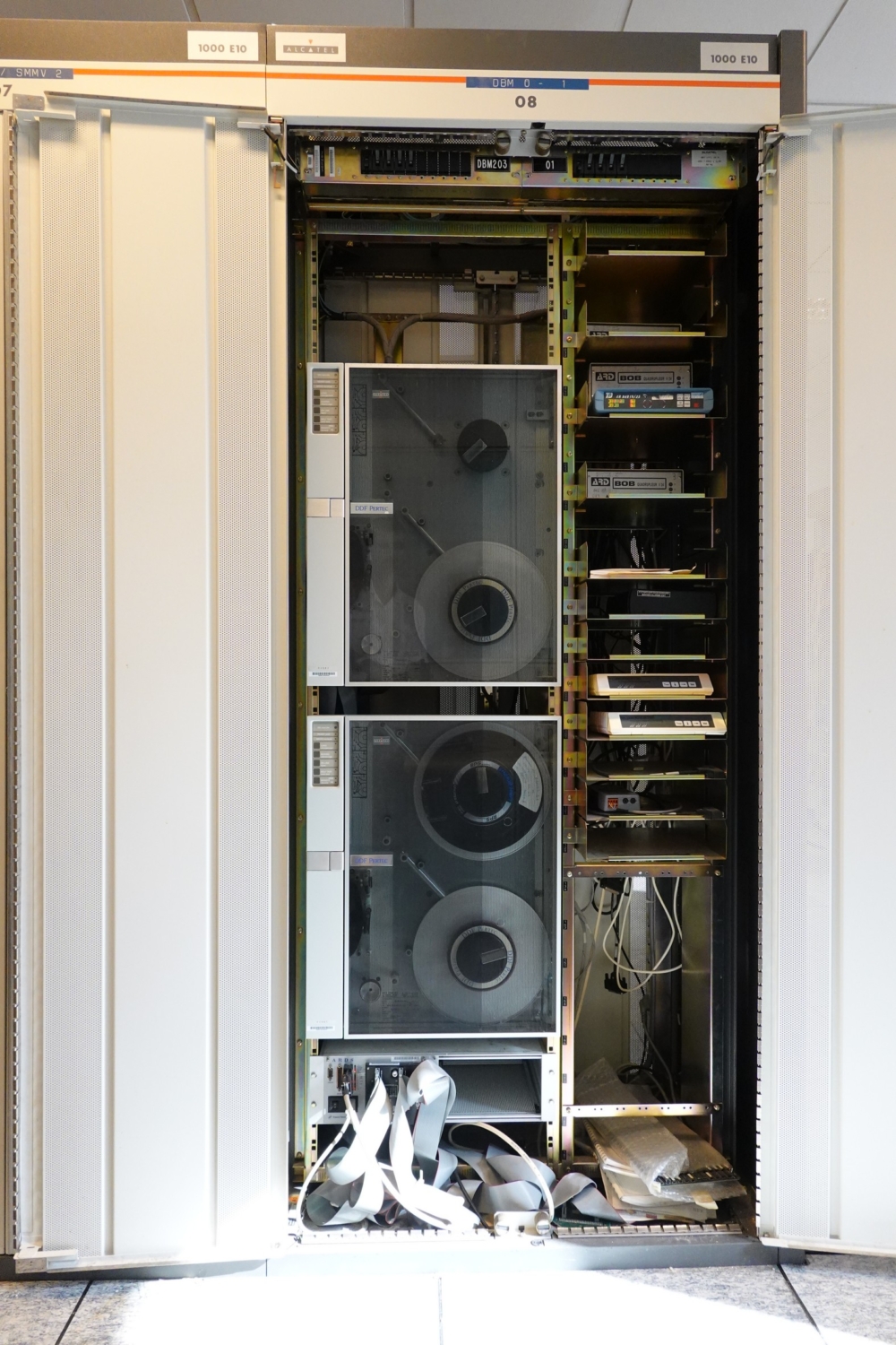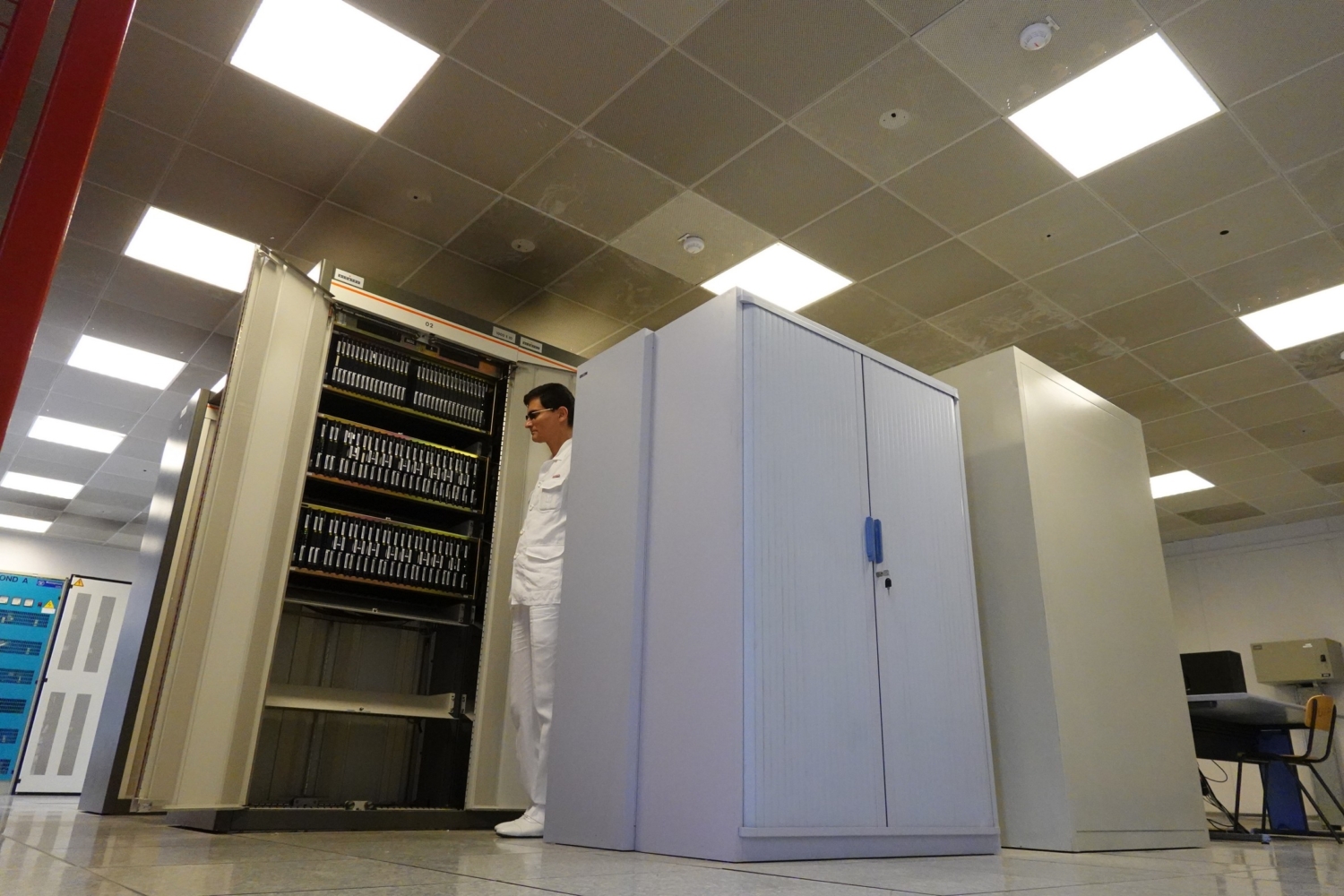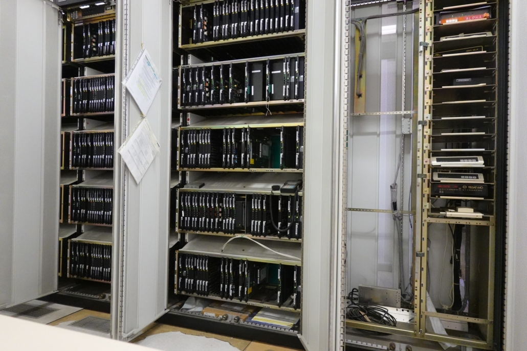 Ci-dessus : vue d’ensemble de l’installation spéciale de Dérouleurs de Bande Magnétique (DBM) de l’ancien PEMS de supervision du parc d’autocommutateurs E10B3 du Centre-Val-de-Loire.
