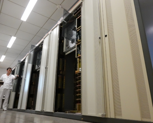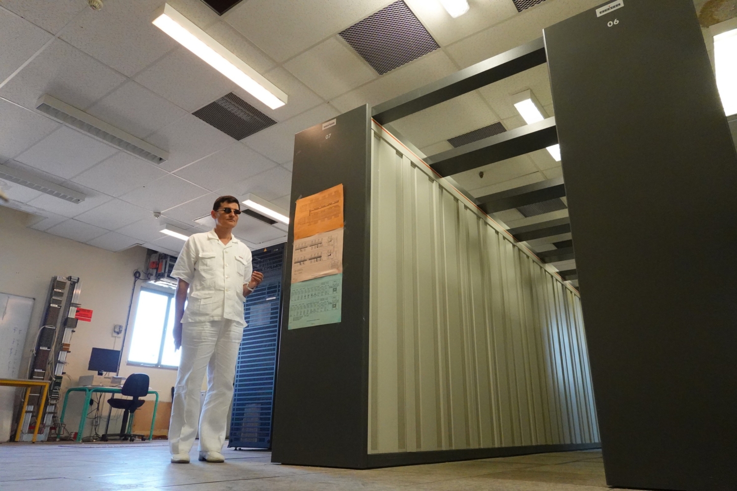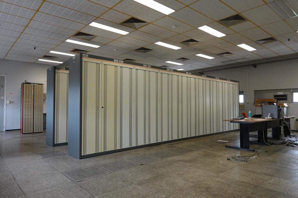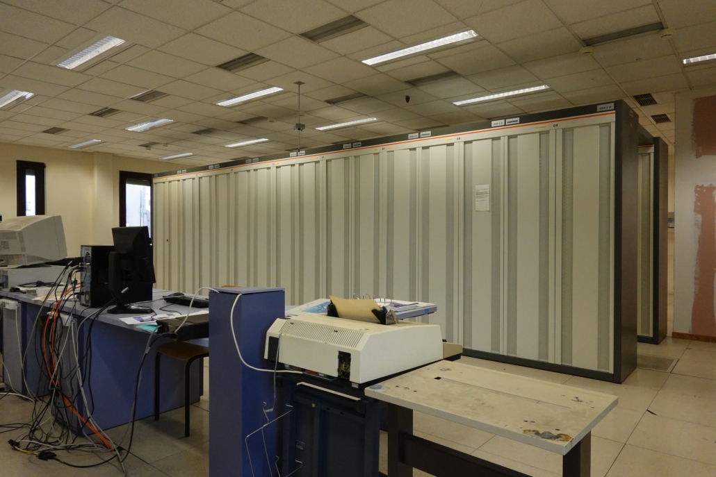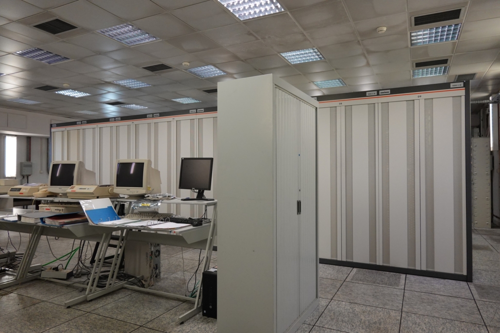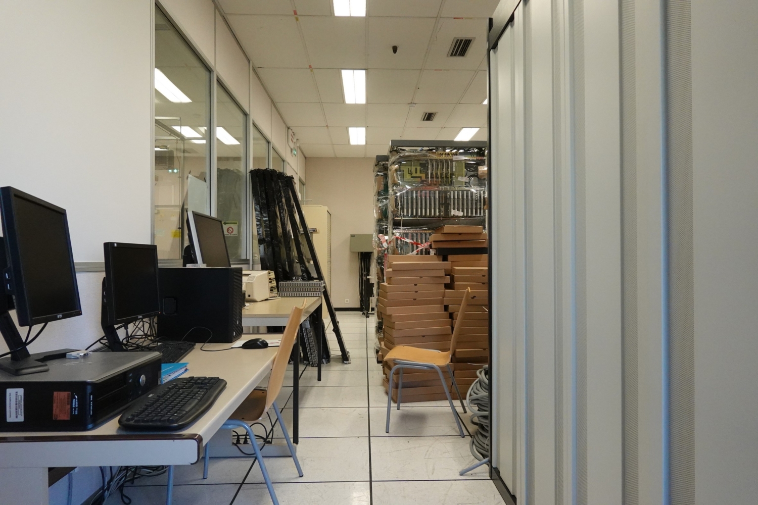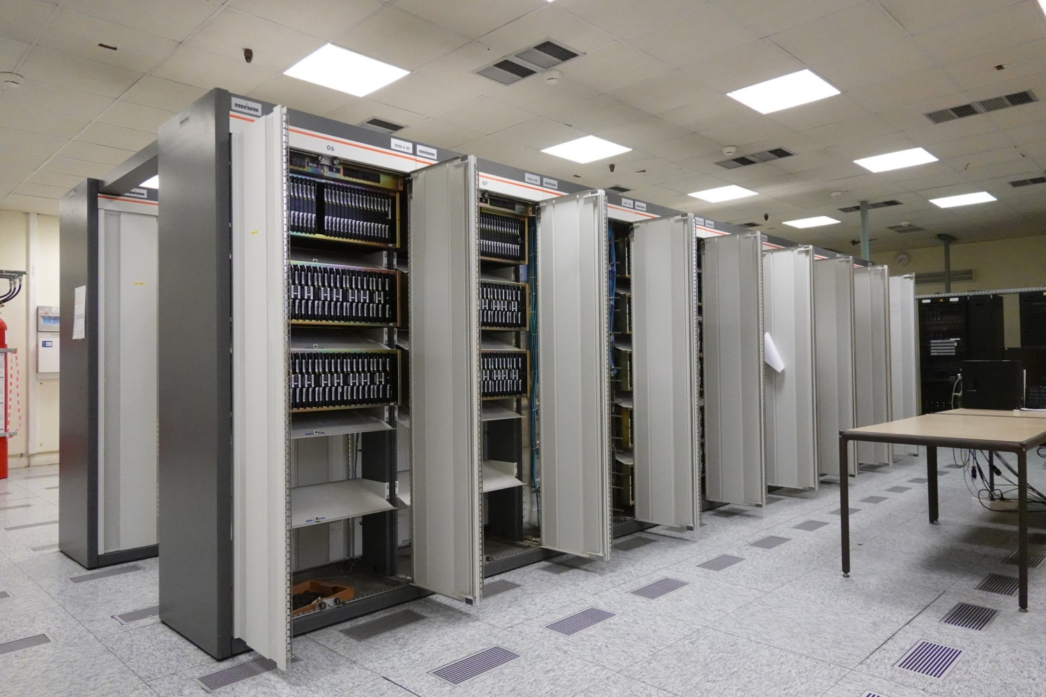 Ci-dessus : vue d’ensemble de l’installation spéciale de Dérouleurs de Bande Magnétique (DBM) de l’ancien PEMS de supervision du parc d’autocommutateurs E10B3 du Centre-Val-de-Loire.