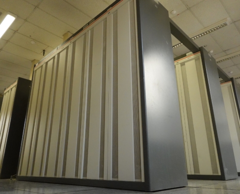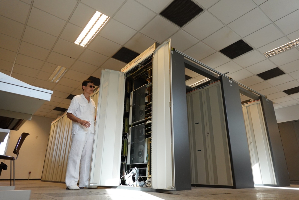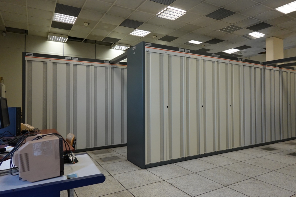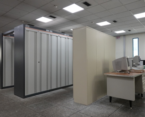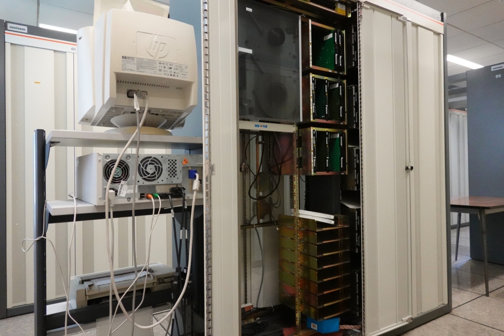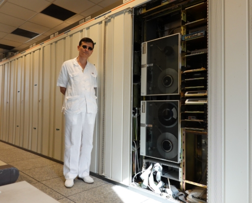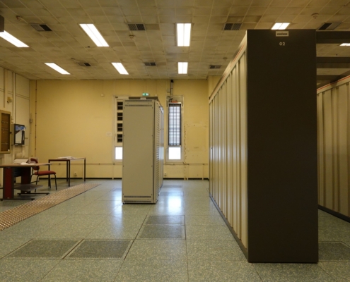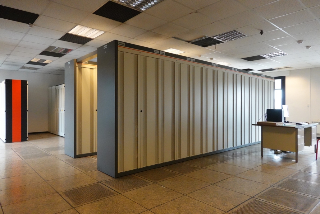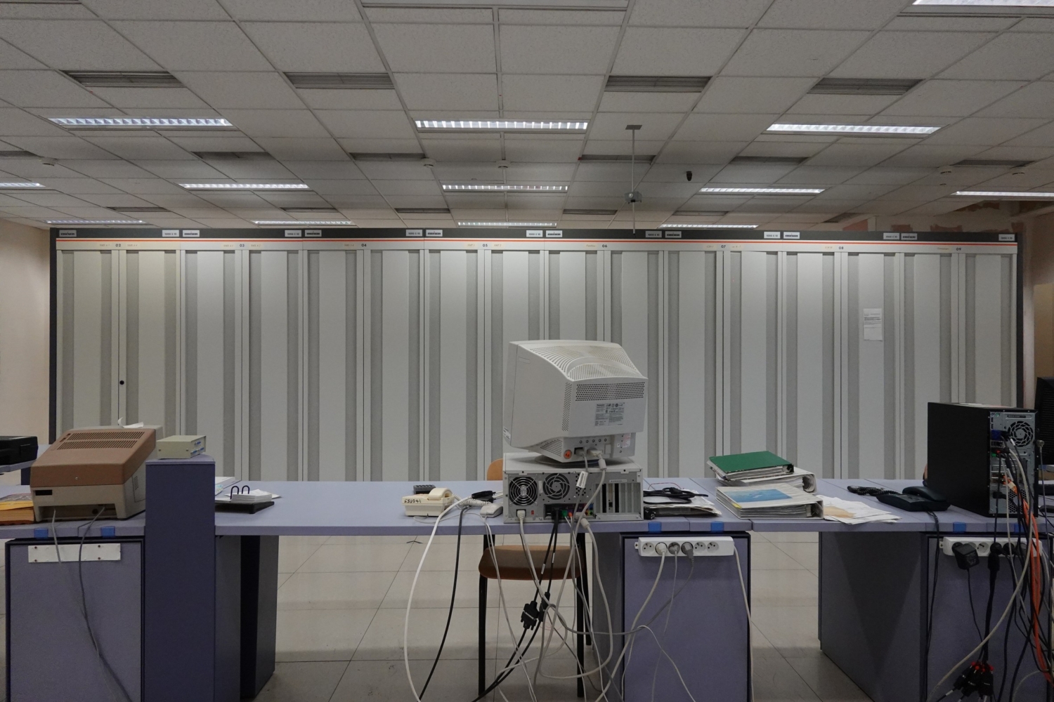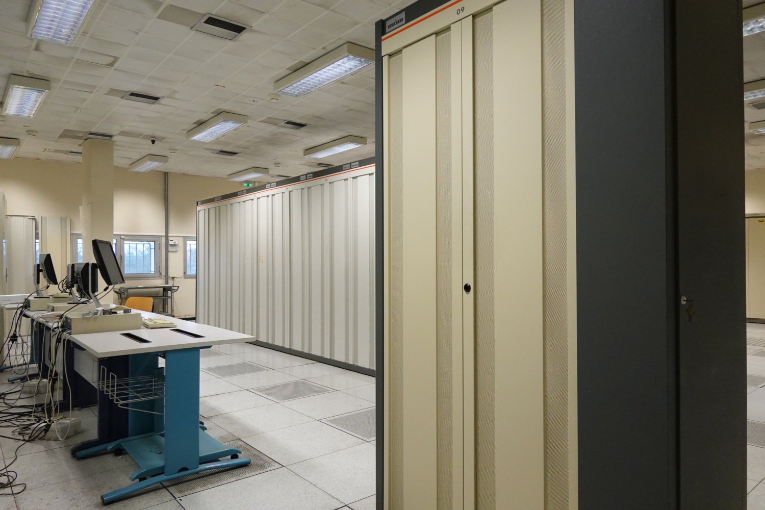 Ci-dessus : vue d’ensemble de l’installation spéciale de Dérouleurs de Bande Magnétique (DBM) de l’ancien PEMS de supervision du parc d’autocommutateurs E10B3 du Centre-Val-de-Loire.