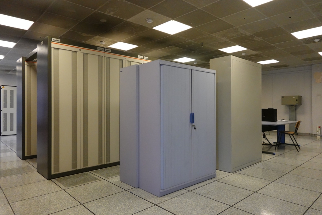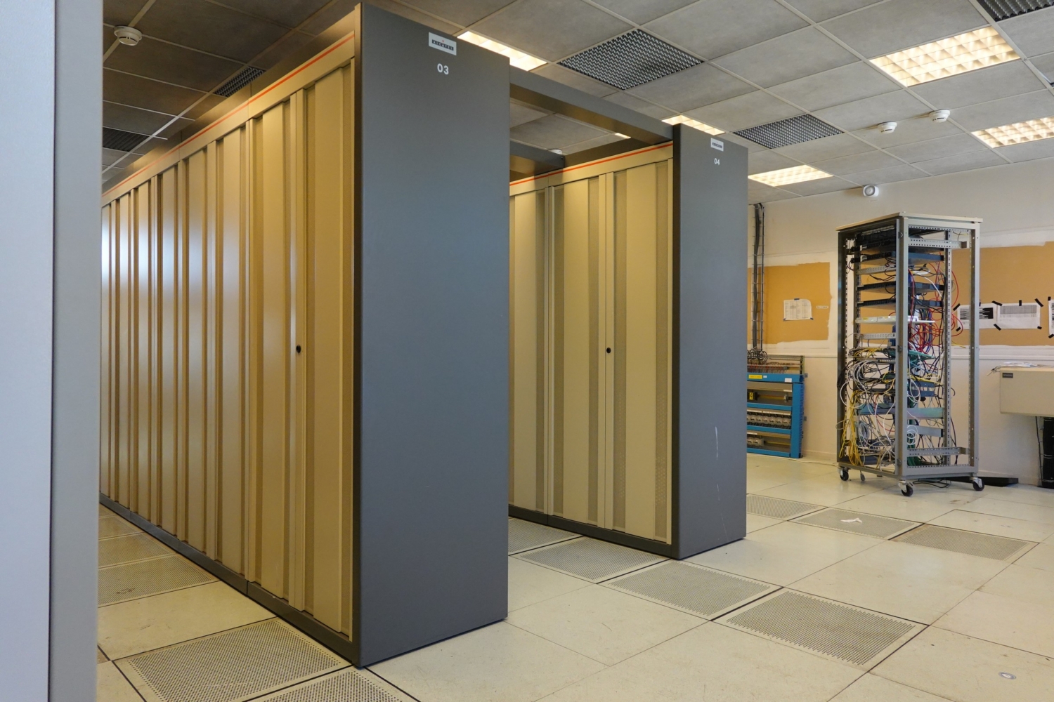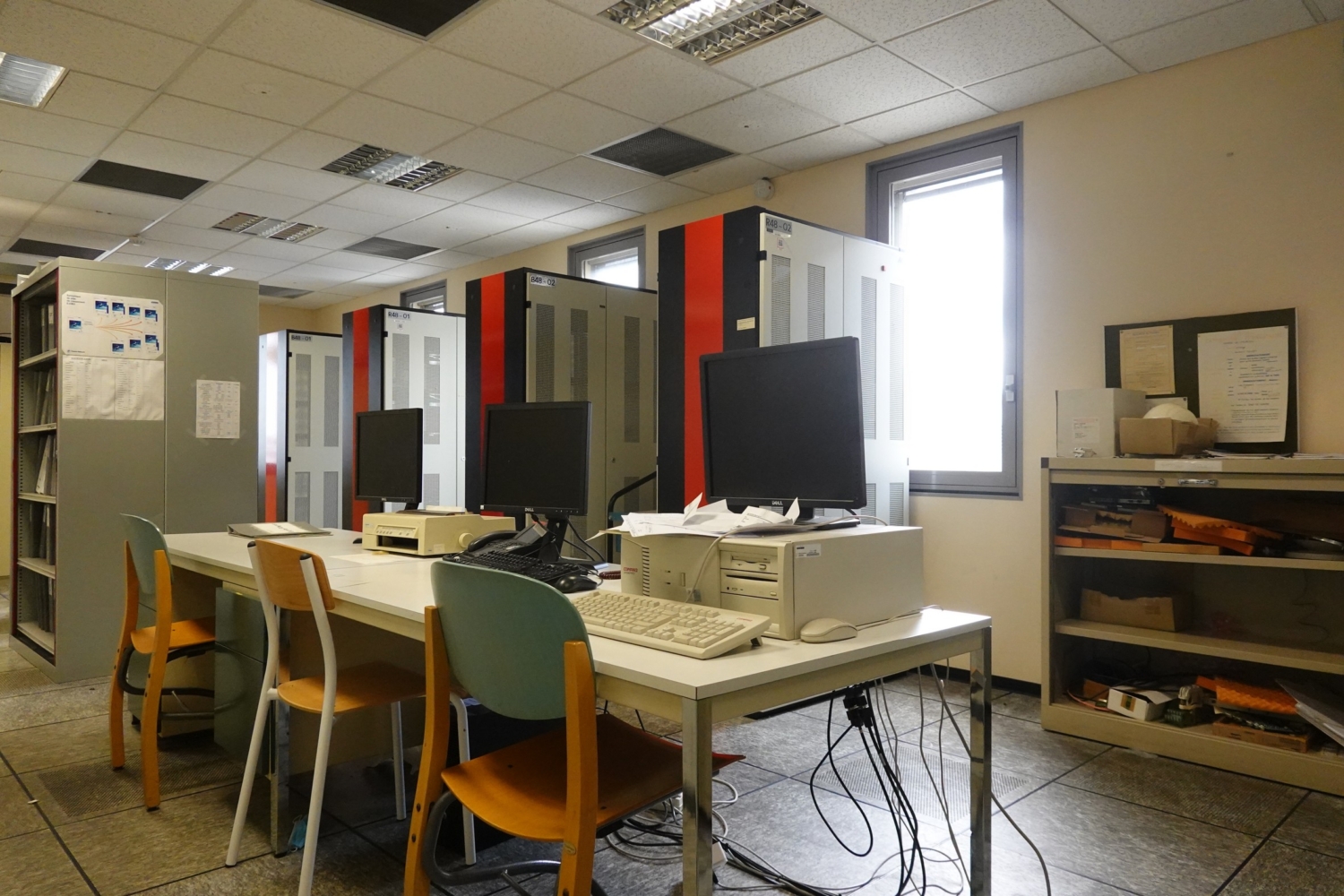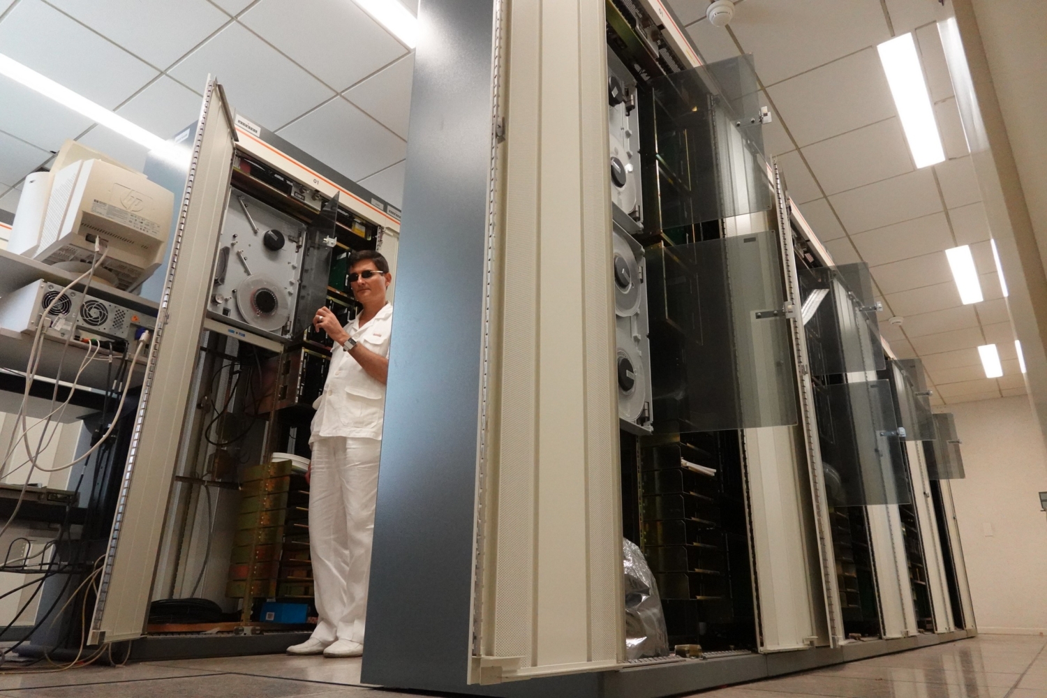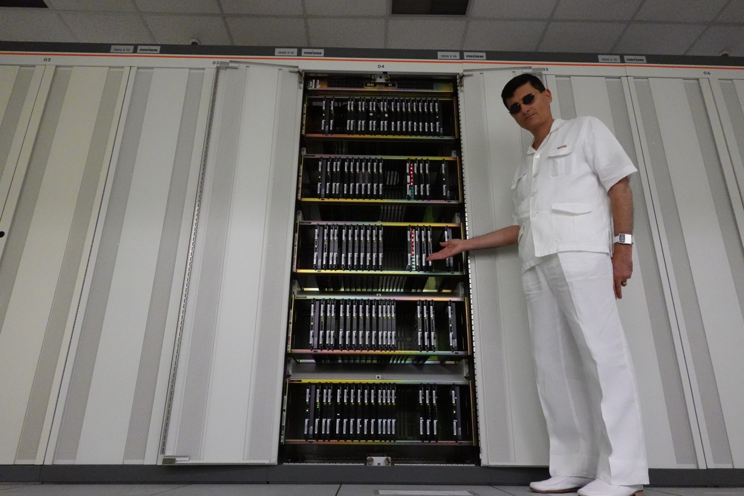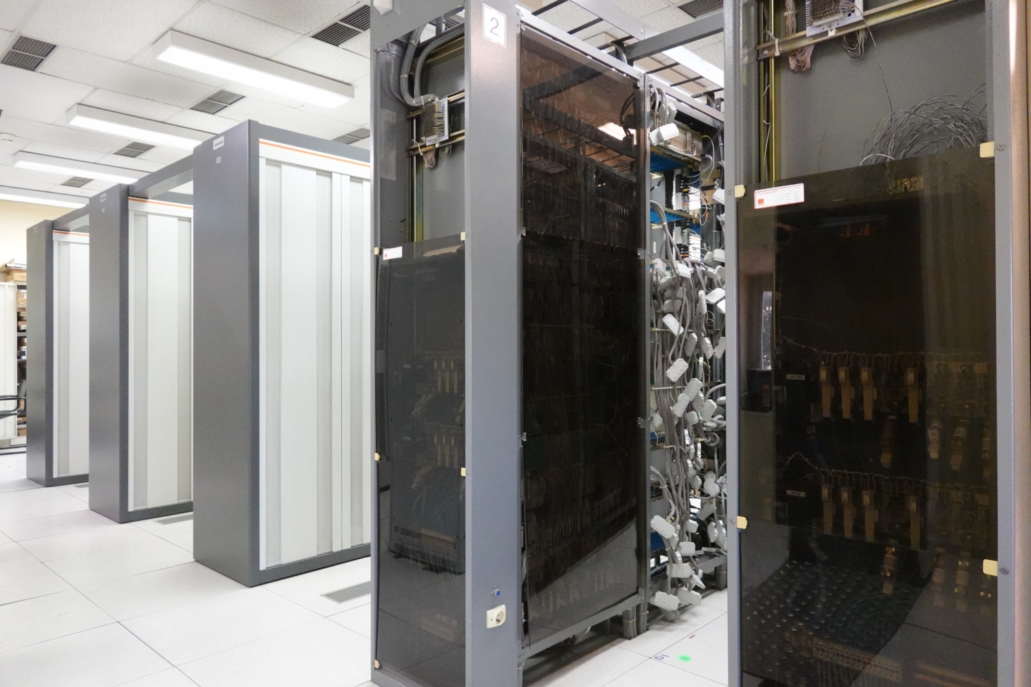 Ci-dessus : vue d’ensemble de l’installation spéciale de Dérouleurs de Bande Magnétique (DBM) de l’ancien PEMS de supervision du parc d’autocommutateurs E10B3 du Centre-Val-de-Loire.
