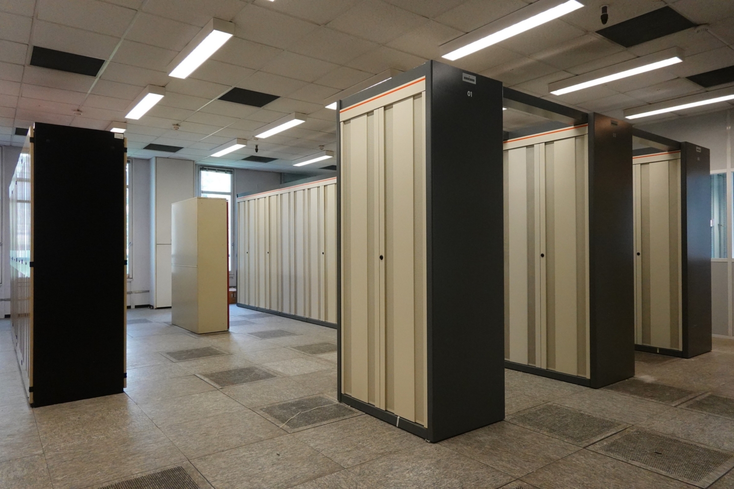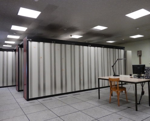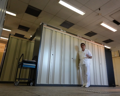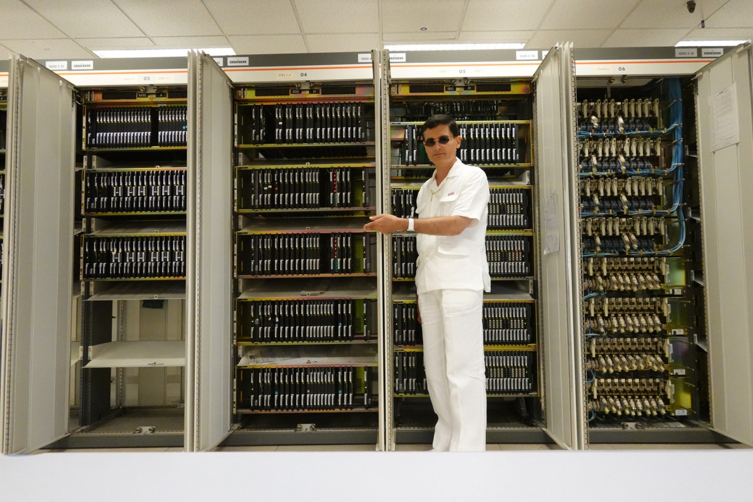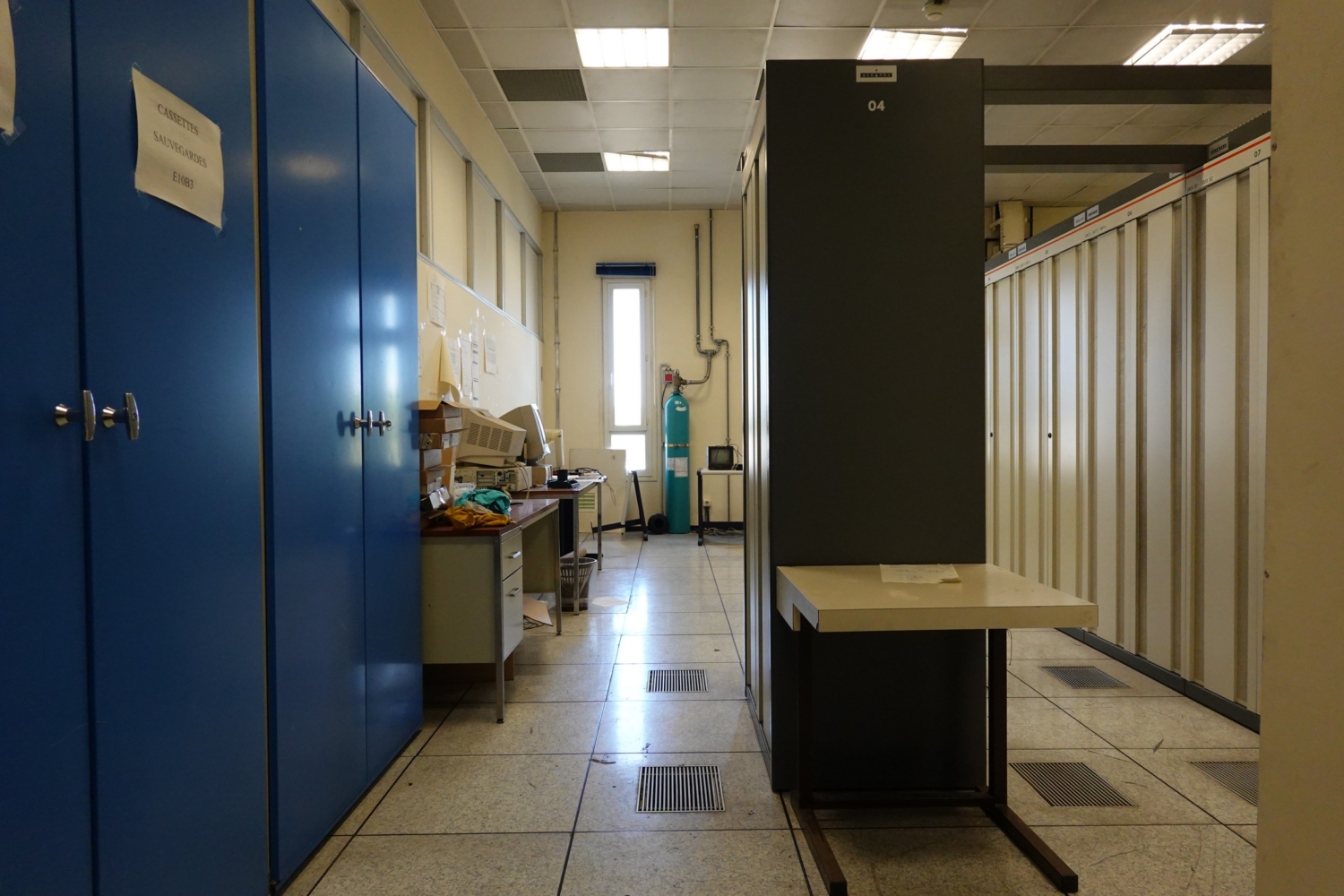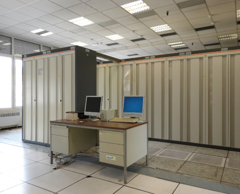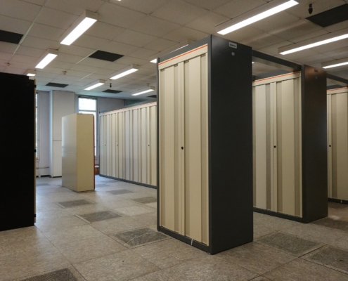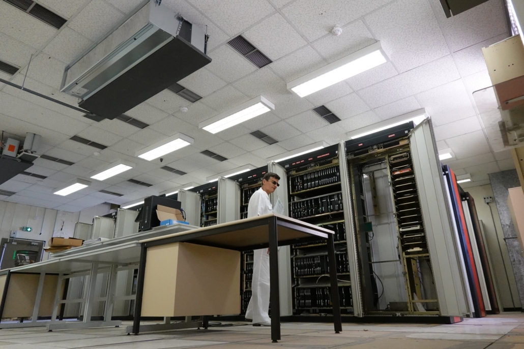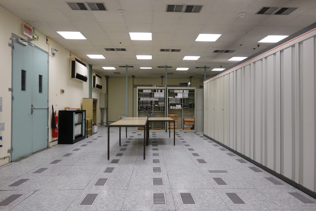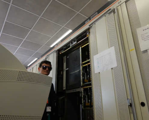 Ci-dessus : vue d’ensemble de l’installation spéciale de Dérouleurs de Bande Magnétique (DBM) de l’ancien PEMS de supervision du parc d’autocommutateurs E10B3 du Centre-Val-de-Loire.