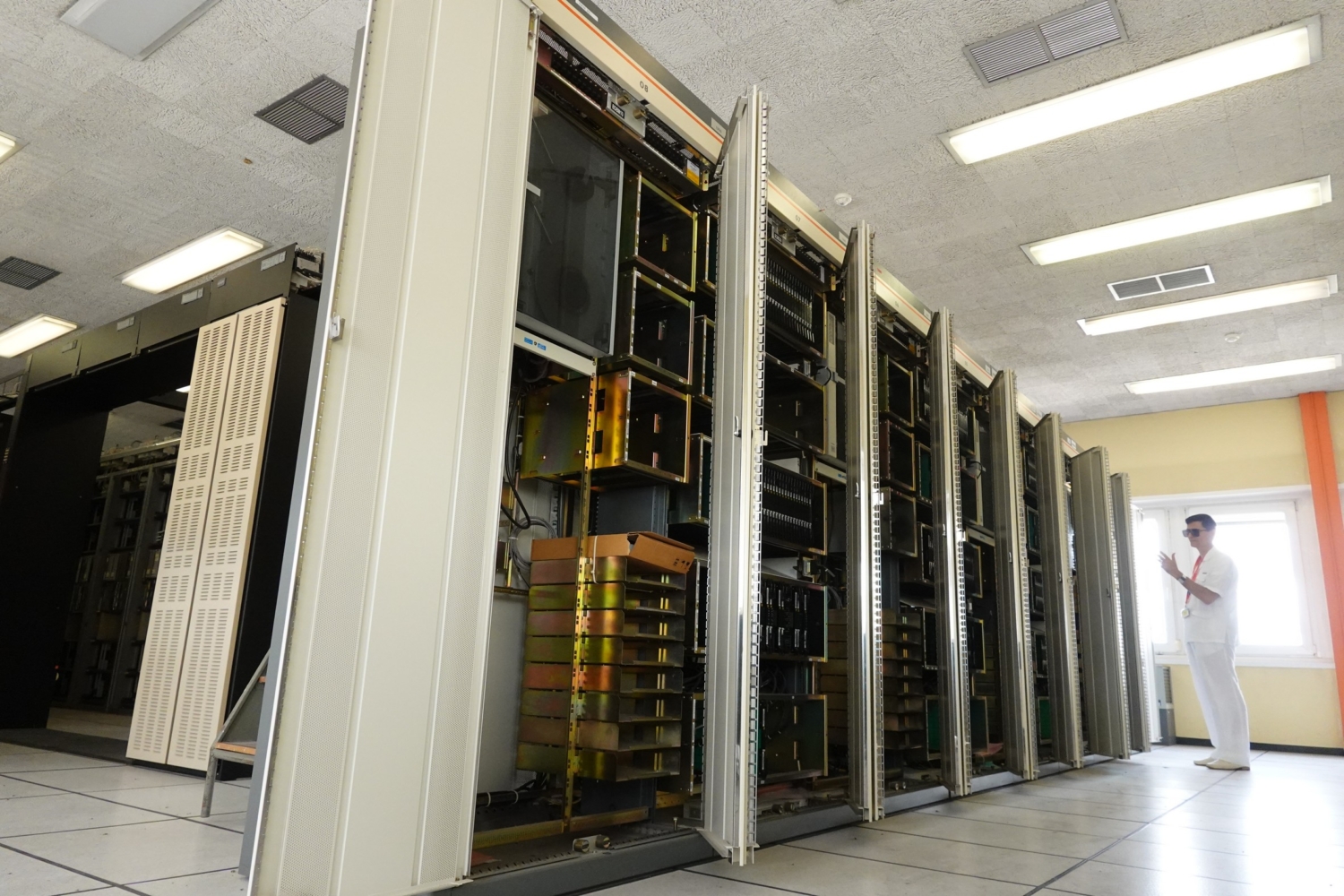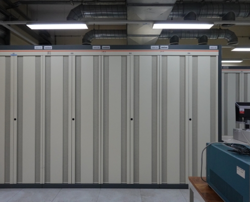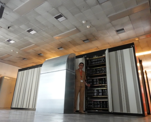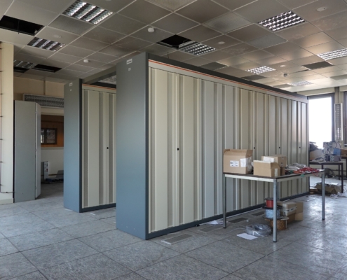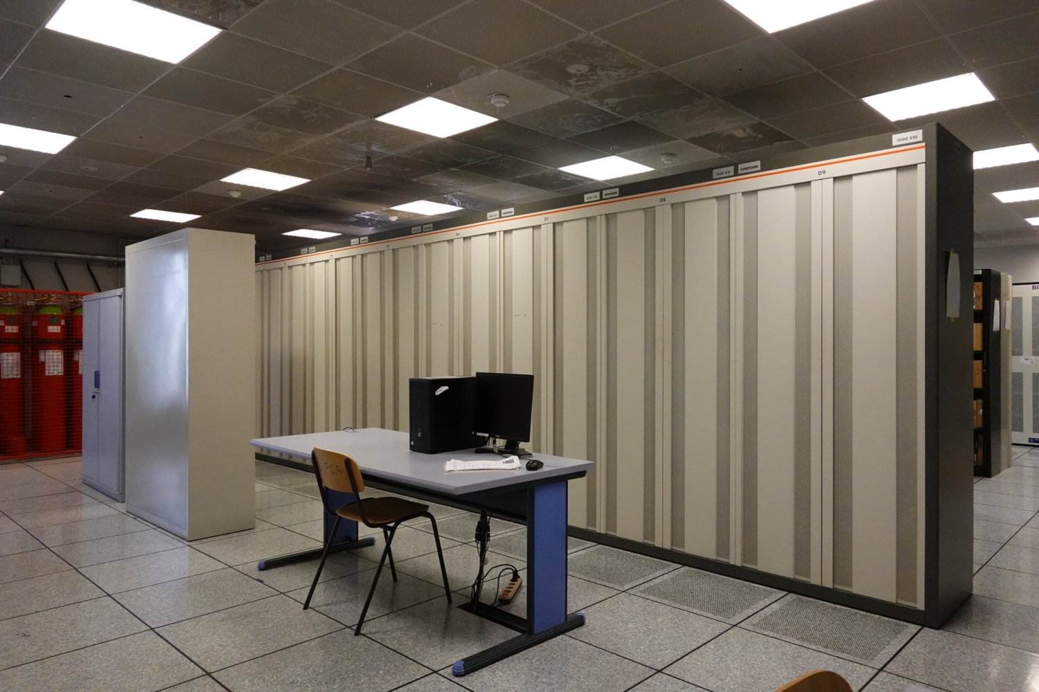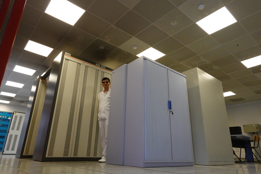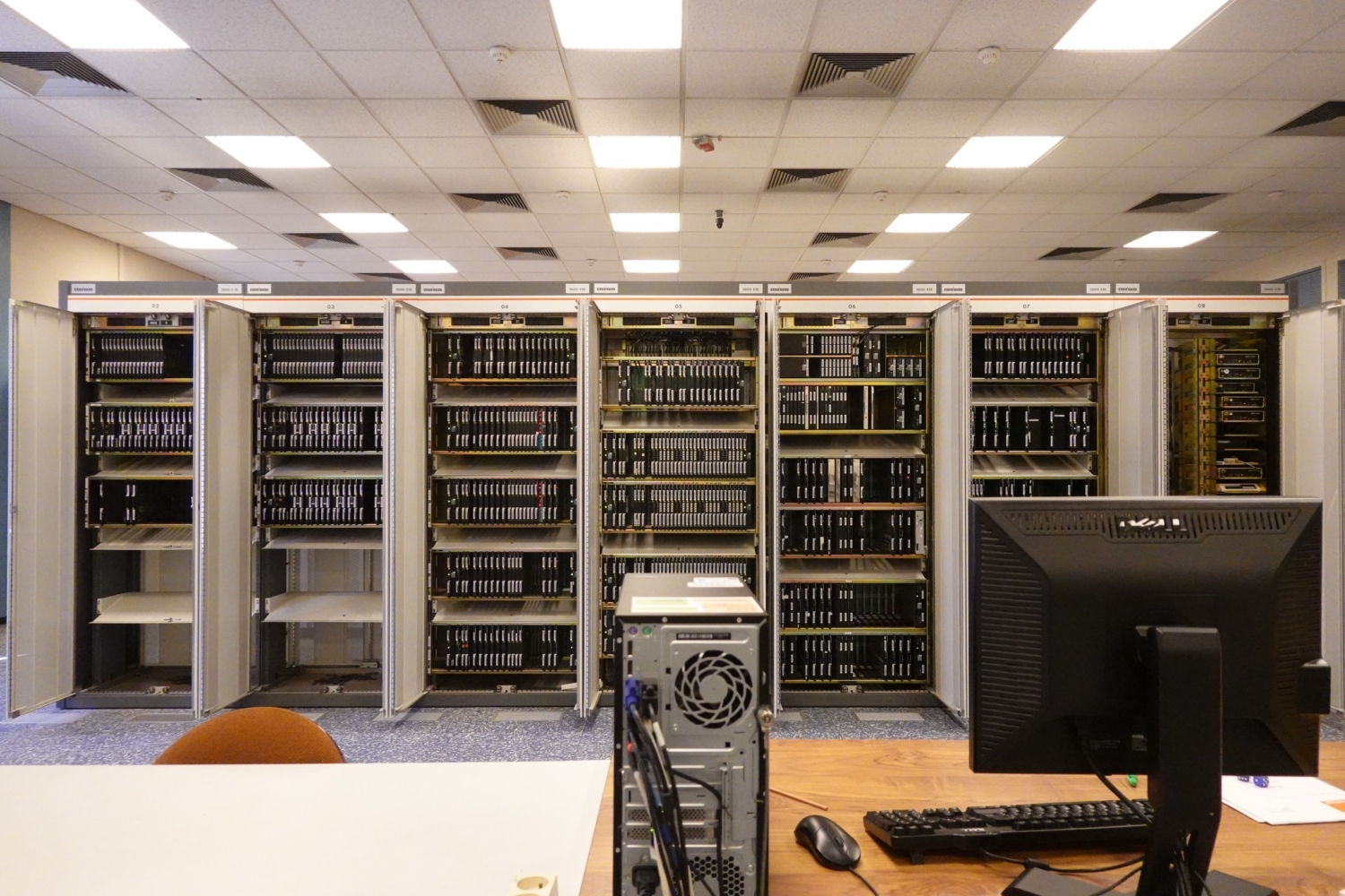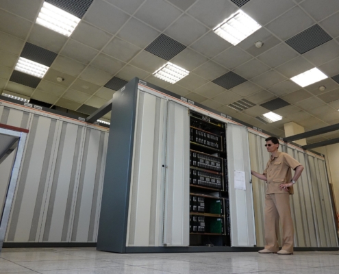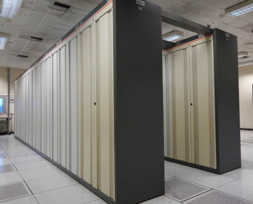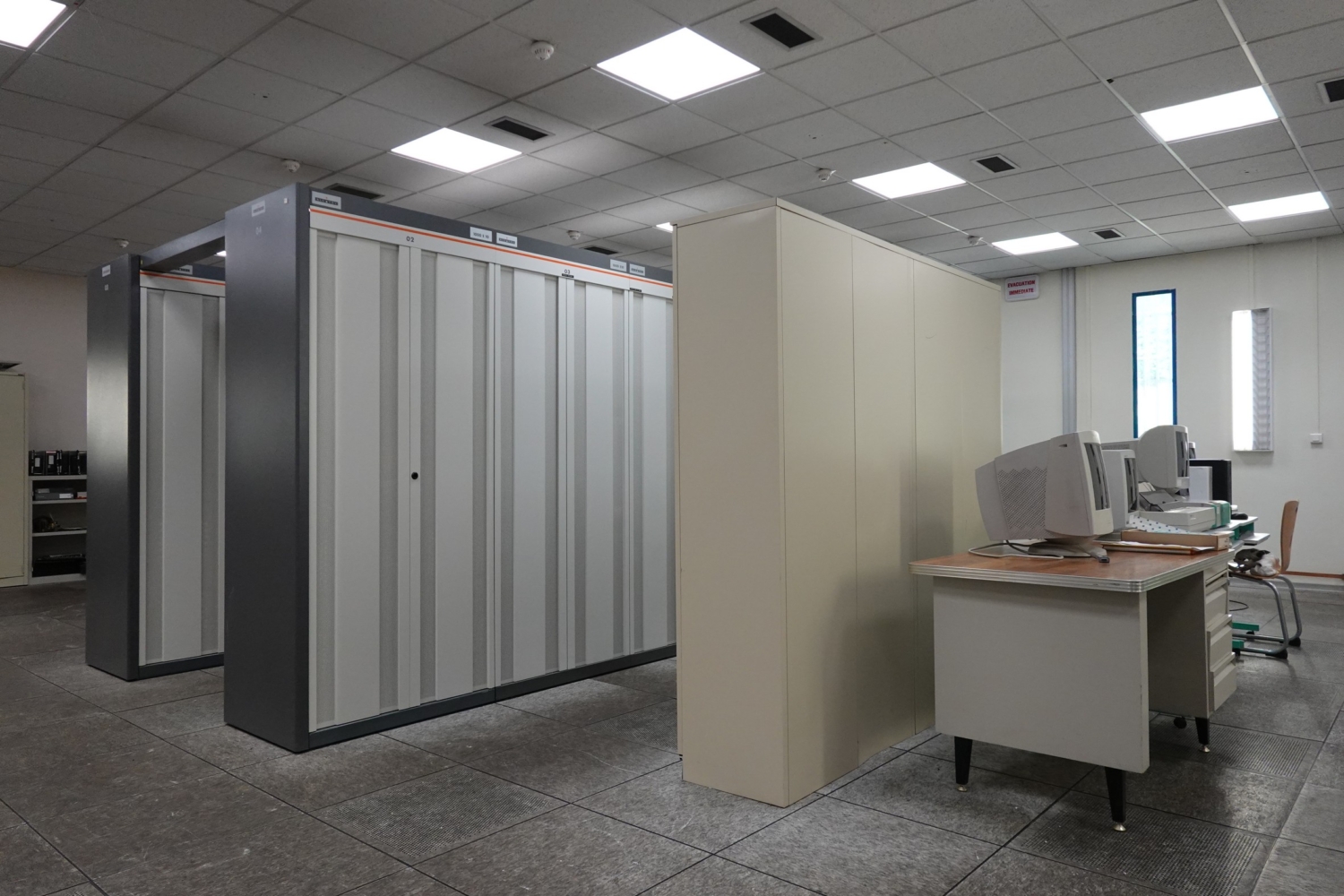 Ci-dessus : vue d’ensemble de l’installation spéciale de Dérouleurs de Bande Magnétique (DBM) de l’ancien PEMS de supervision du parc d’autocommutateurs E10B3 du Centre-Val-de-Loire.