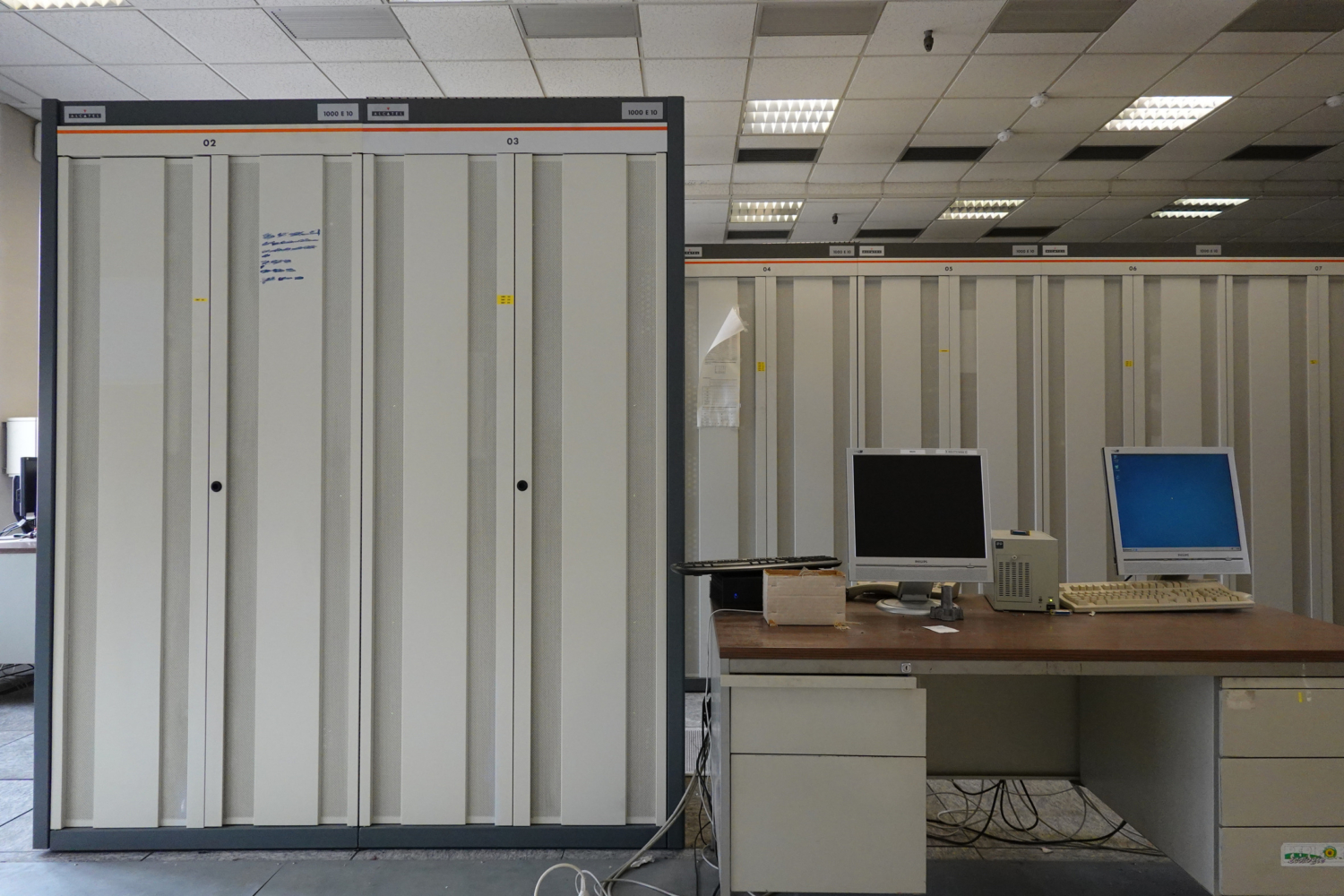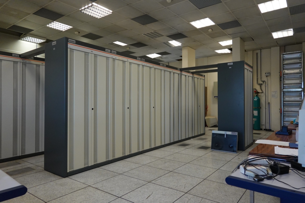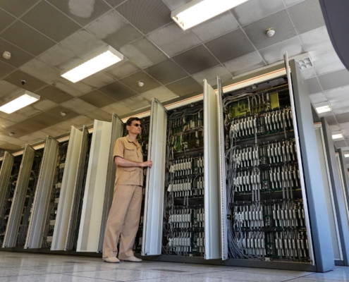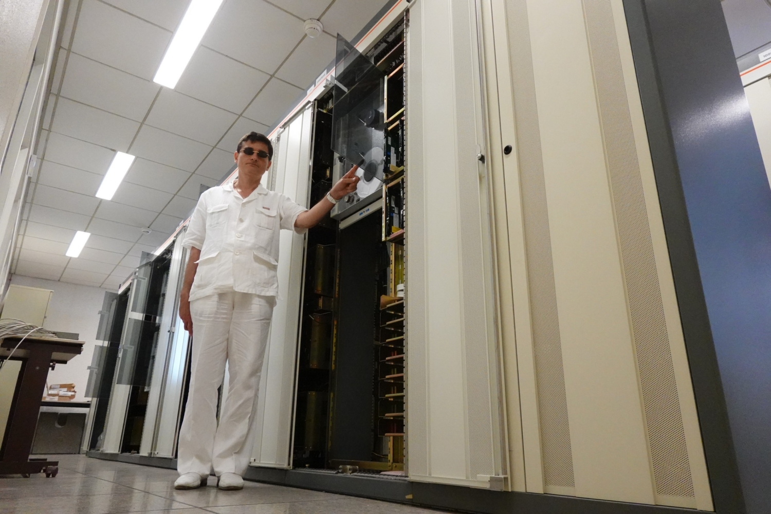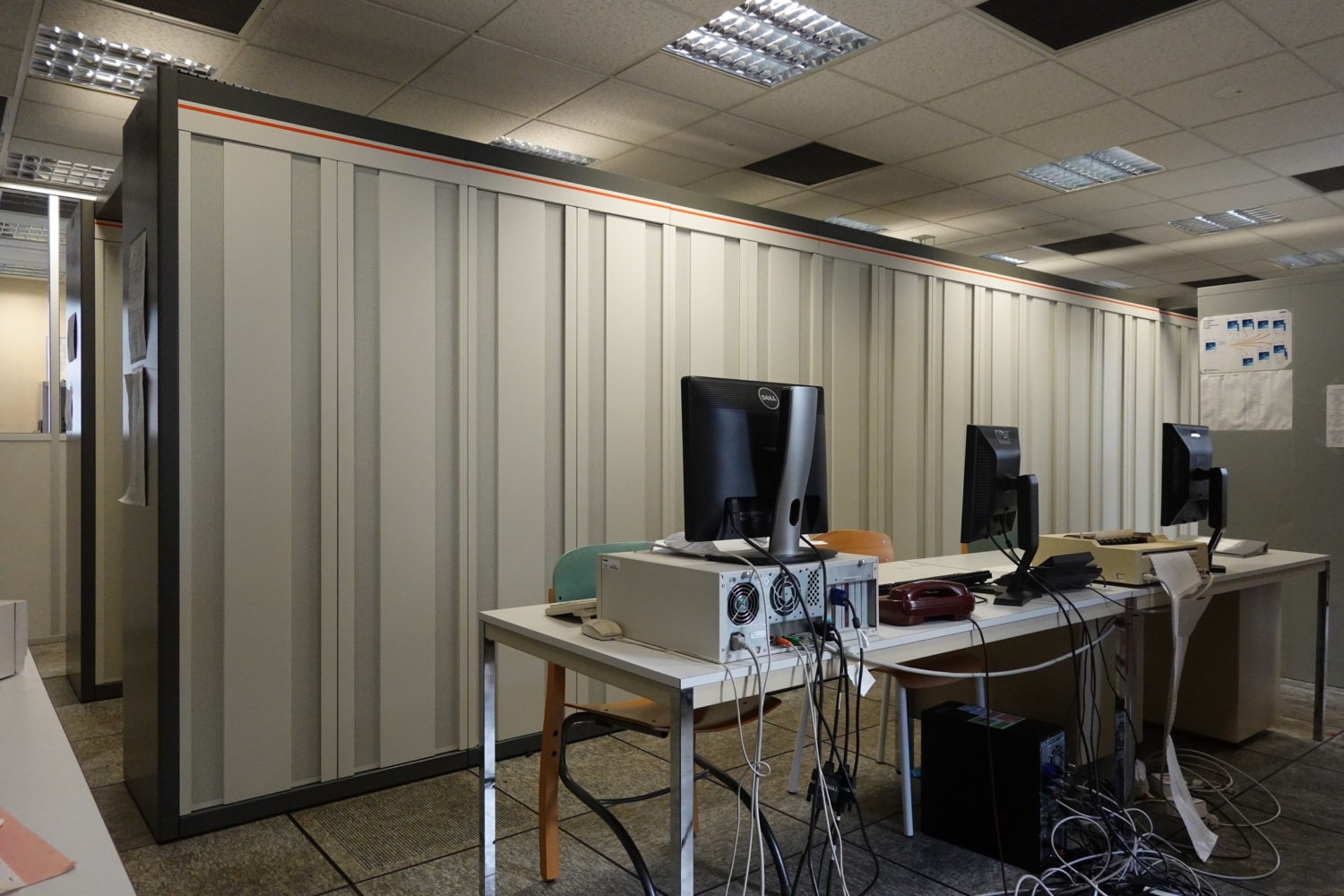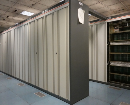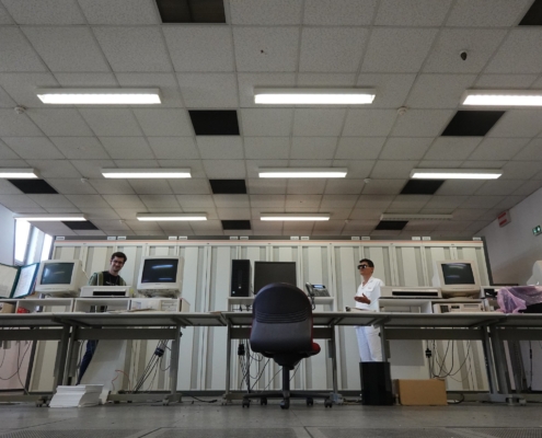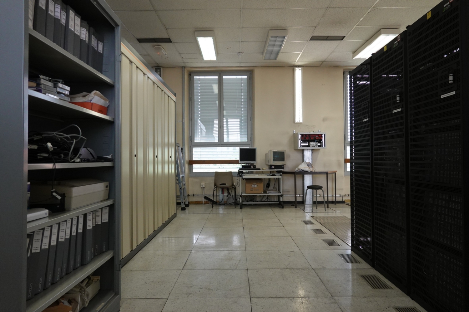 Ci-dessus : vue d’ensemble de l’installation spéciale de Dérouleurs de Bande Magnétique (DBM) de l’ancien PEMS de supervision du parc d’autocommutateurs E10B3 du Centre-Val-de-Loire.