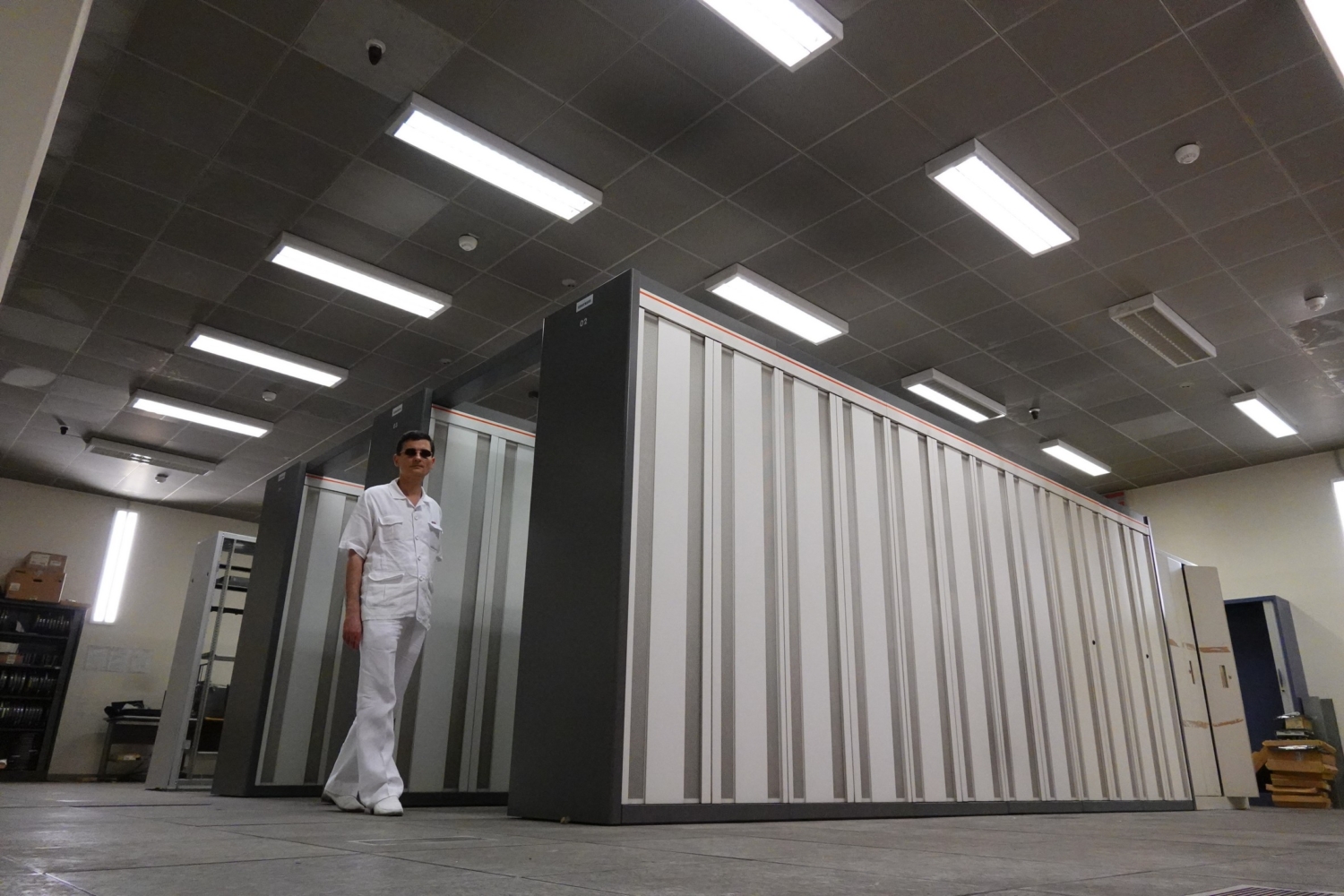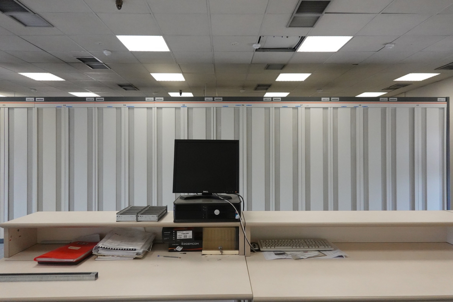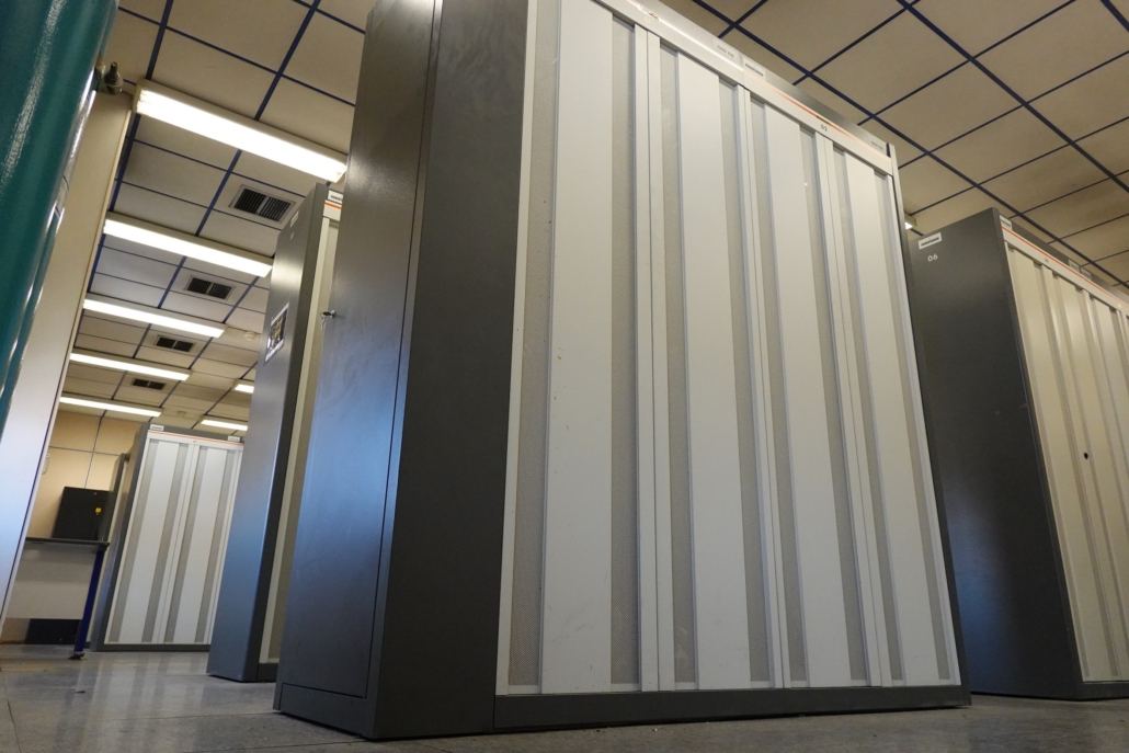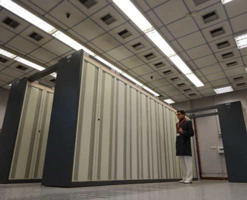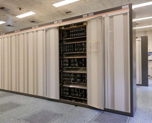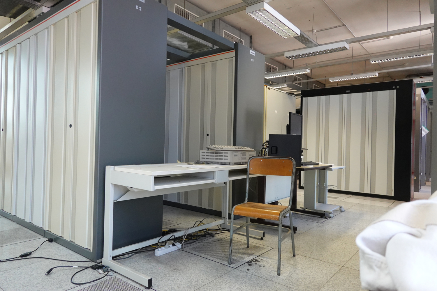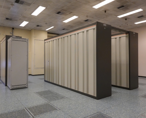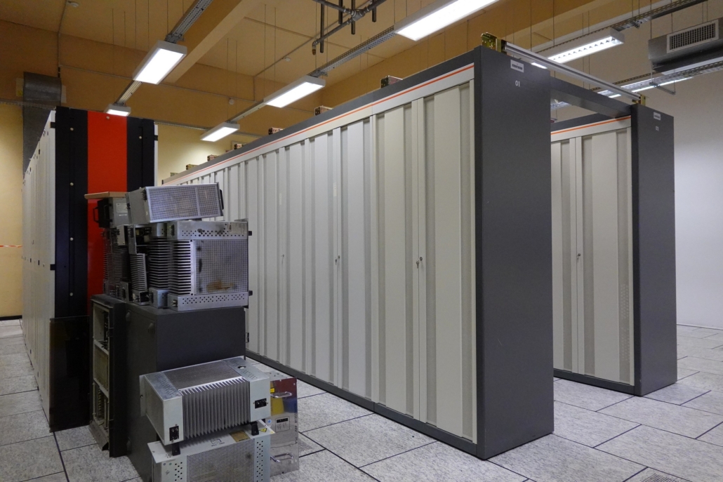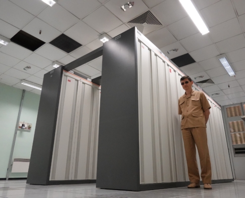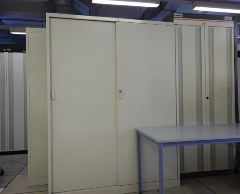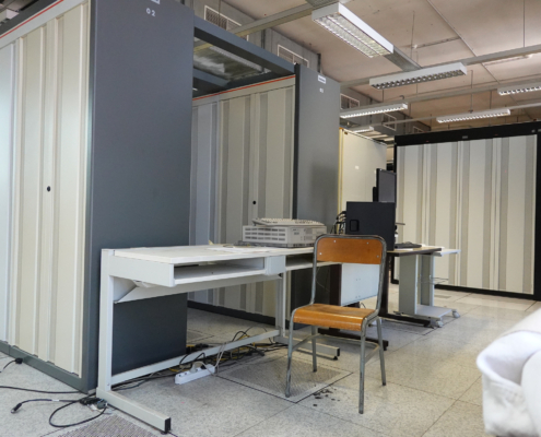 Ci-dessus : vue d’ensemble de l’installation spéciale de Dérouleurs de Bande Magnétique (DBM) de l’ancien PEMS de supervision du parc d’autocommutateurs E10B3 du Centre-Val-de-Loire.