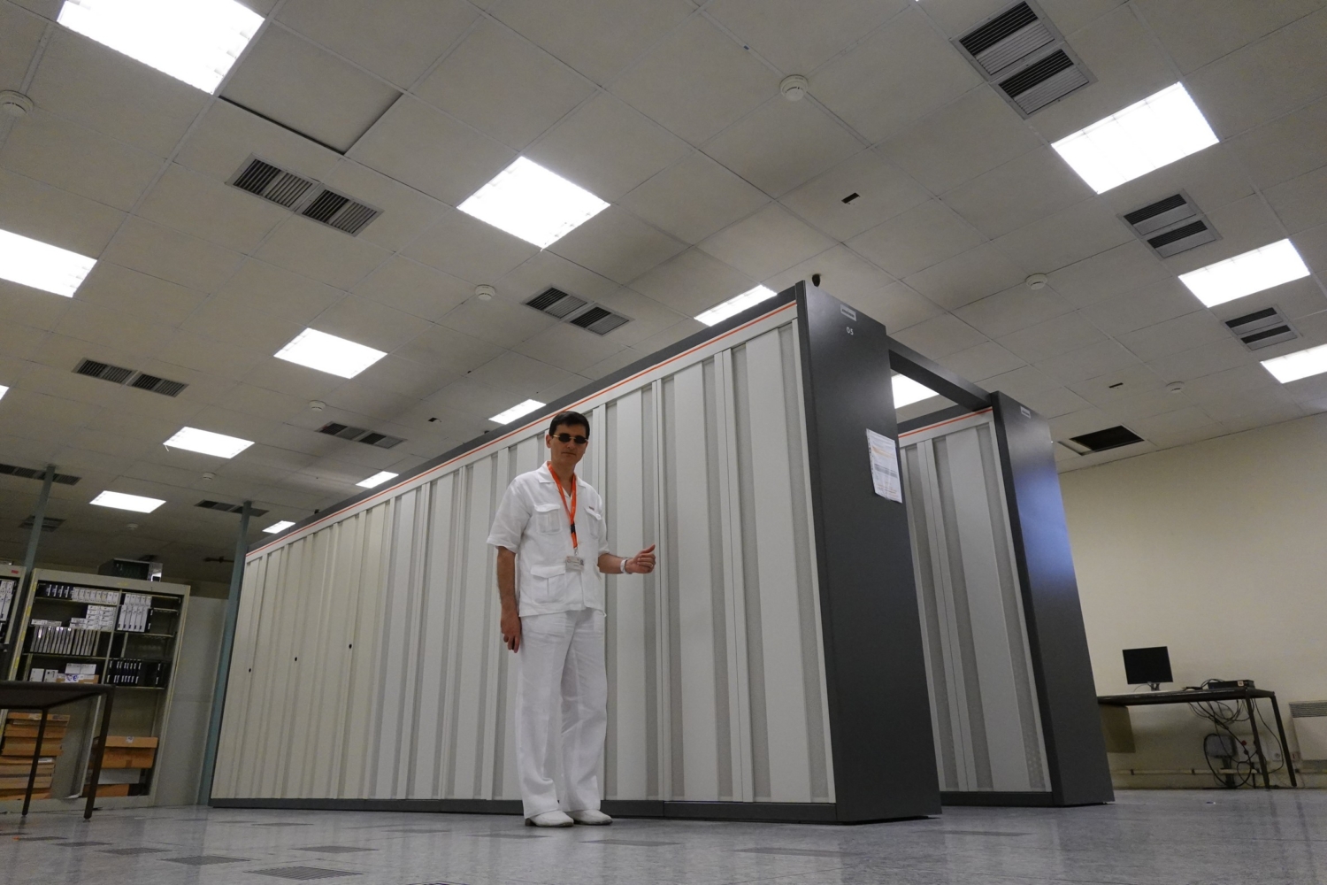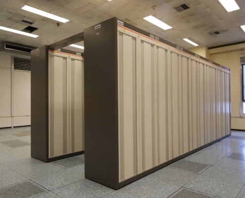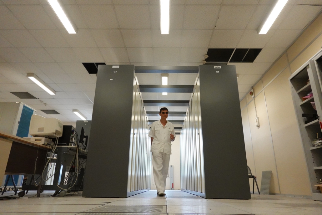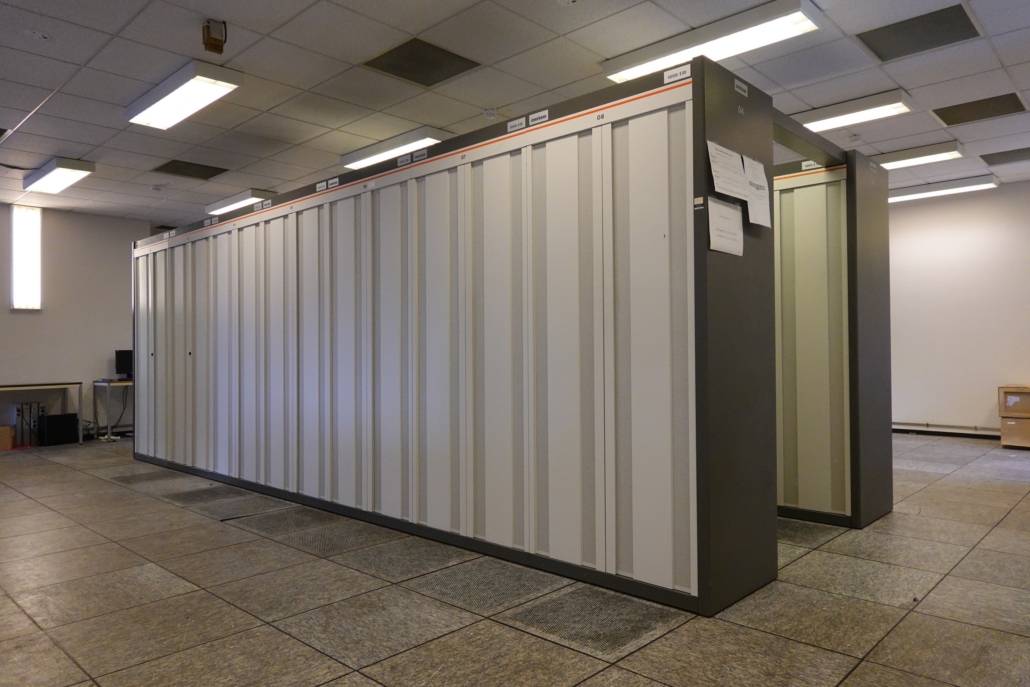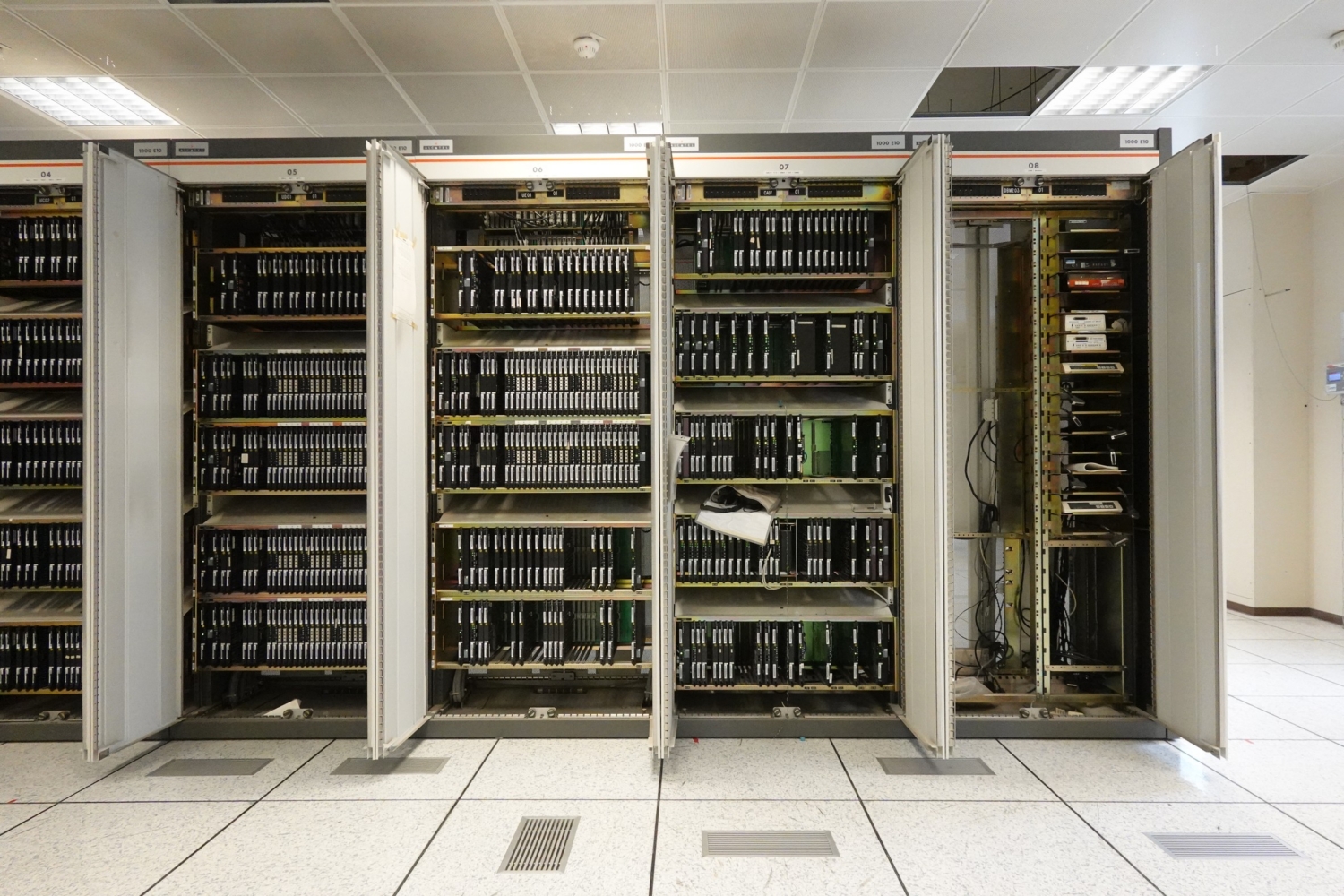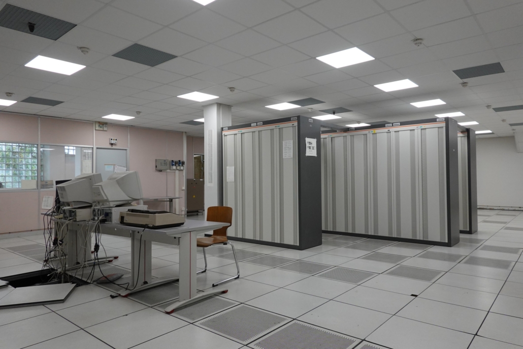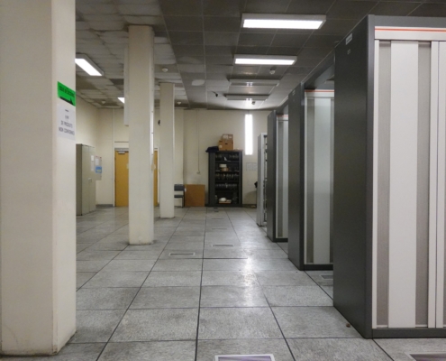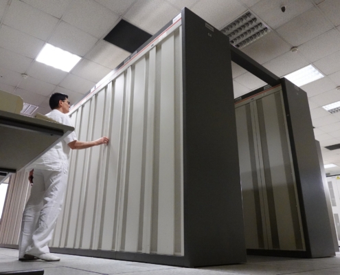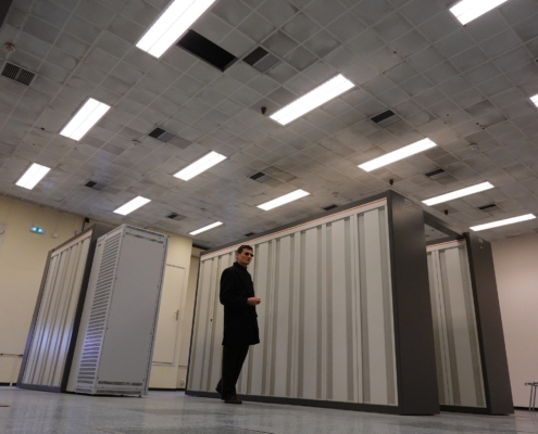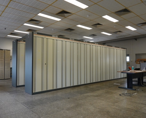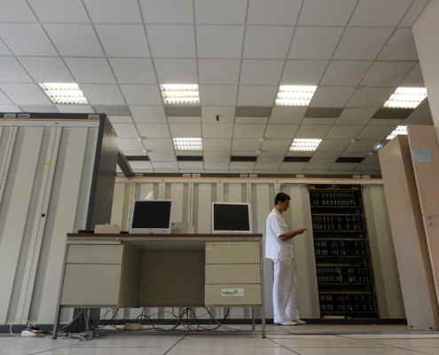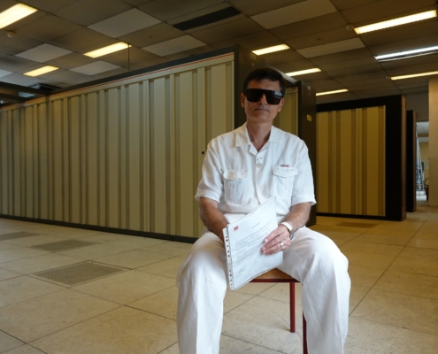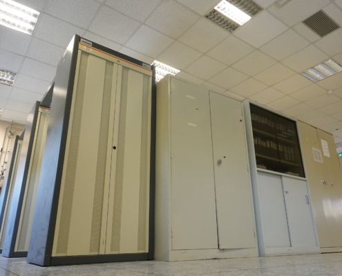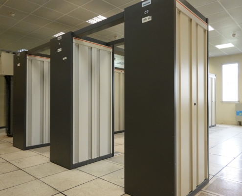 Ci-dessus : vue d’ensemble de l’installation spéciale de Dérouleurs de Bande Magnétique (DBM) de l’ancien PEMS de supervision du parc d’autocommutateurs E10B3 du Centre-Val-de-Loire.