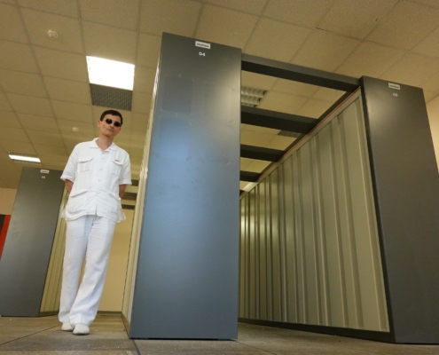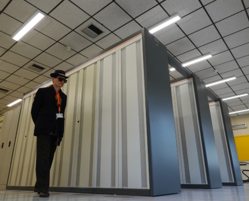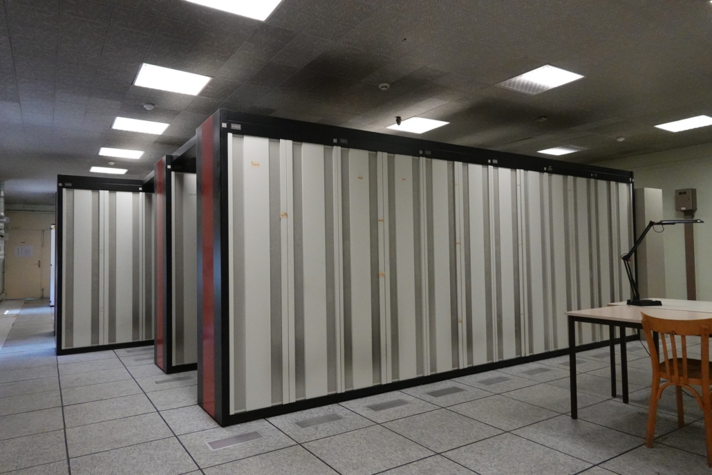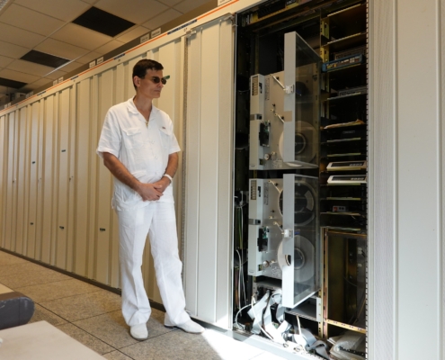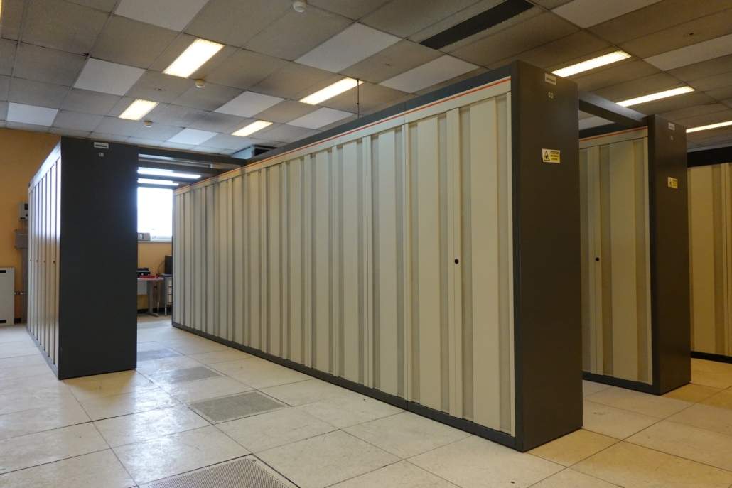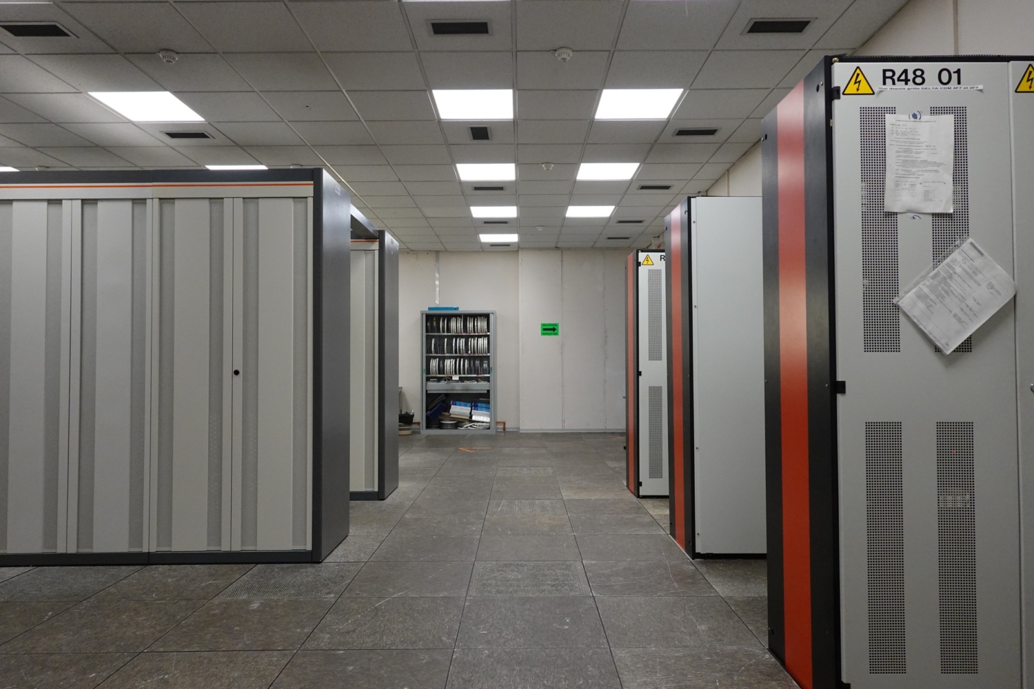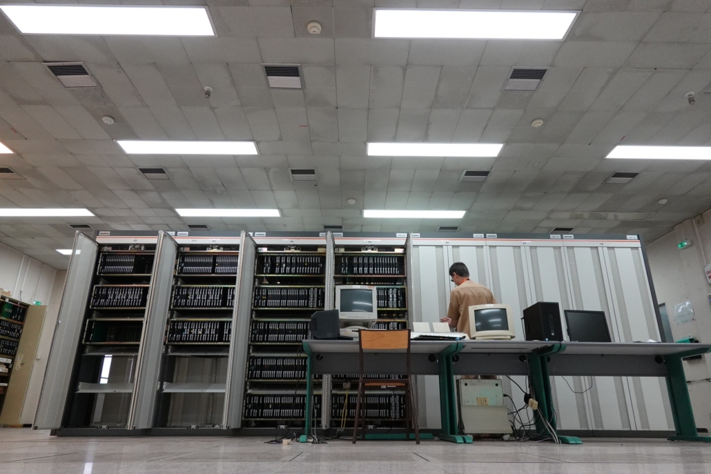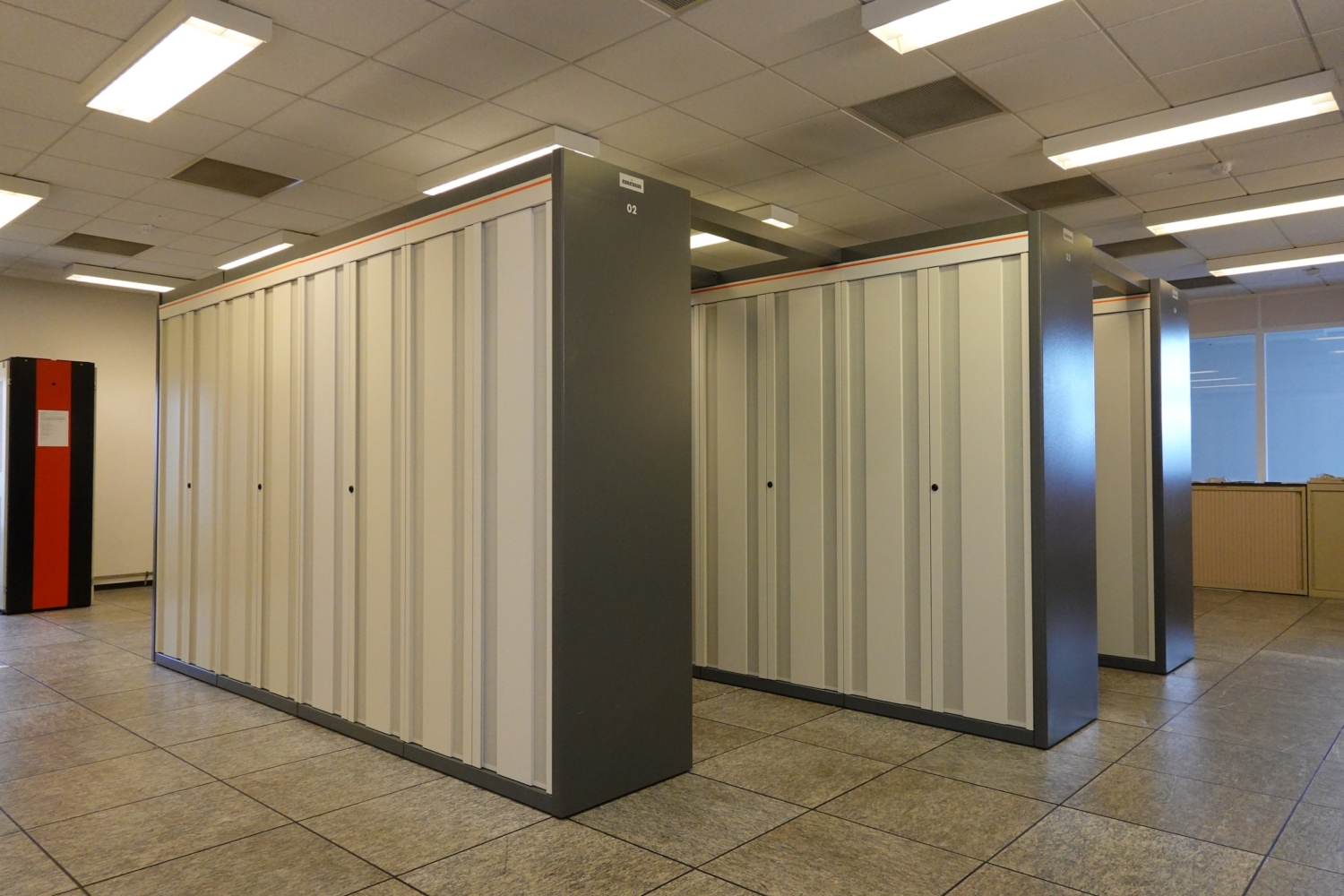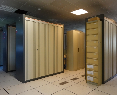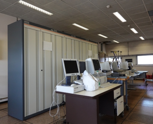 Ci-dessus : vue d’ensemble de l’installation spéciale de Dérouleurs de Bande Magnétique (DBM) de l’ancien PEMS de supervision du parc d’autocommutateurs E10B3 du Centre-Val-de-Loire.