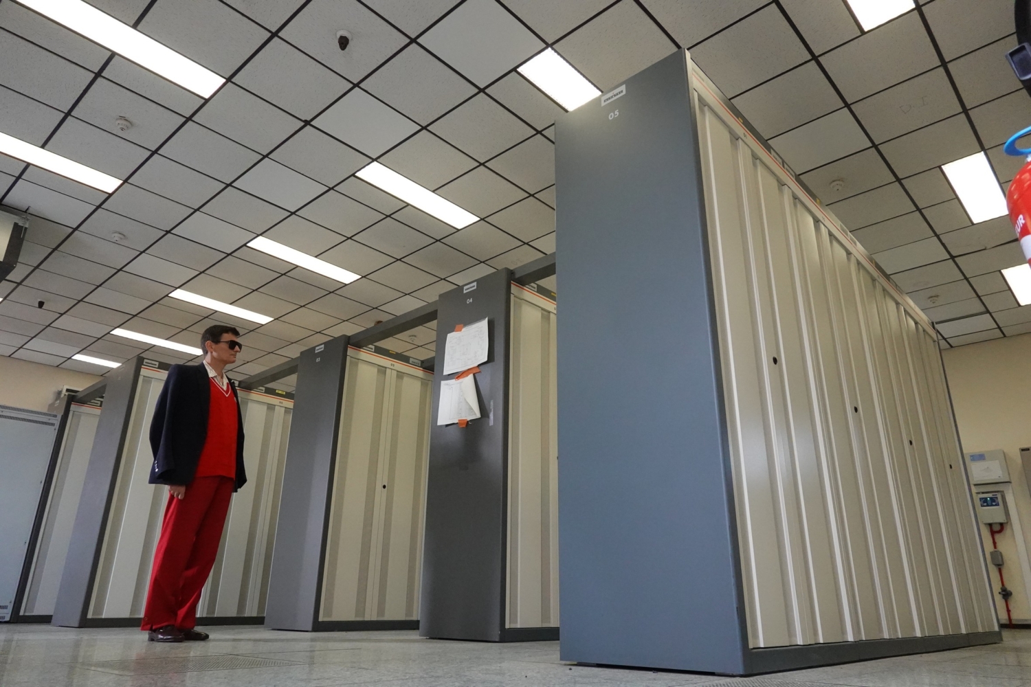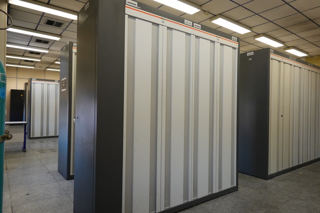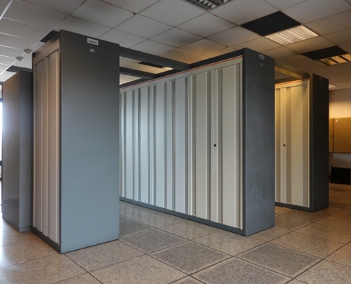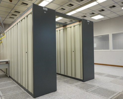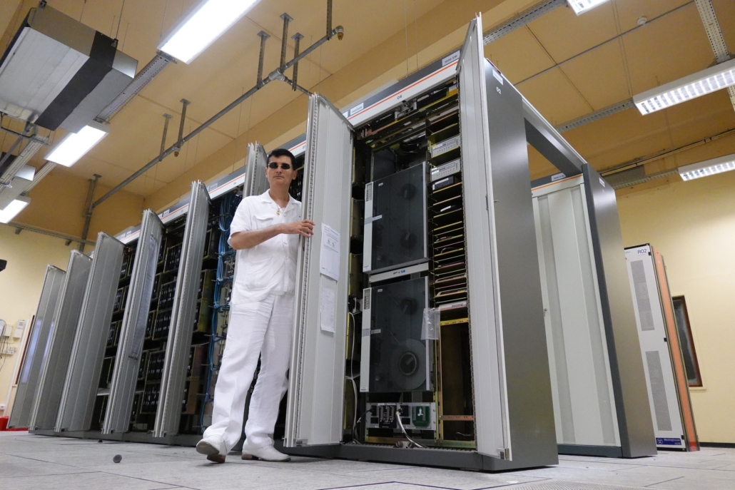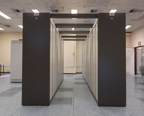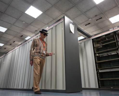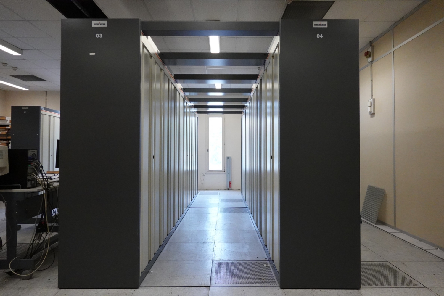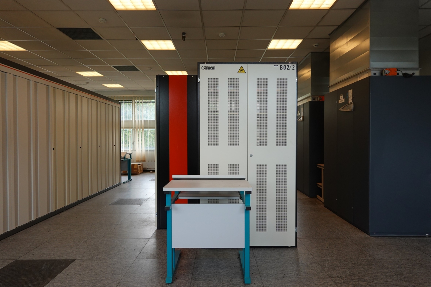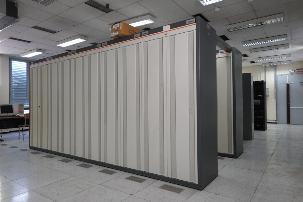Ci-dessus : vue d’ensemble de l’installation spéciale de Dérouleurs de Bande Magnétique (DBM) de l’ancien PEMS de supervision du parc d’autocommutateurs E10B3 du Centre-Val-de-Loire.