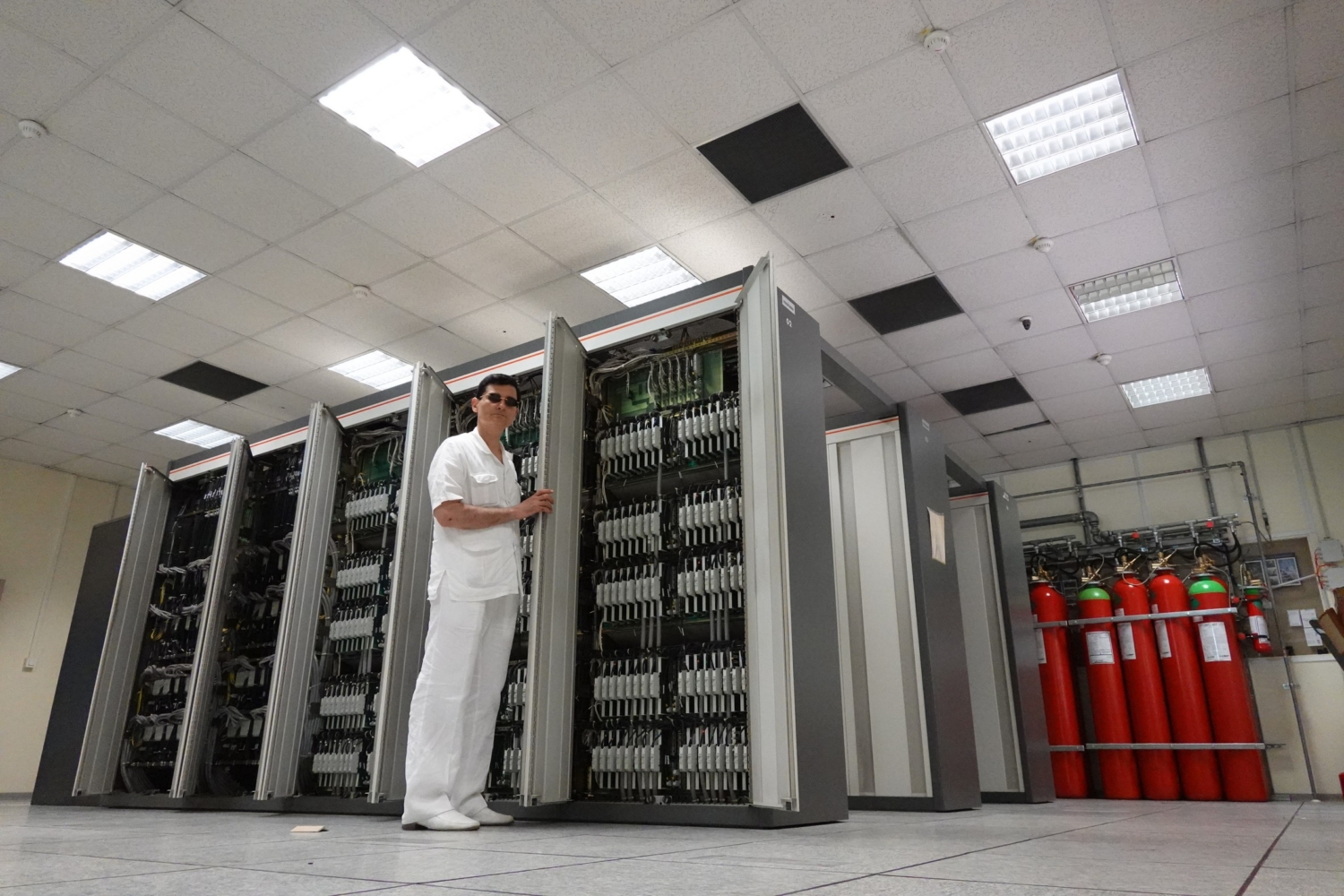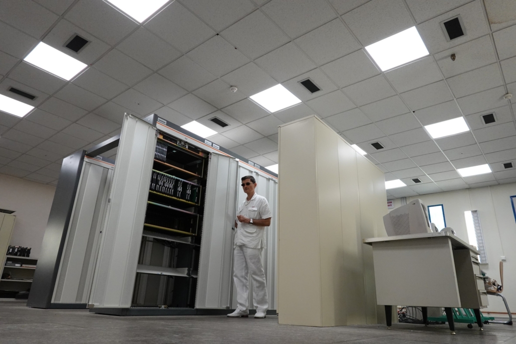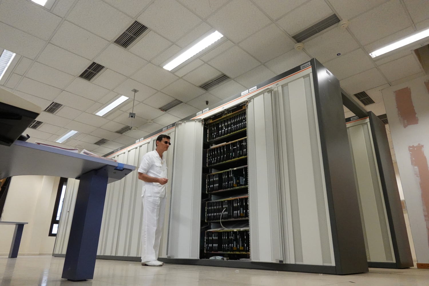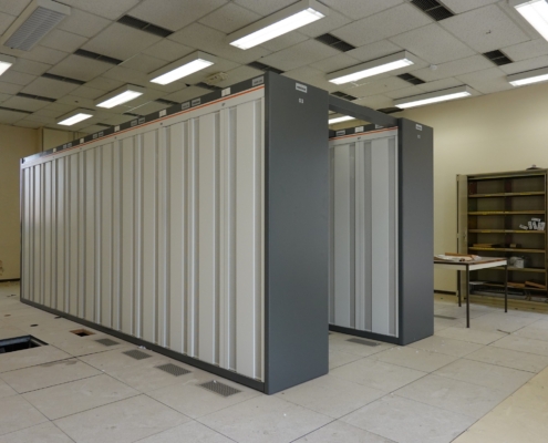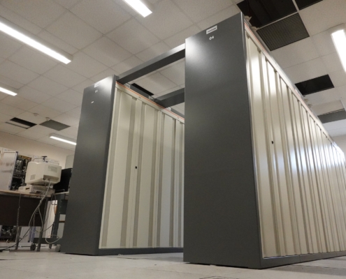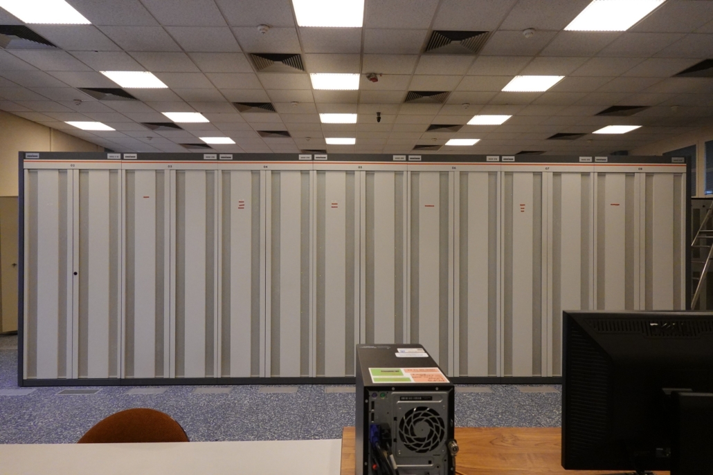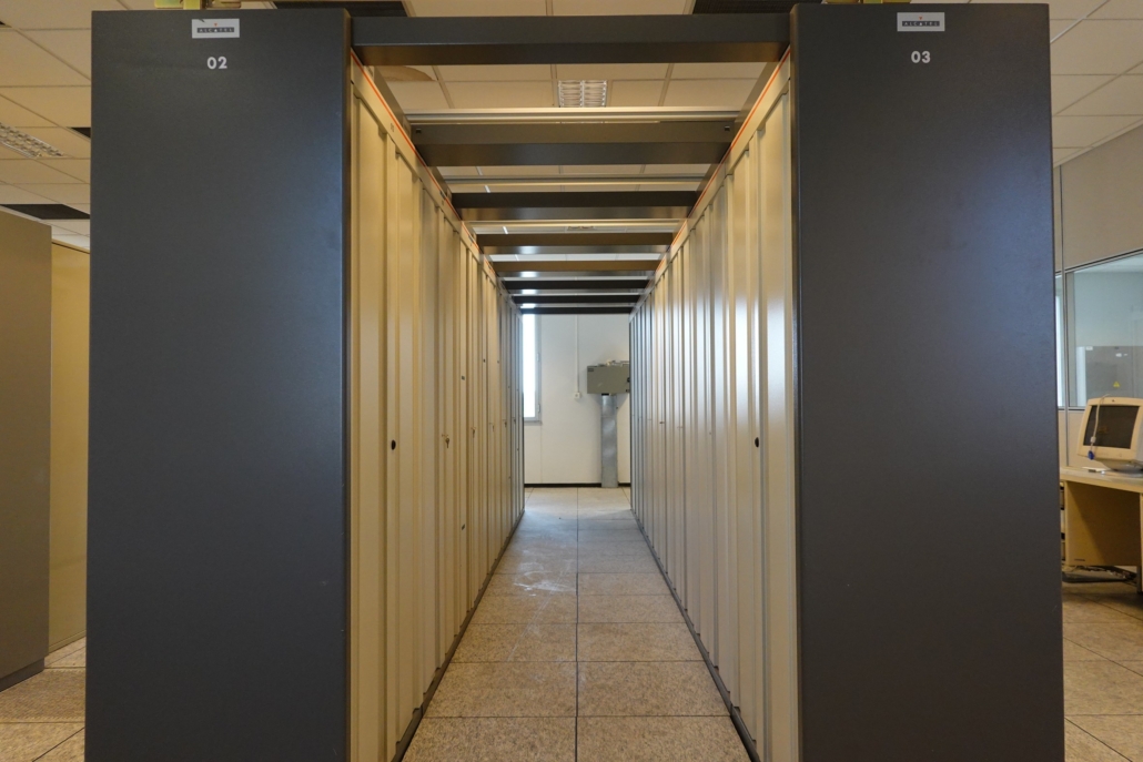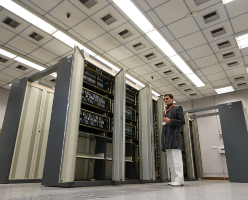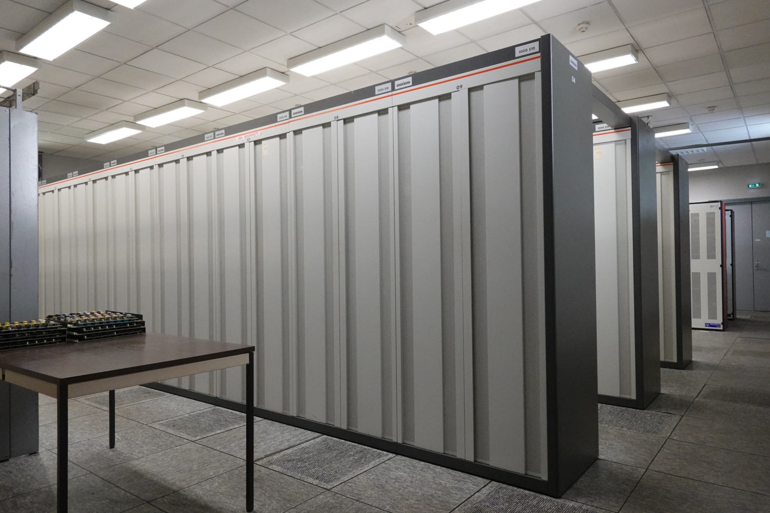 Ci-dessus : vue d’ensemble de l’installation spéciale de Dérouleurs de Bande Magnétique (DBM) de l’ancien PEMS de supervision du parc d’autocommutateurs E10B3 du Centre-Val-de-Loire.