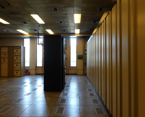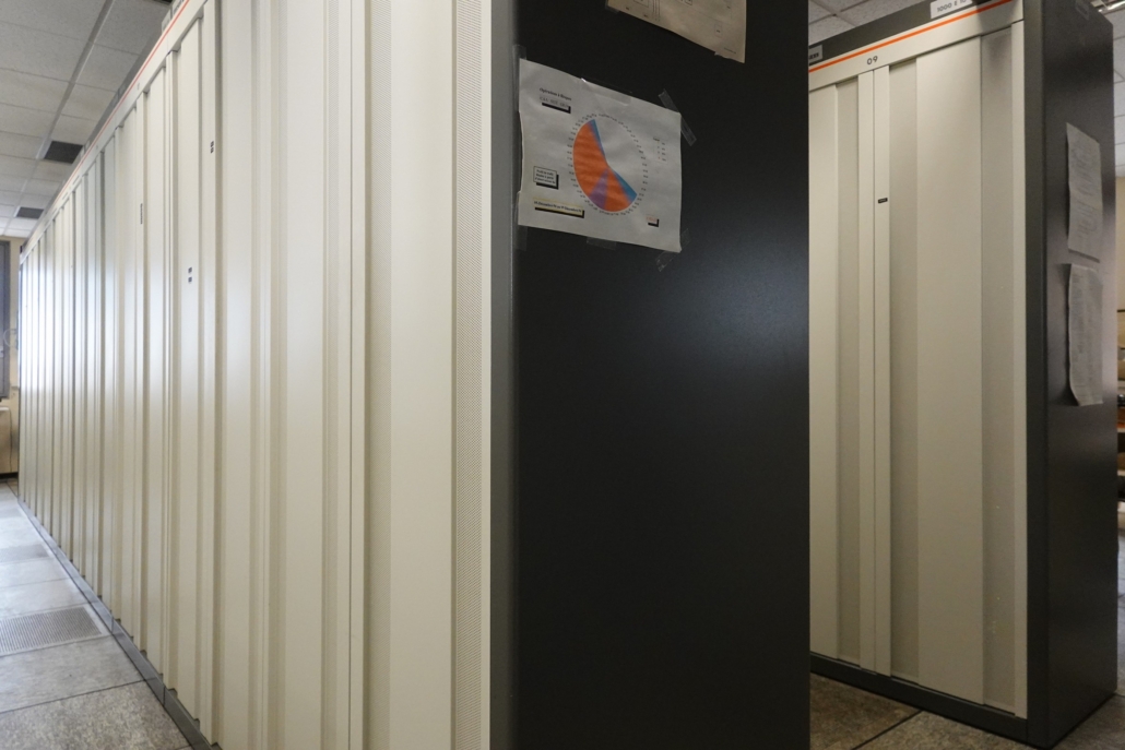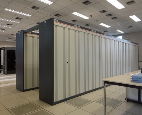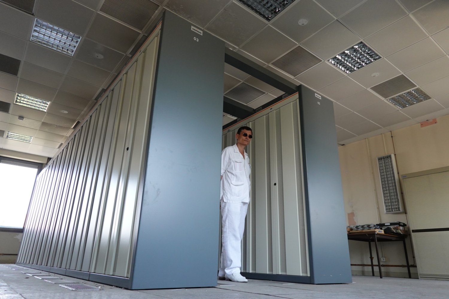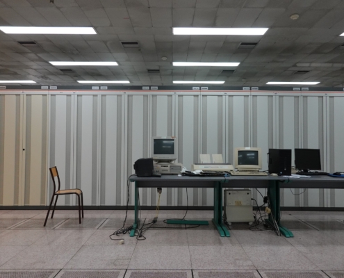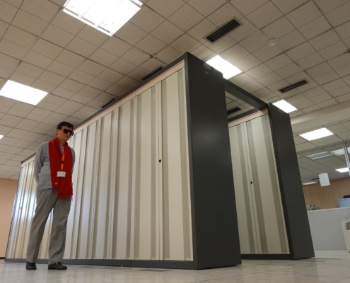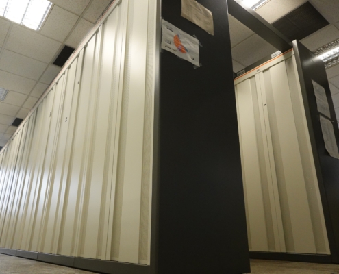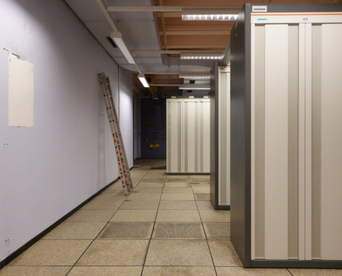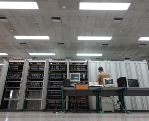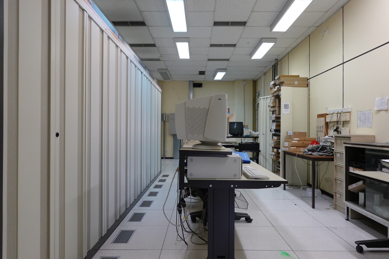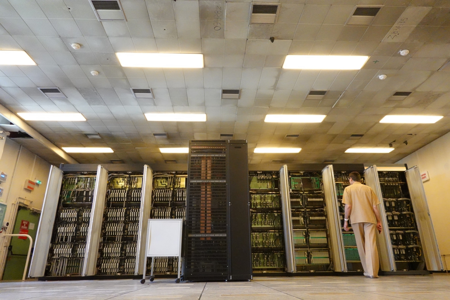 Ci-dessus : vue d’ensemble de l’installation spéciale de Dérouleurs de Bande Magnétique (DBM) de l’ancien PEMS de supervision du parc d’autocommutateurs E10B3 du Centre-Val-de-Loire.