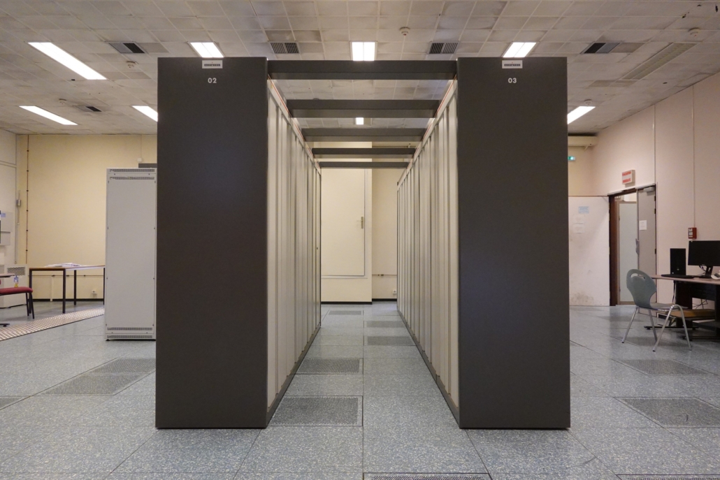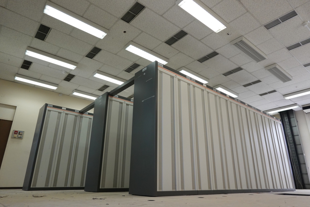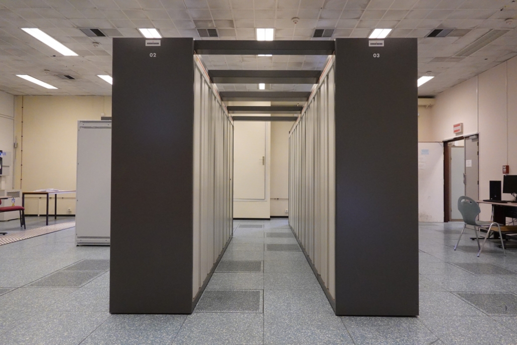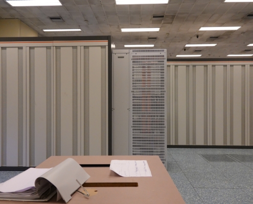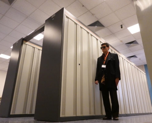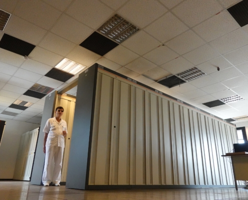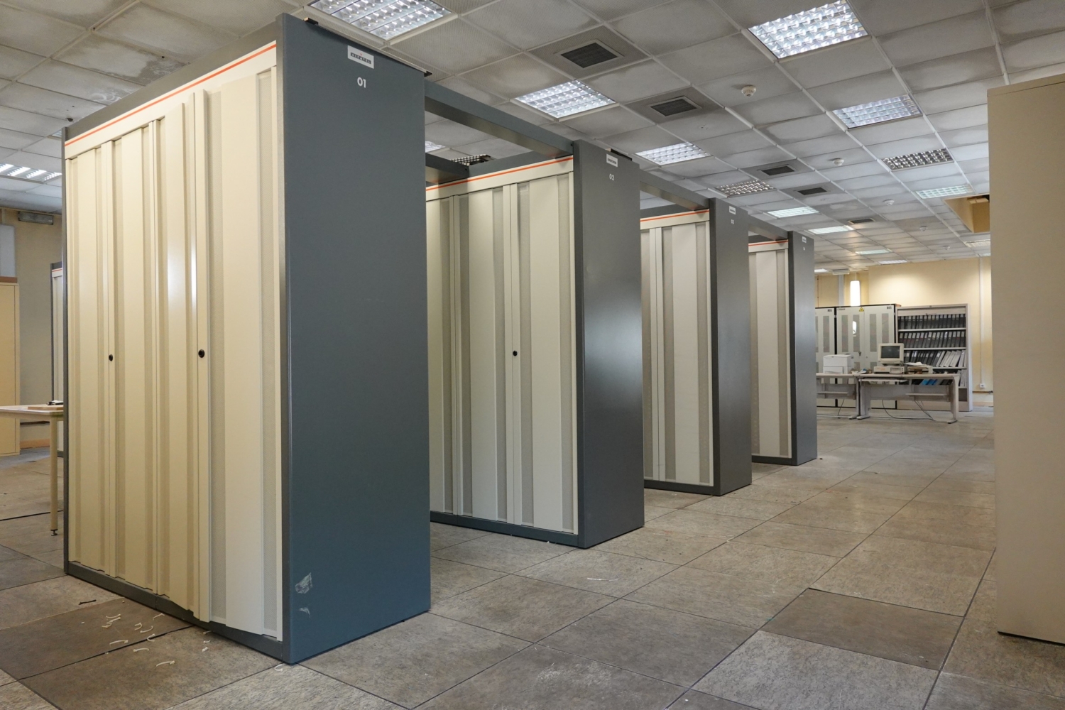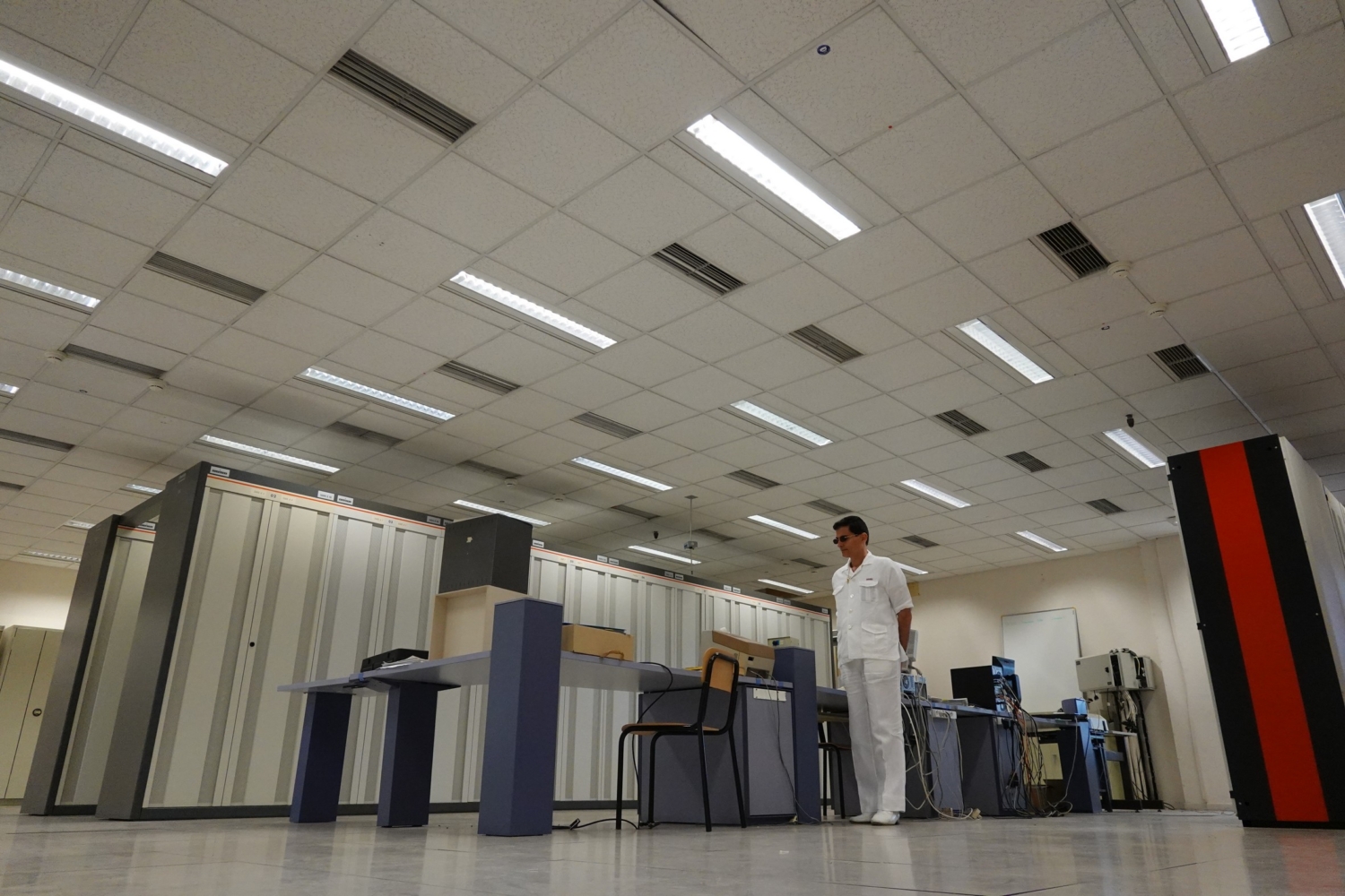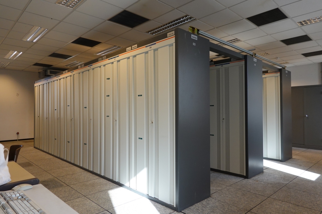 Ci-dessus : vue d’ensemble de l’installation spéciale de Dérouleurs de Bande Magnétique (DBM) de l’ancien PEMS de supervision du parc d’autocommutateurs E10B3 du Centre-Val-de-Loire.
