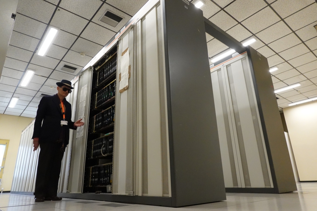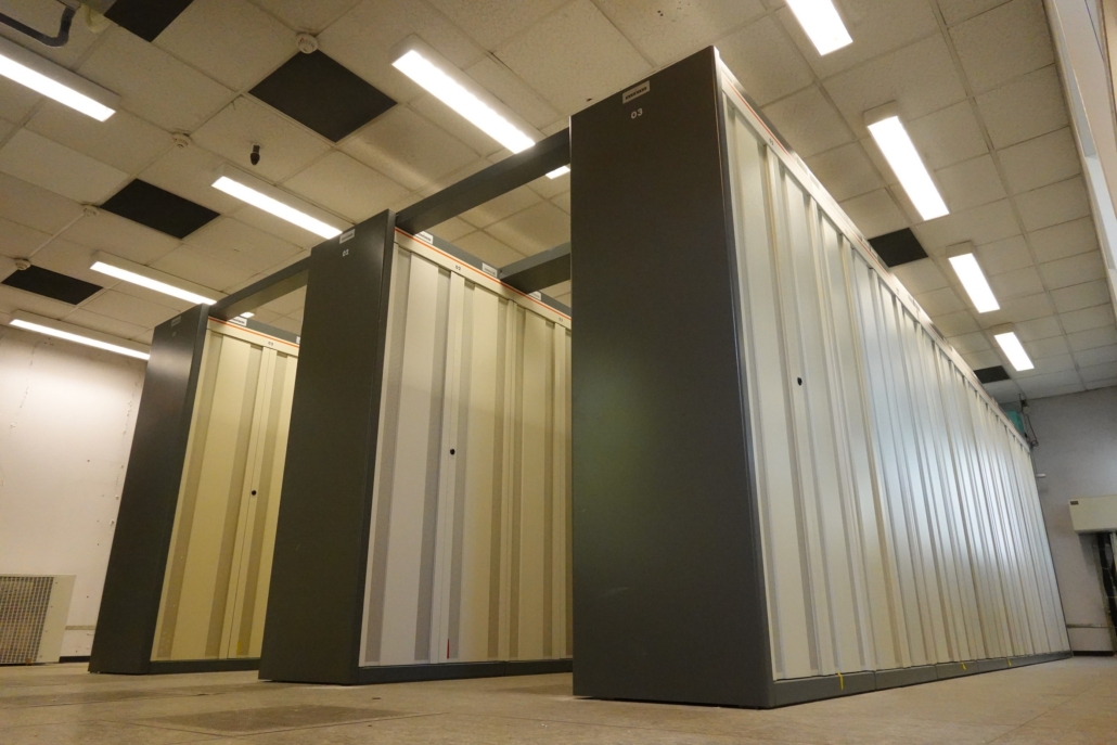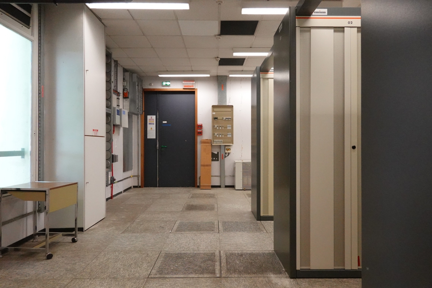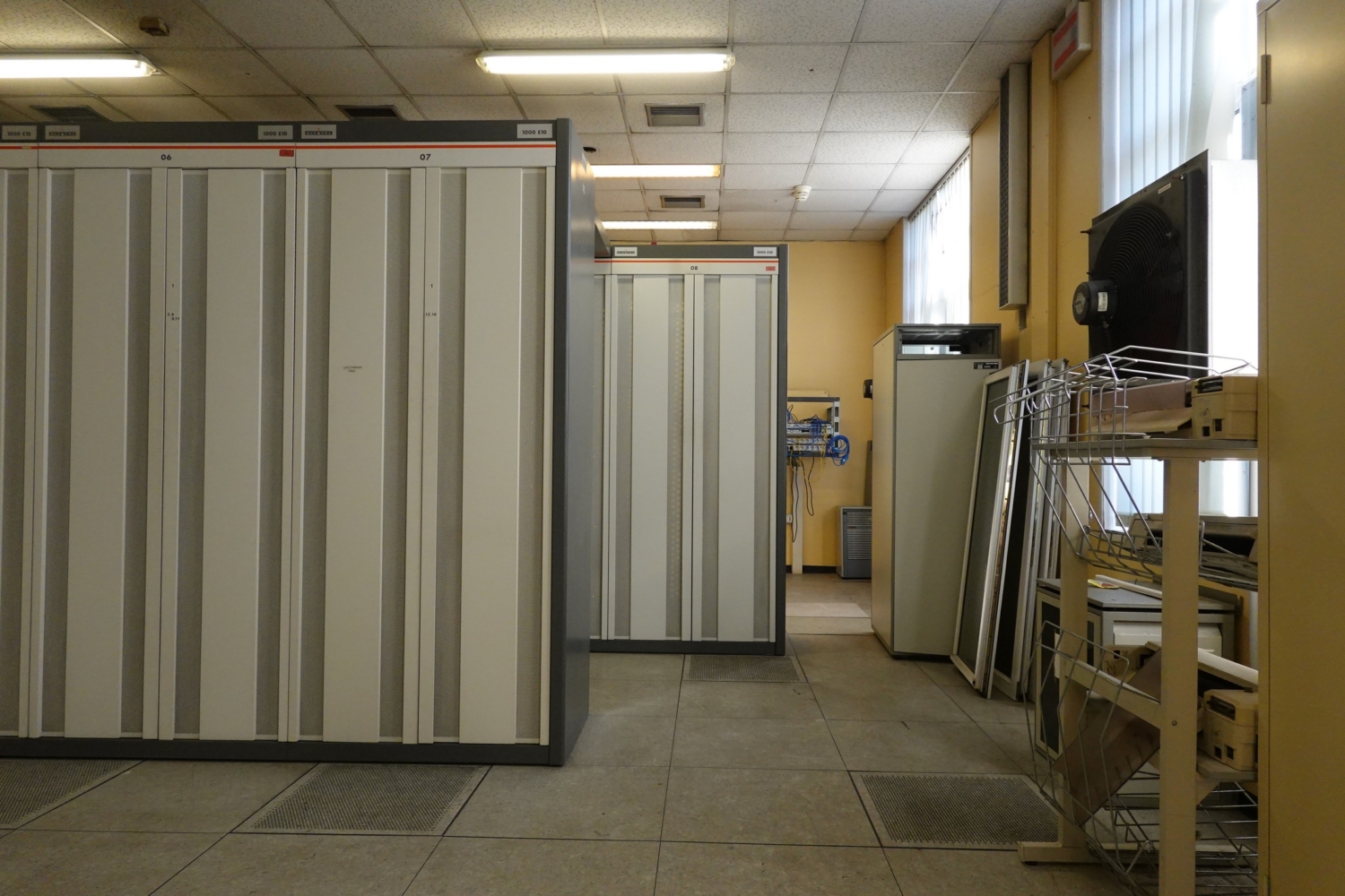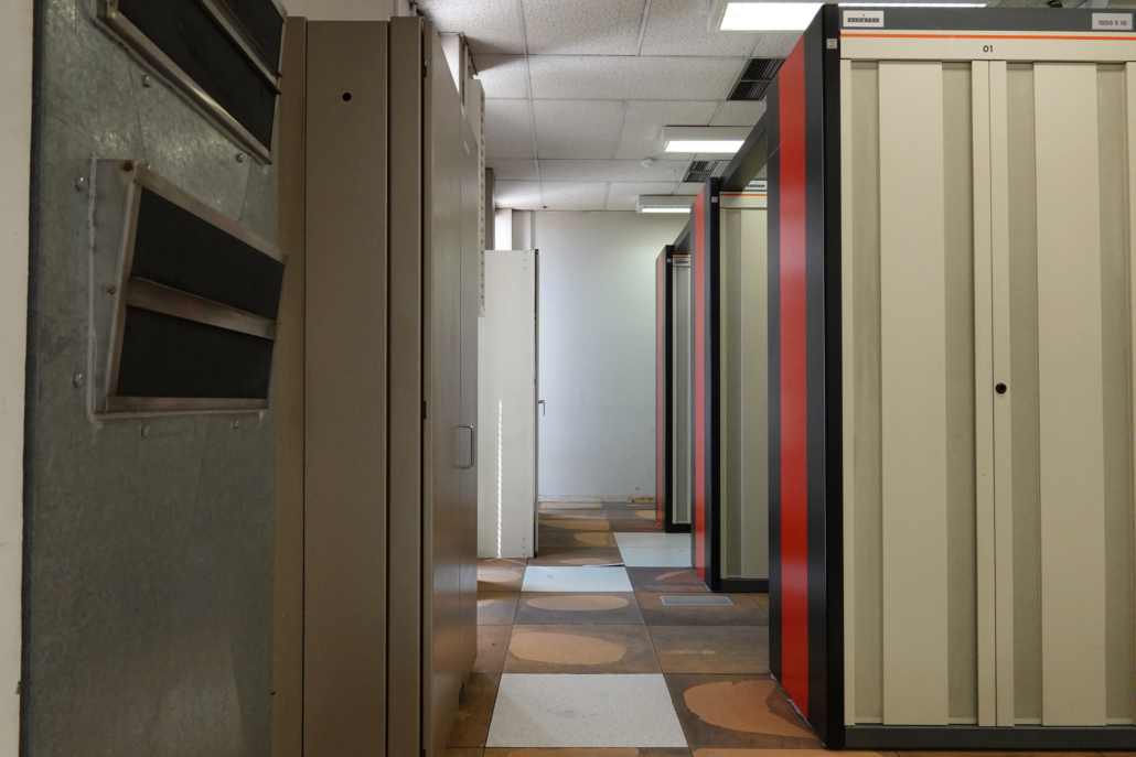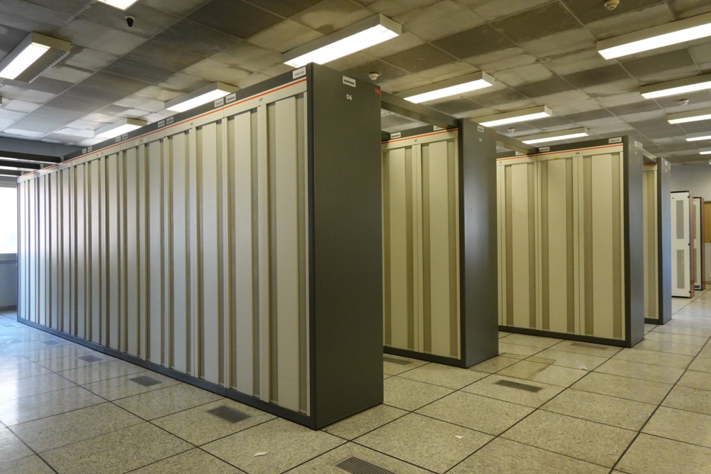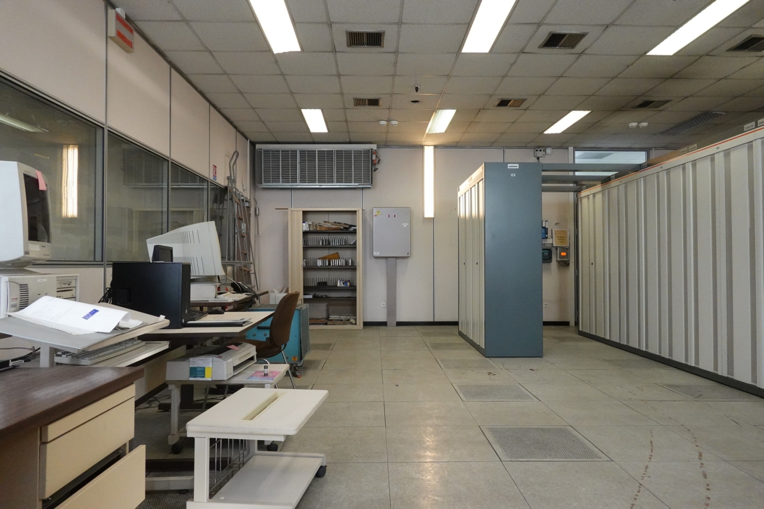 Ci-dessus : vue d’ensemble de l’installation spéciale de Dérouleurs de Bande Magnétique (DBM) de l’ancien PEMS de supervision du parc d’autocommutateurs E10B3 du Centre-Val-de-Loire.