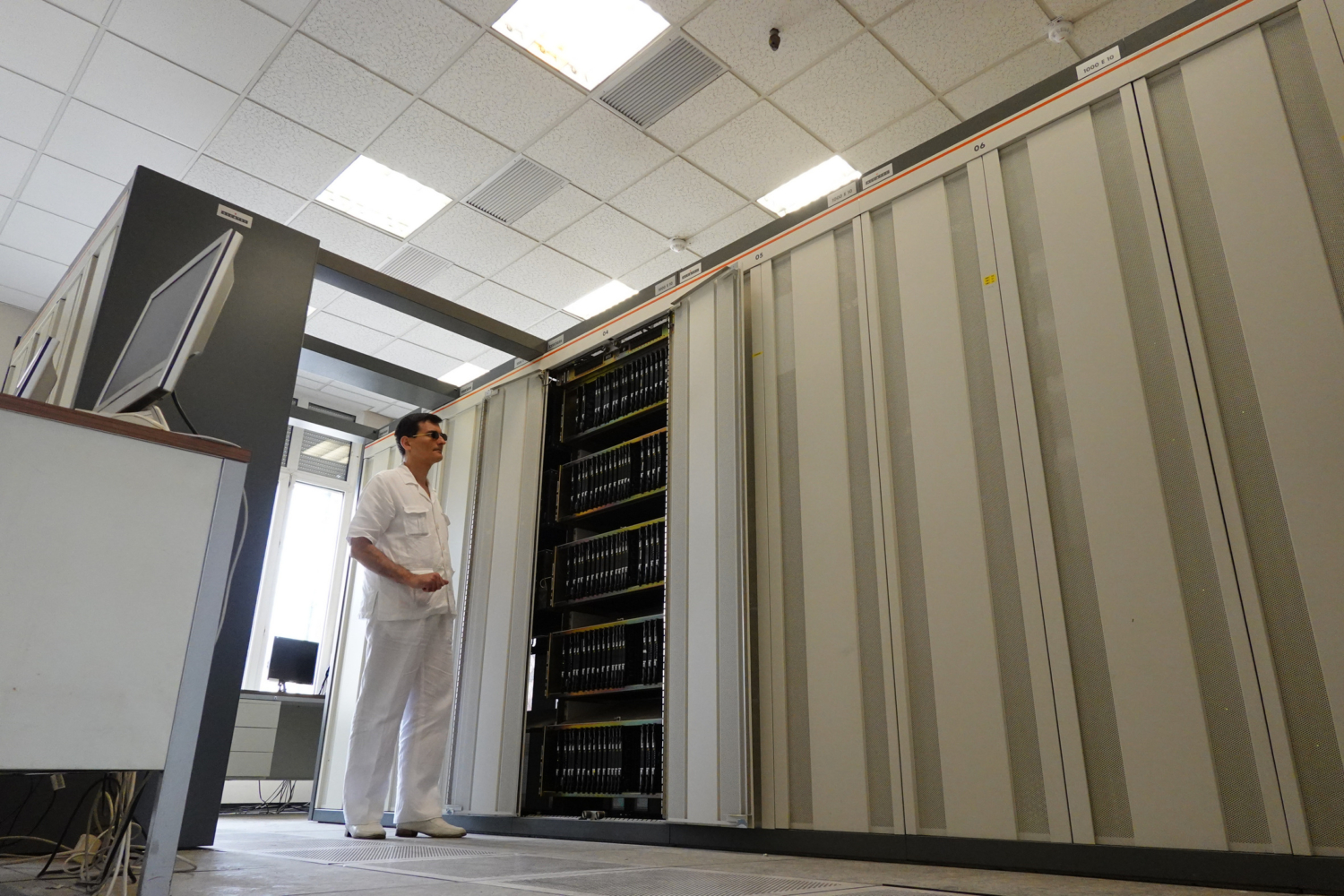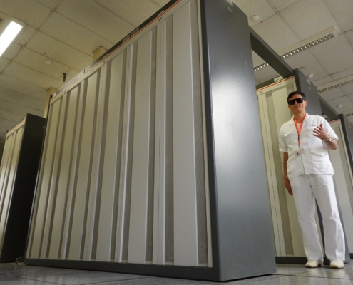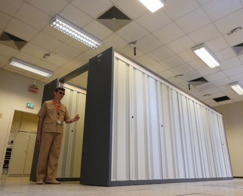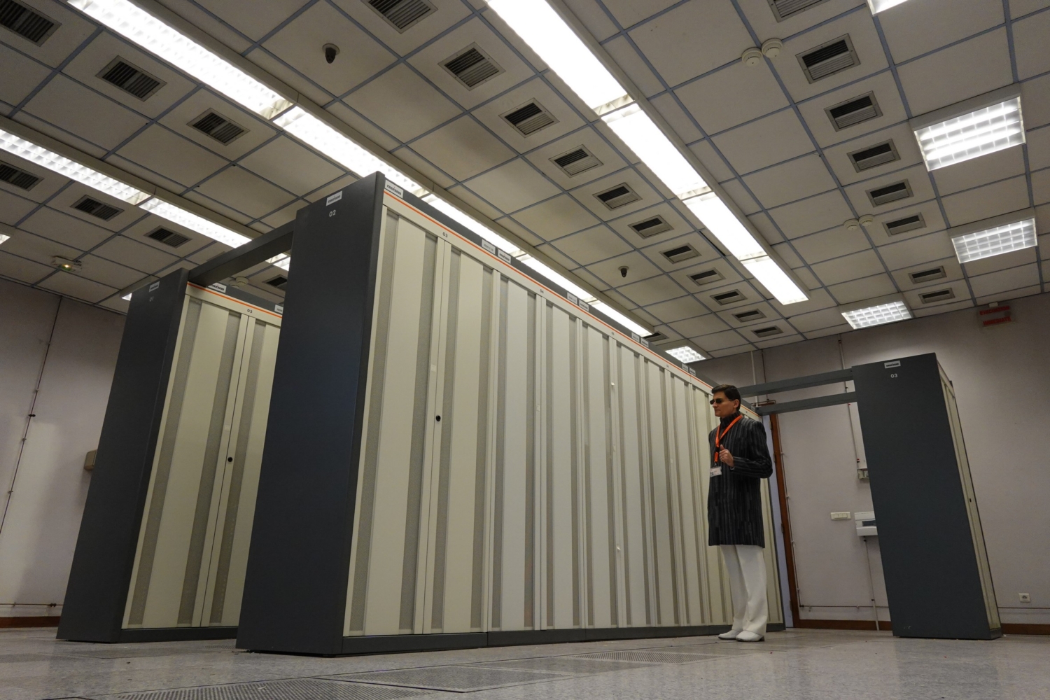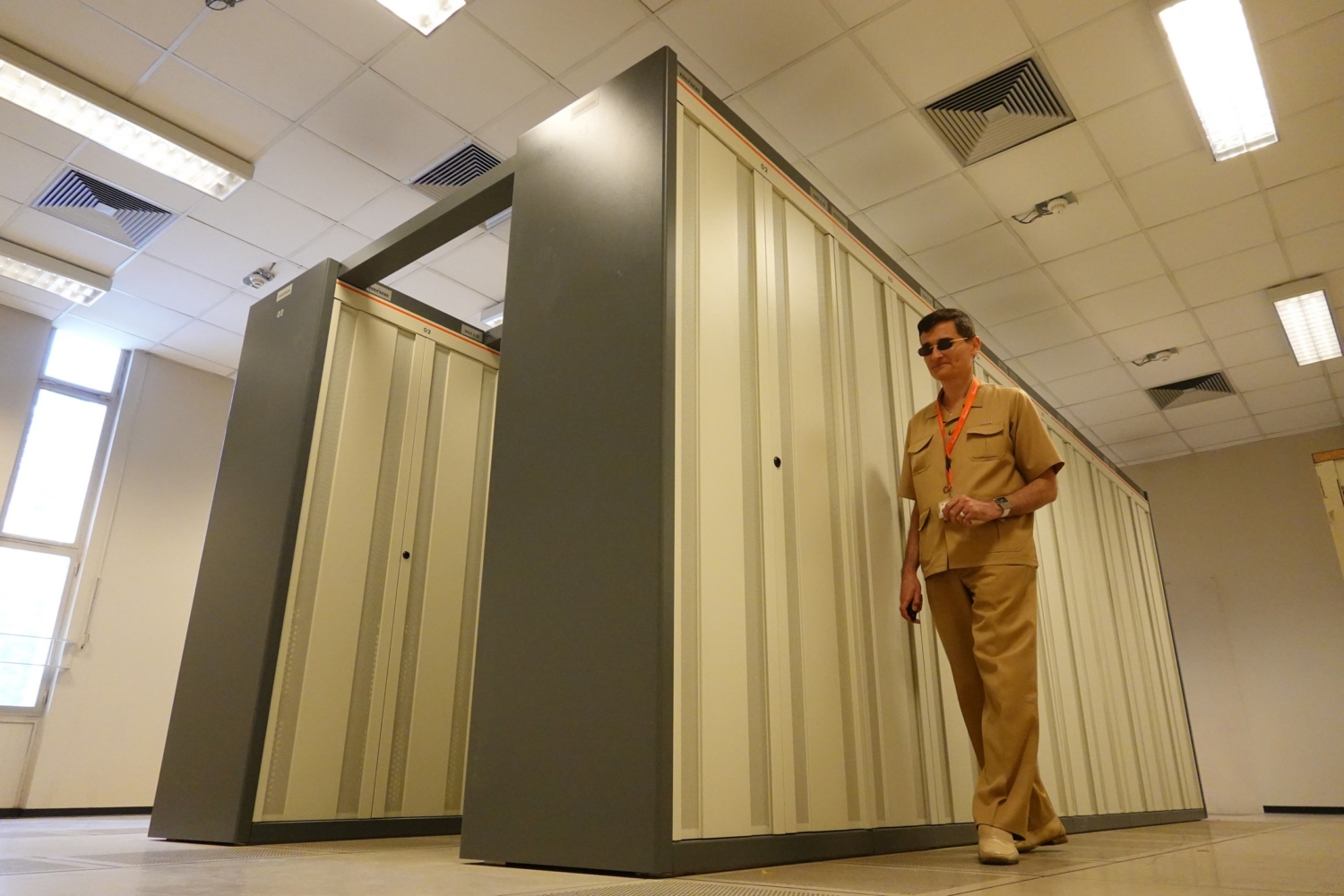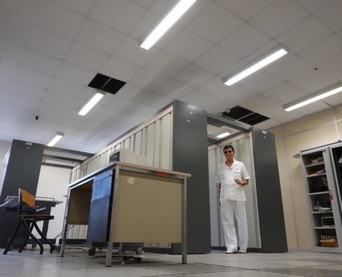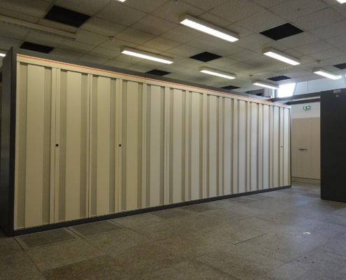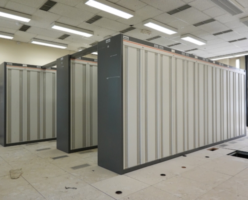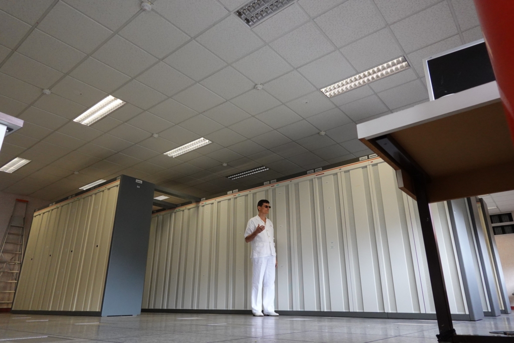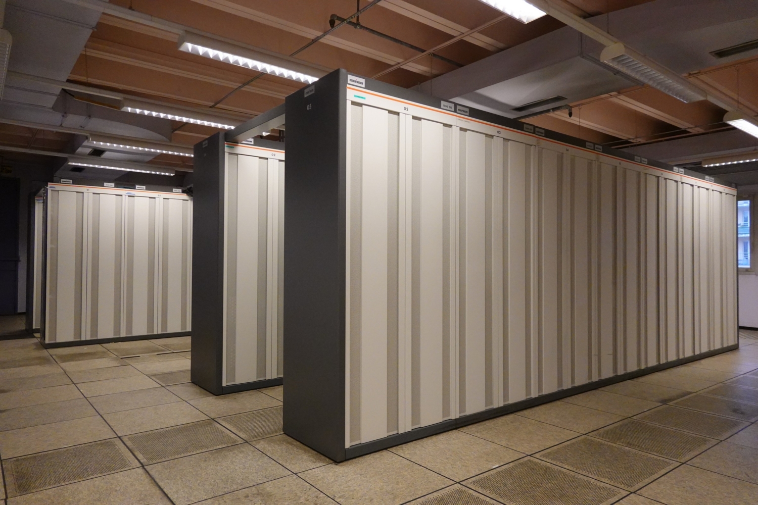 Ci-dessus : vue d’ensemble de l’installation spéciale de Dérouleurs de Bande Magnétique (DBM) de l’ancien PEMS de supervision du parc d’autocommutateurs E10B3 du Centre-Val-de-Loire.